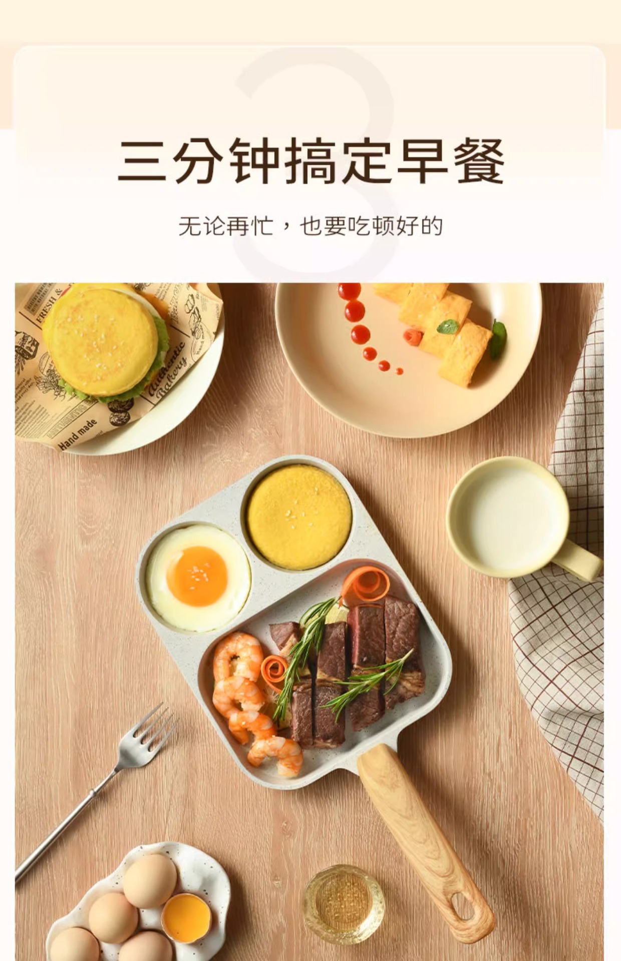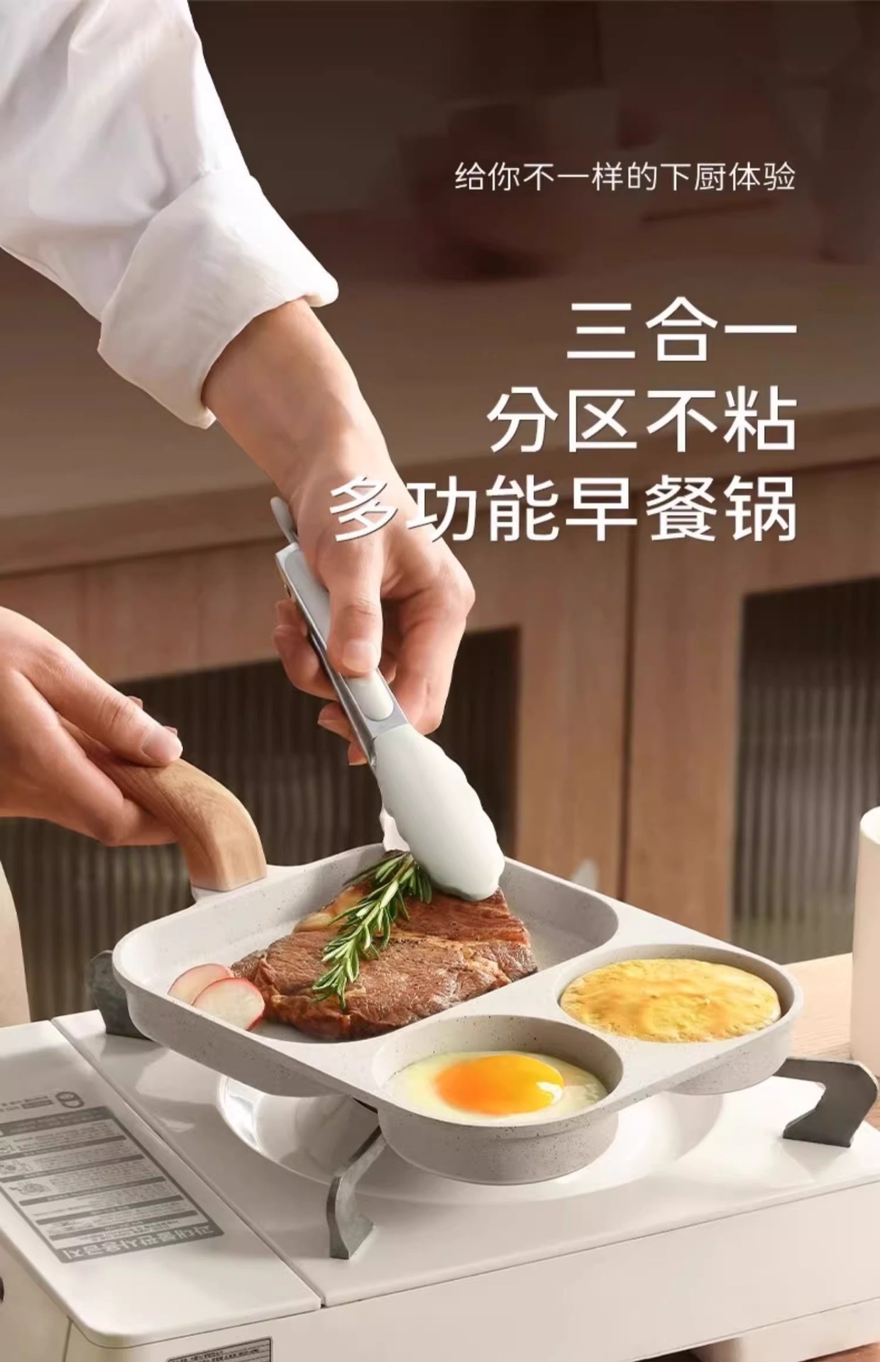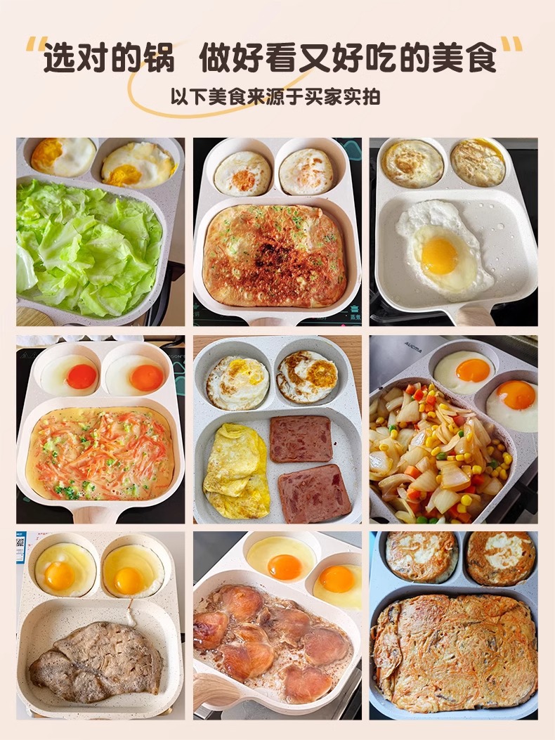 某音热卖三合一早餐锅家用煎蛋锅平底不粘锅通用炉灶牛排煎锅批发