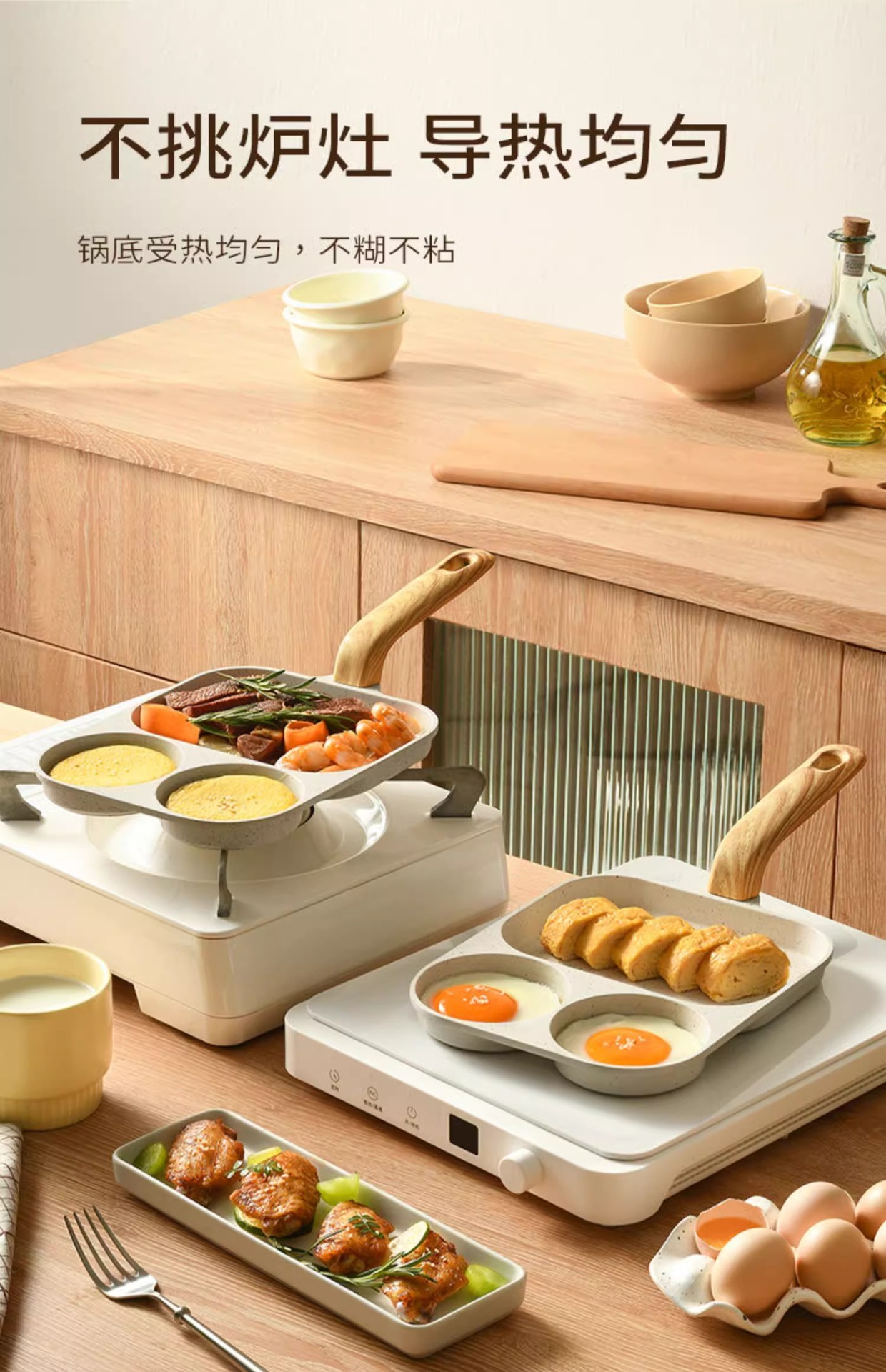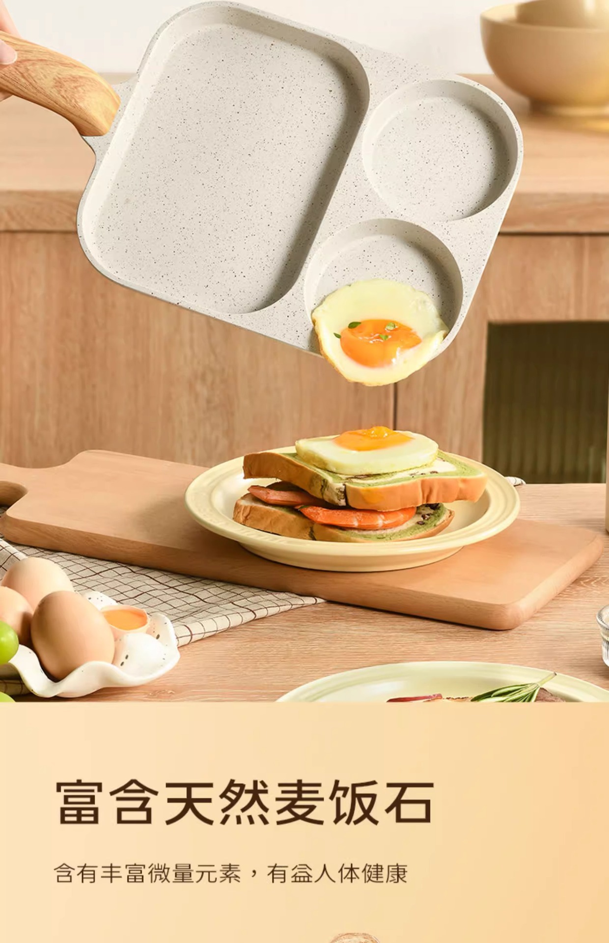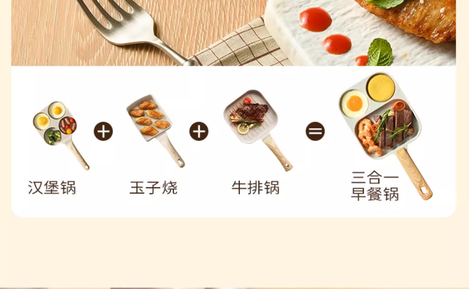 某音热卖三合一早餐锅家用煎蛋锅平底不粘锅通用炉灶牛排煎锅批发
