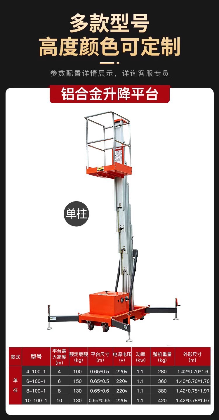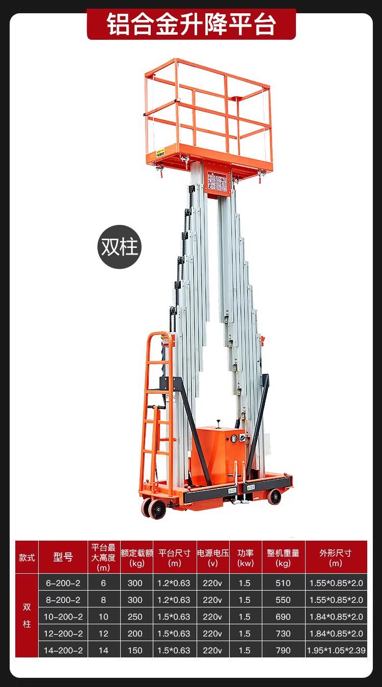 铝合金升降机14米 移动式单双柱铝合金高空作业车 跨境出口货源