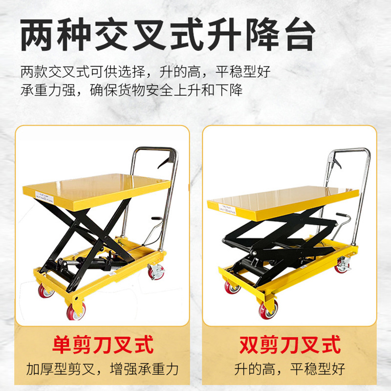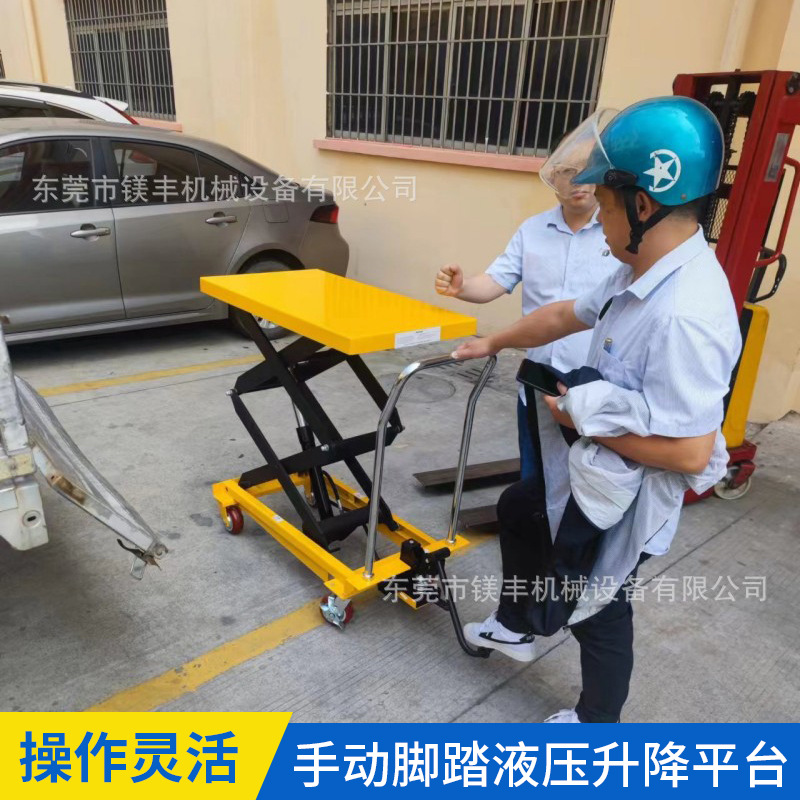 现货手动脚踏液压升降平台车手推移动剪叉式小型推车升降平台车