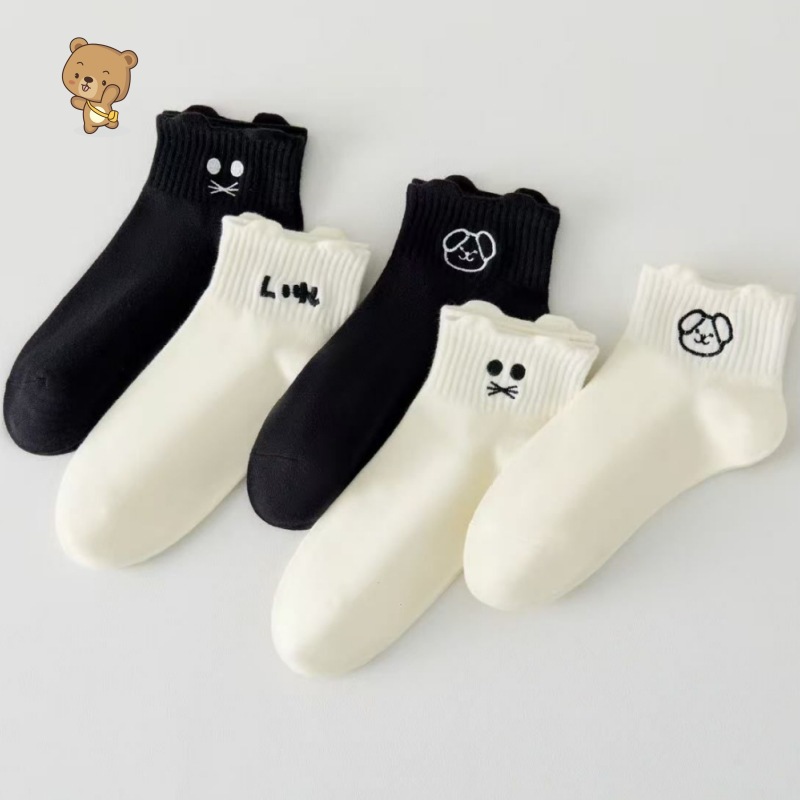 袜子女可爱卡通小狗网眼透气黑白日系百搭短筒袜ins潮袜夏季薄款