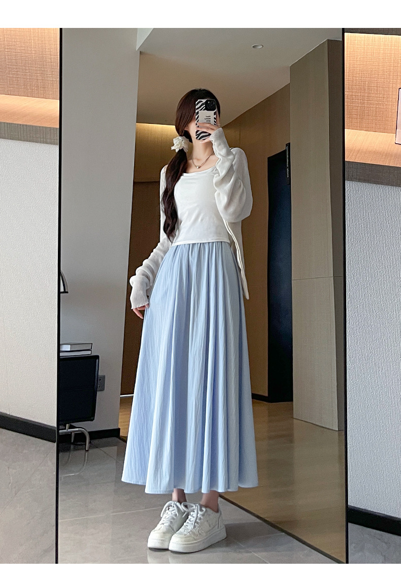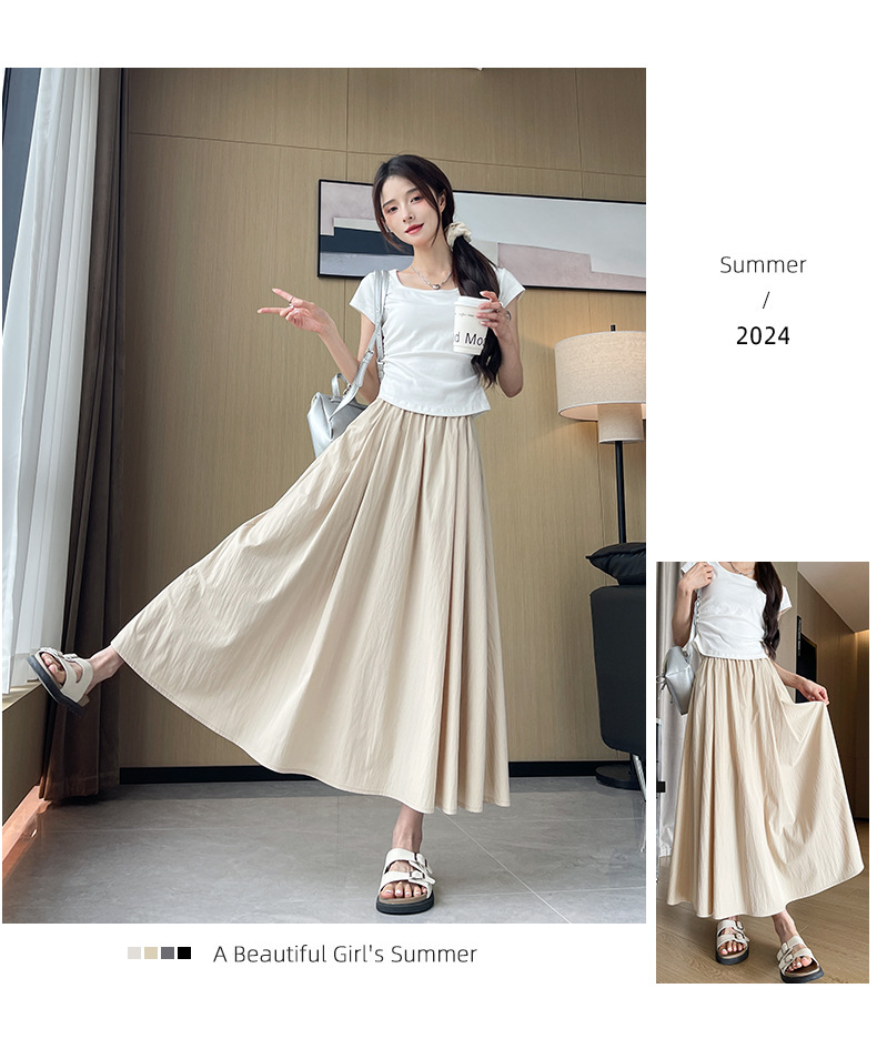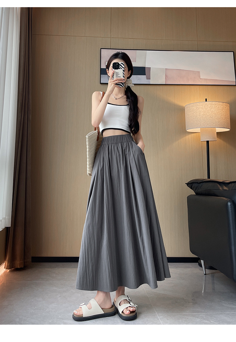 women‘s skirt 2026 new spring and summer high waist a- line slimming umbrella skirt pleated long skirt small apricot yamamoto skirt