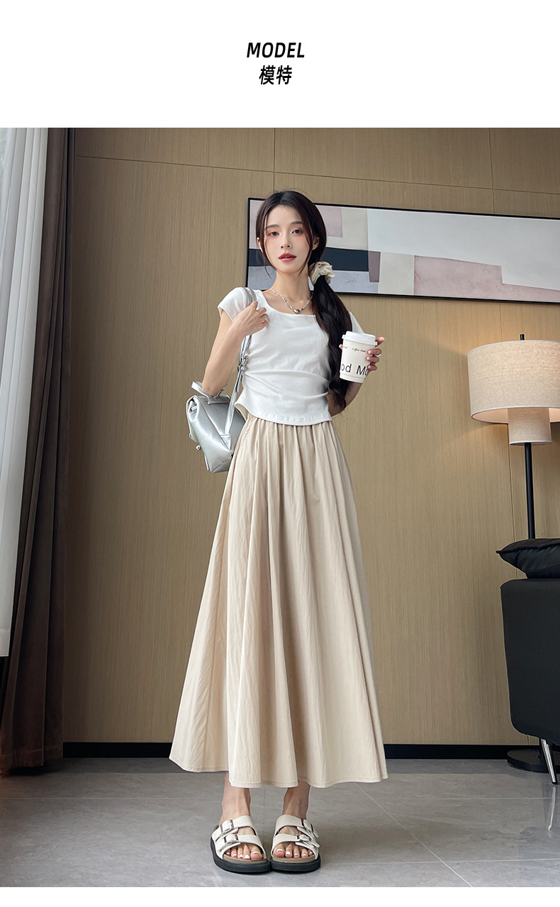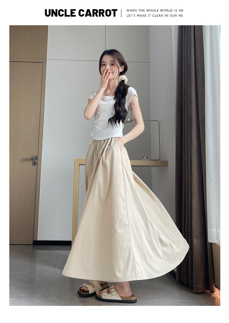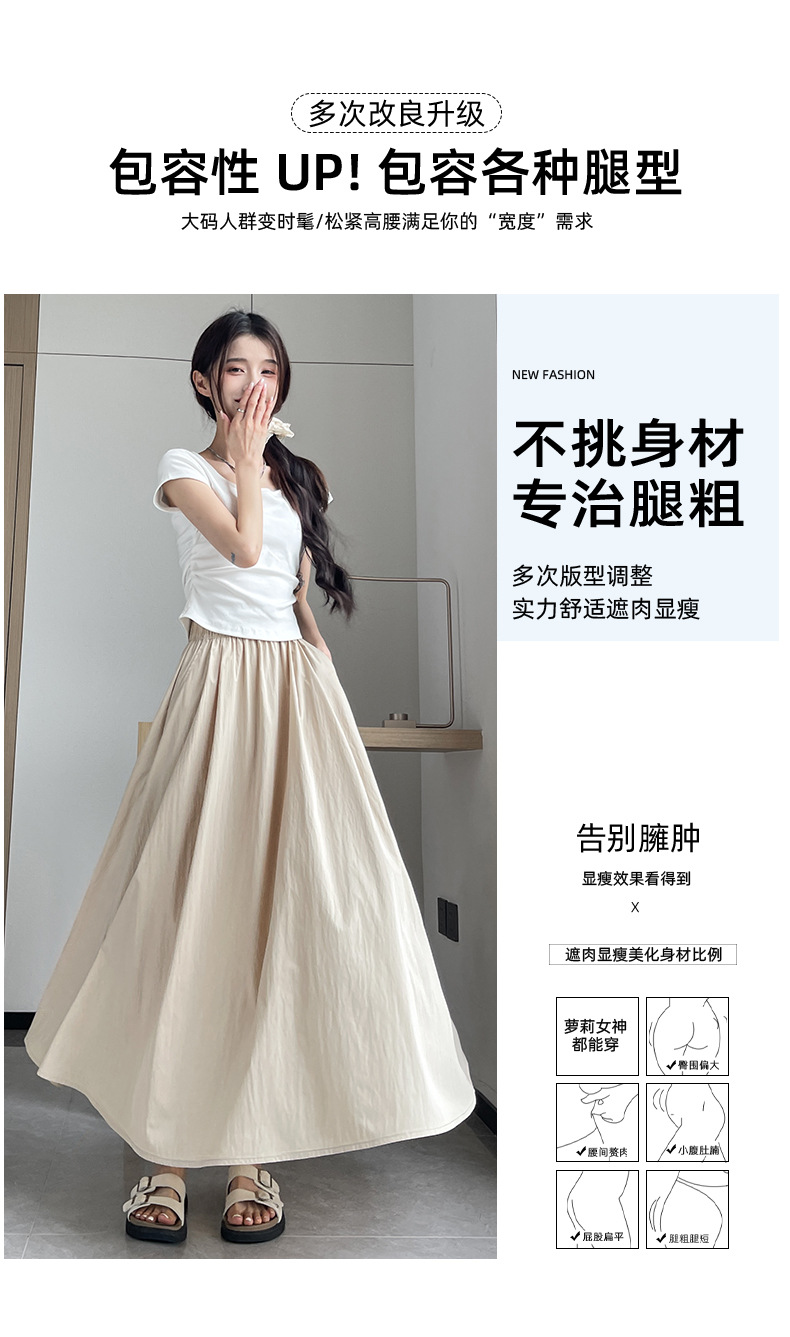 半身裙女2026新款春夏高腰a字显瘦伞裙百褶长裙小个子杏色山本裙