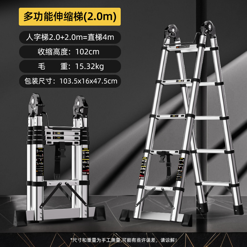 不锈钢伸缩梯子多功能关节两用人字梯折叠家用梯竹节升降楼梯批发