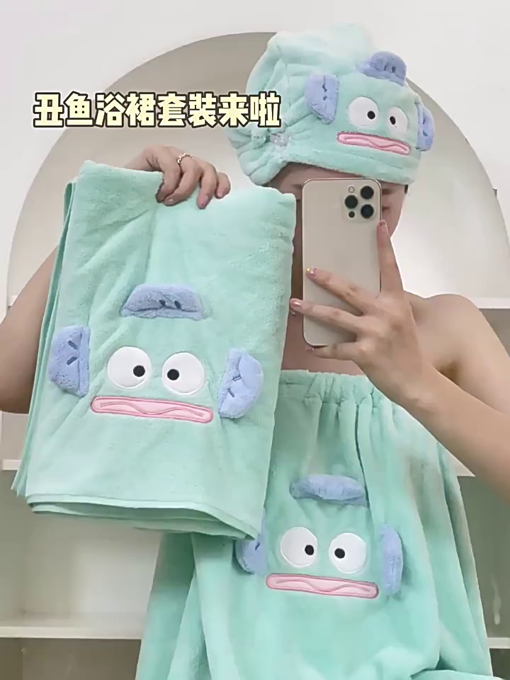 可穿可裹珊瑚绒浴巾女毛巾干发帽三件套新款浴巾裹全身可穿 浴裙