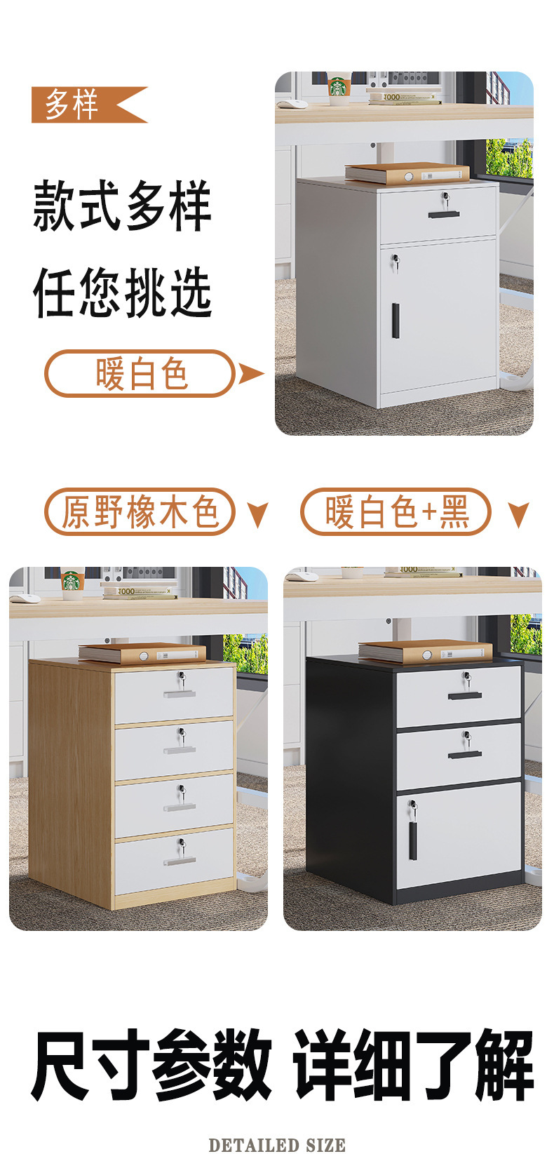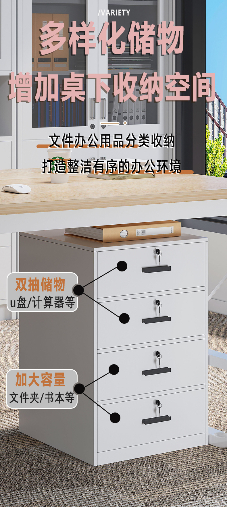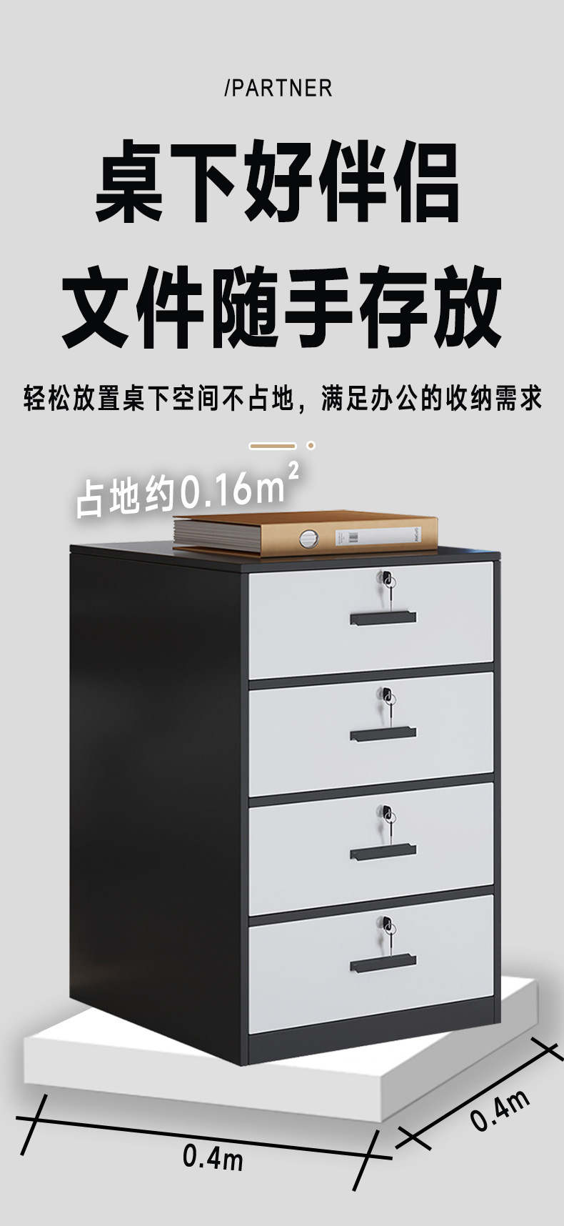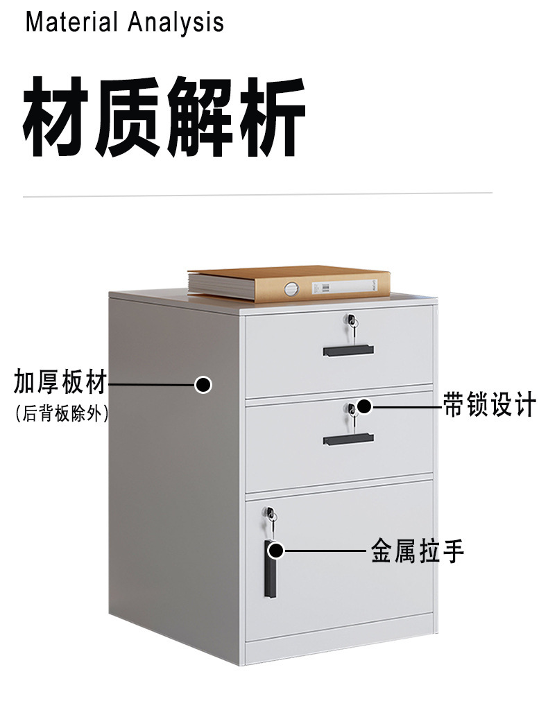文件柜带锁办公室桌下收纳柜矮柜边柜储物柜落地小柜子多功能