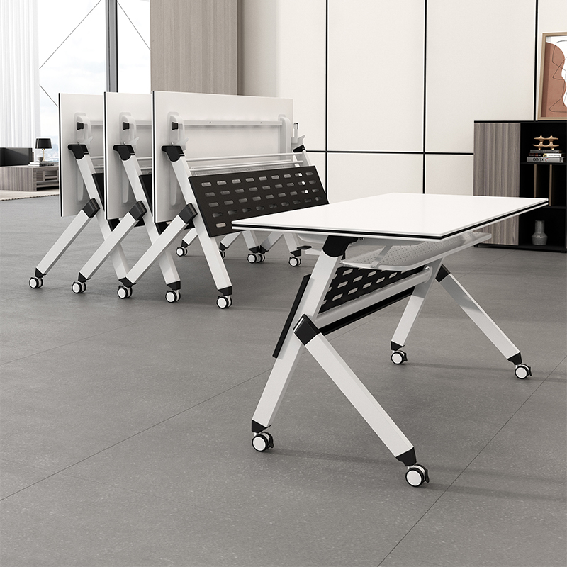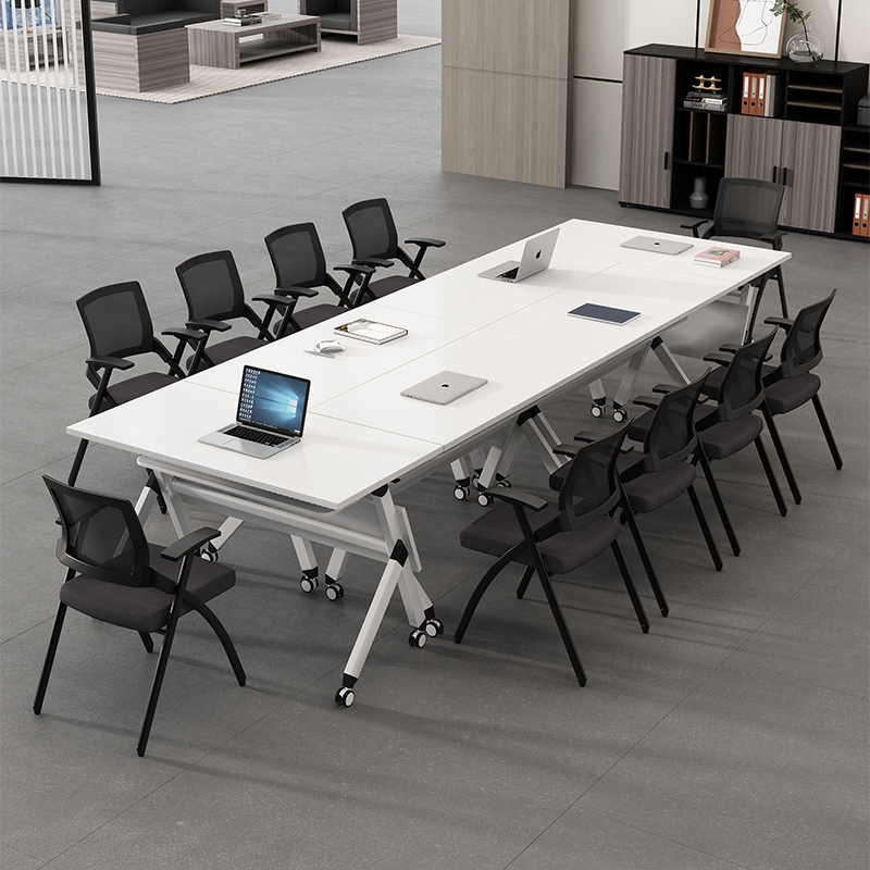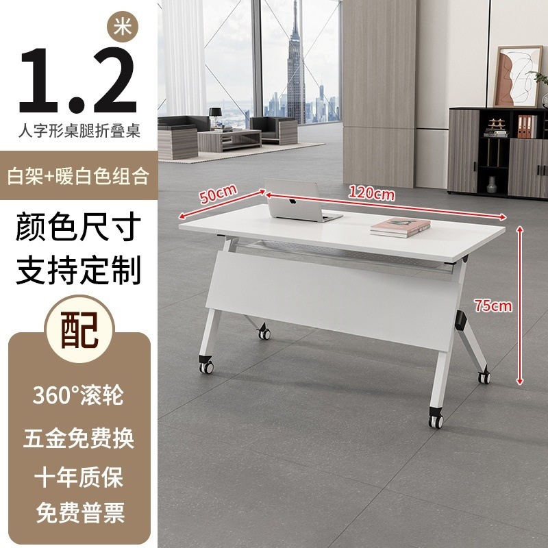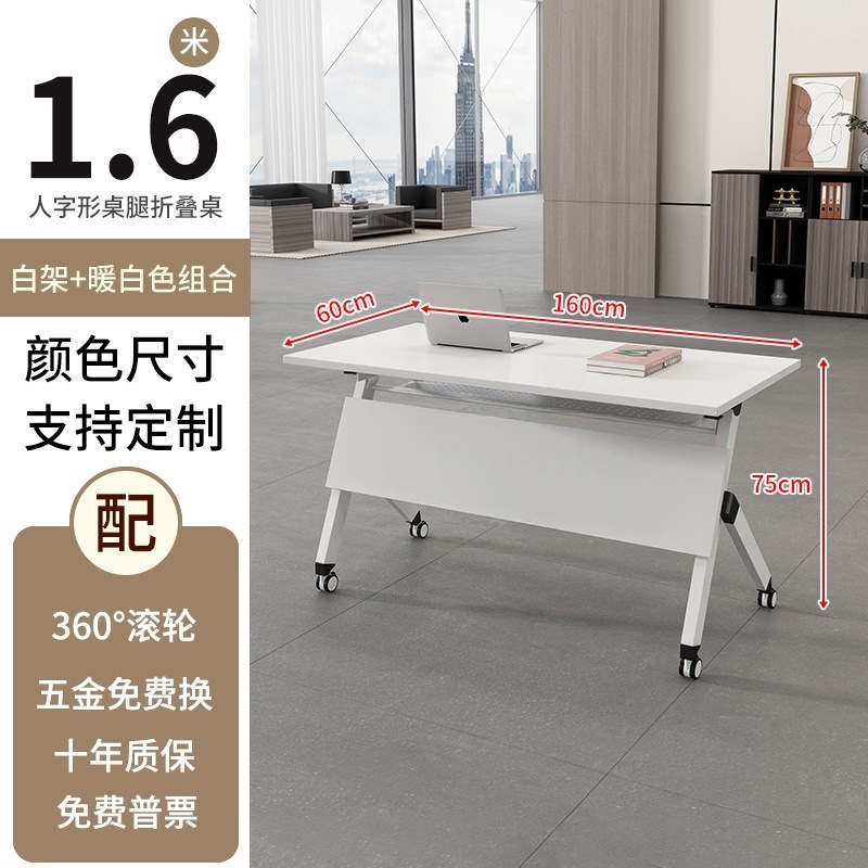 折叠培训桌会议桌椅组合侧翻学生课桌带轮移动拼接活动办公长条桌