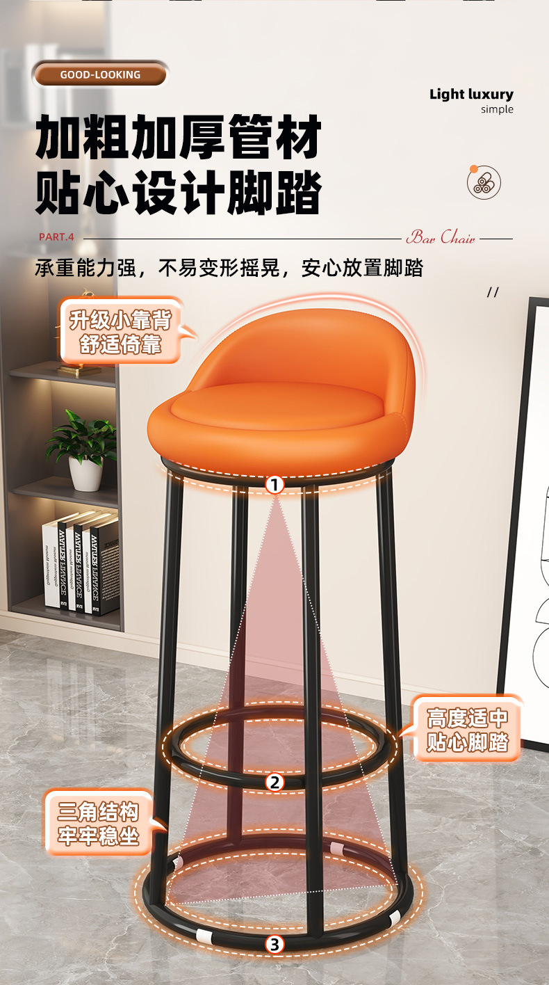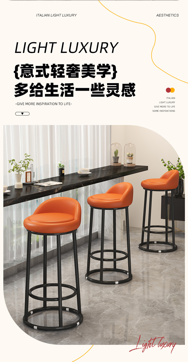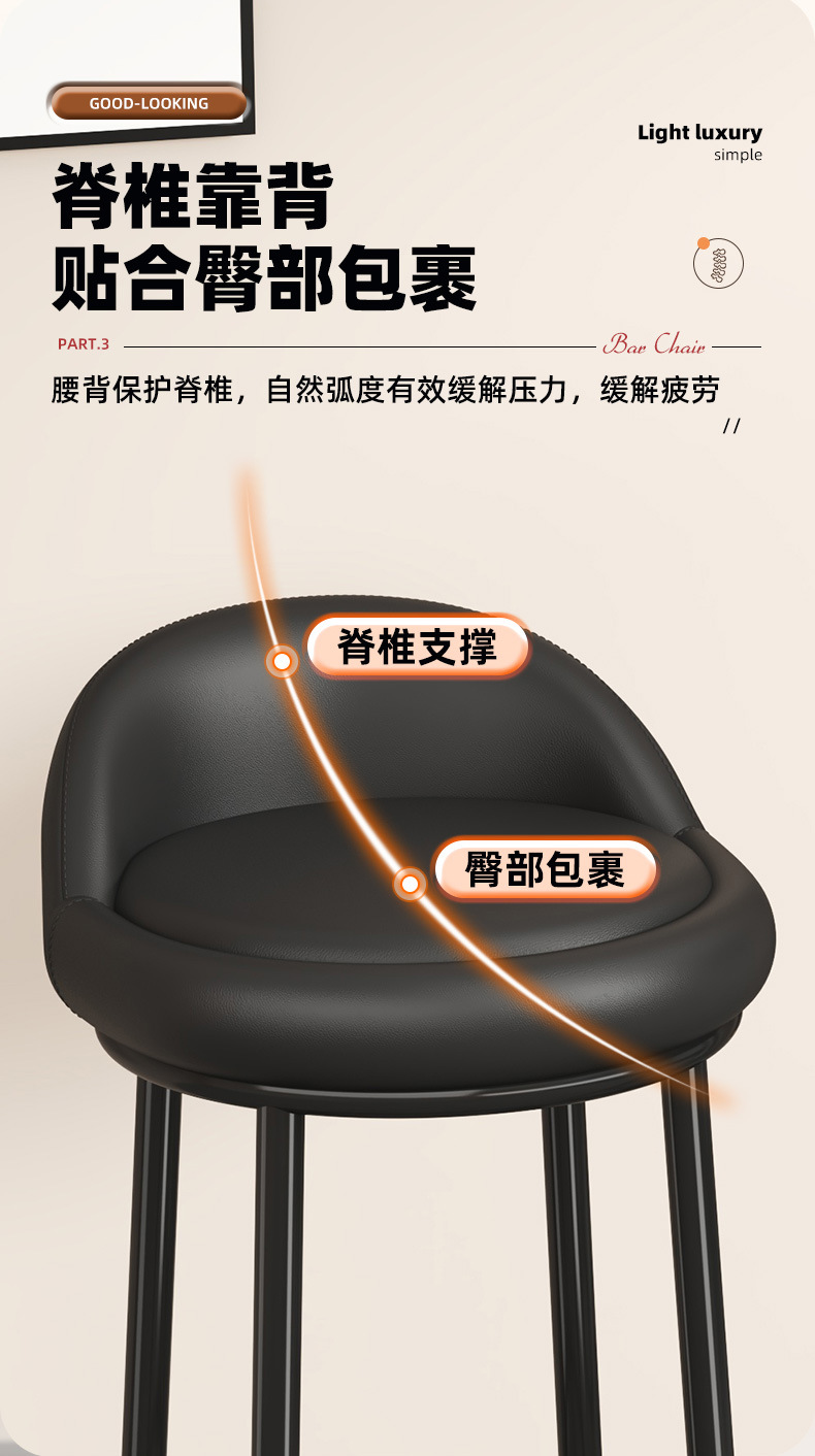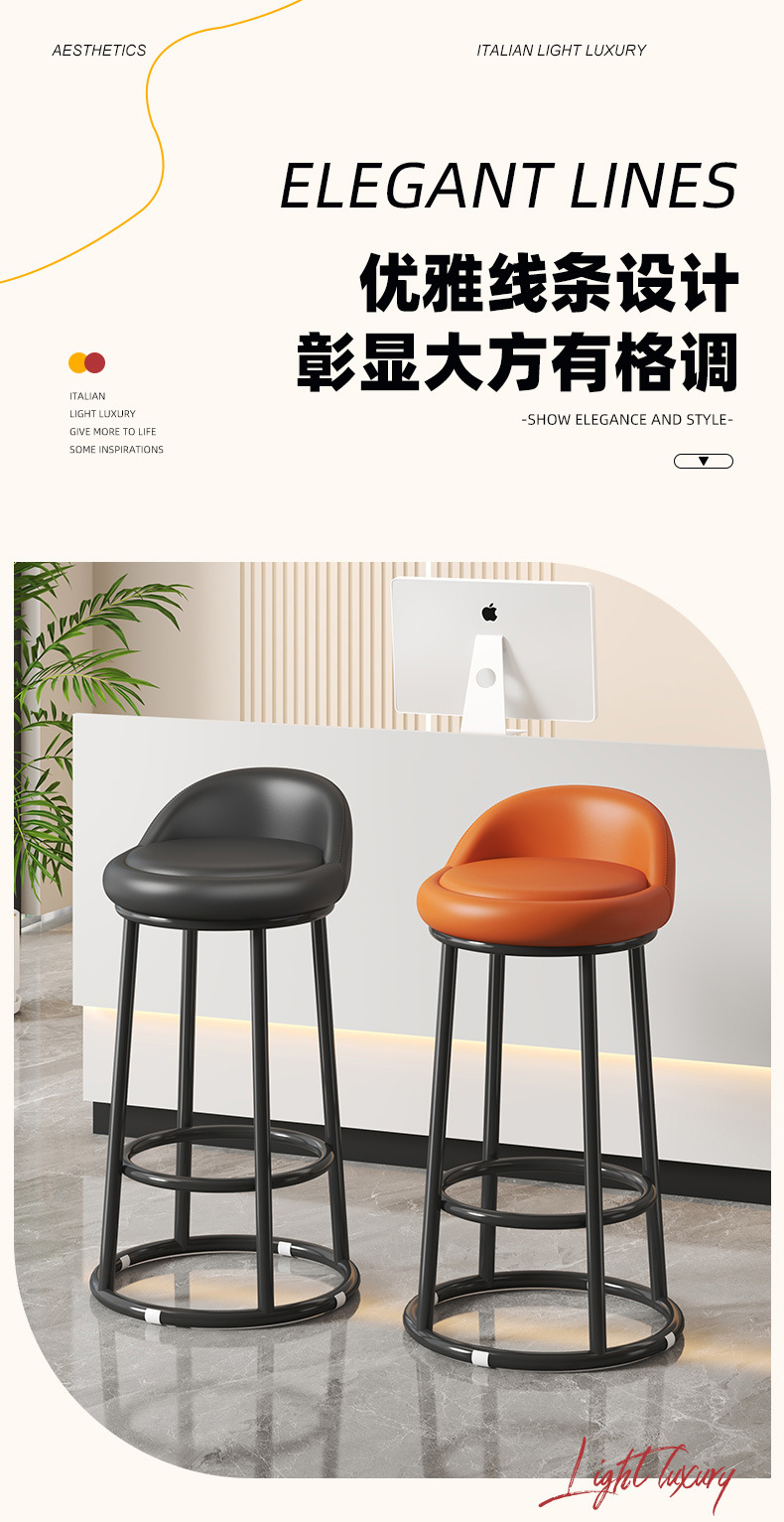 家用靠背凳子简约酒吧凳美容收银台轻奢高脚圆凳旋转椅子吧台椅