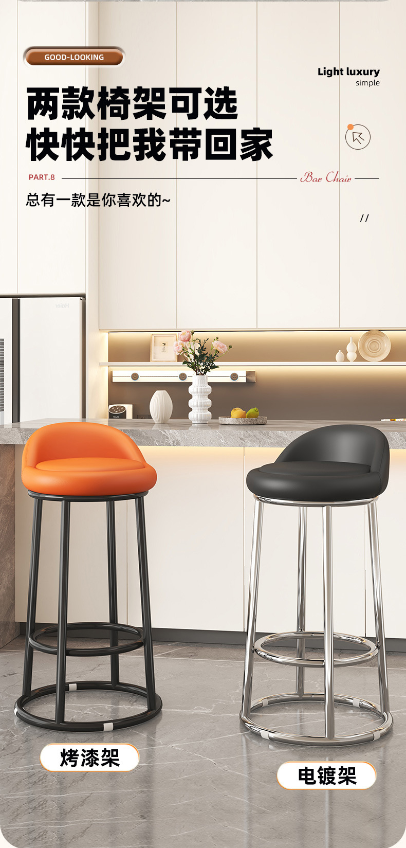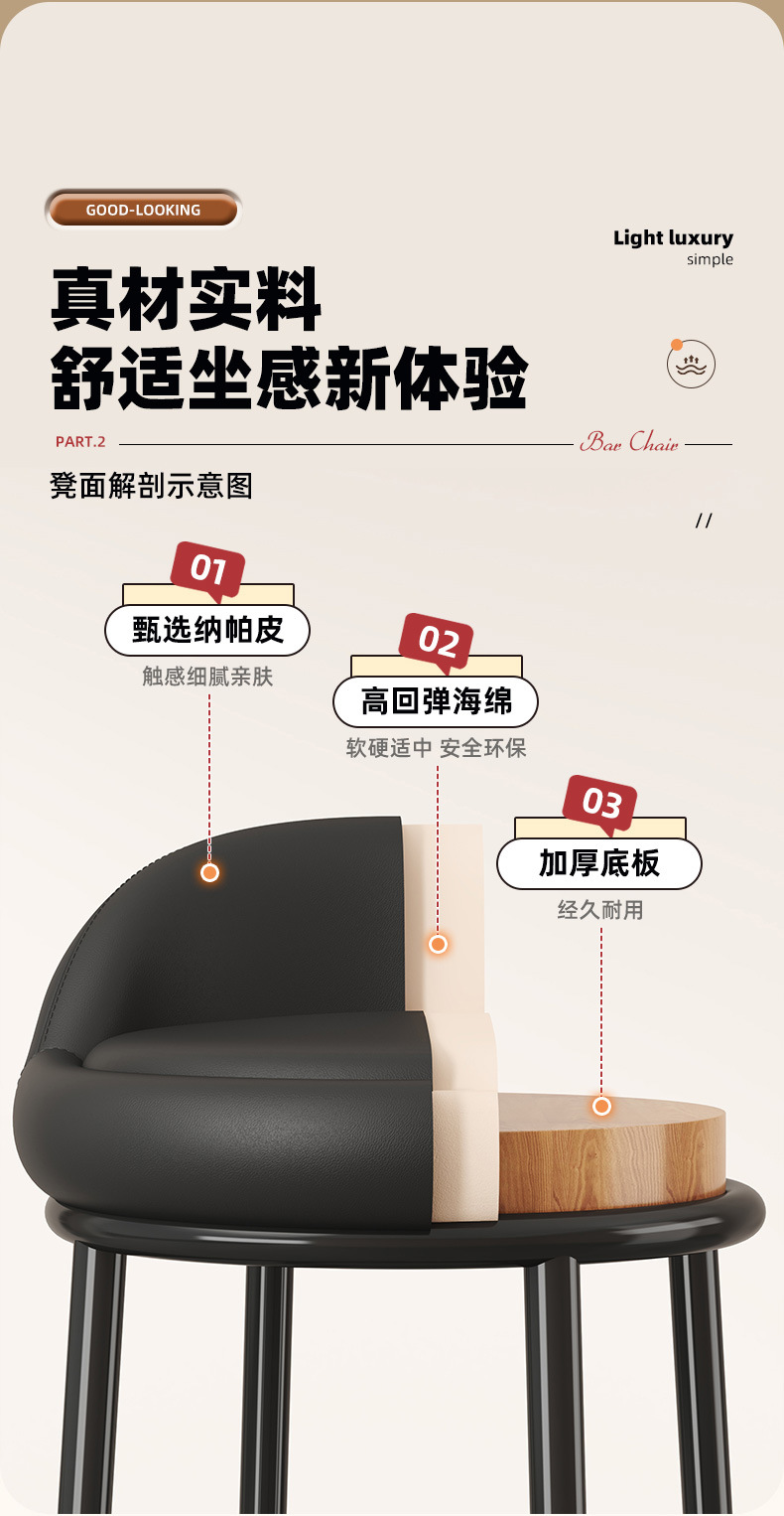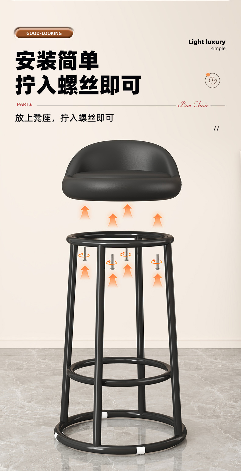 家用靠背凳子简约酒吧凳美容收银台轻奢高脚圆凳旋转椅子吧台椅