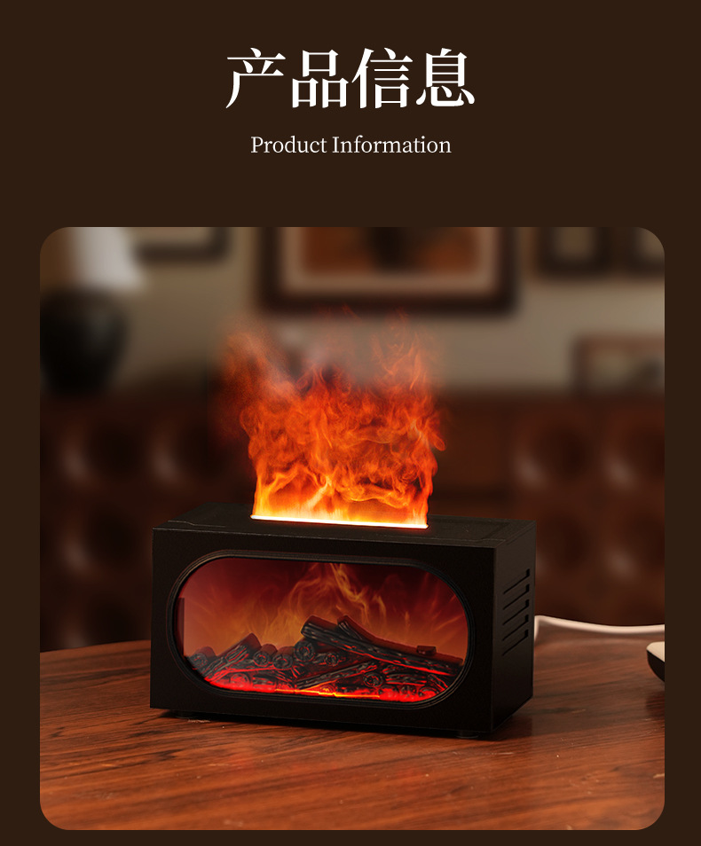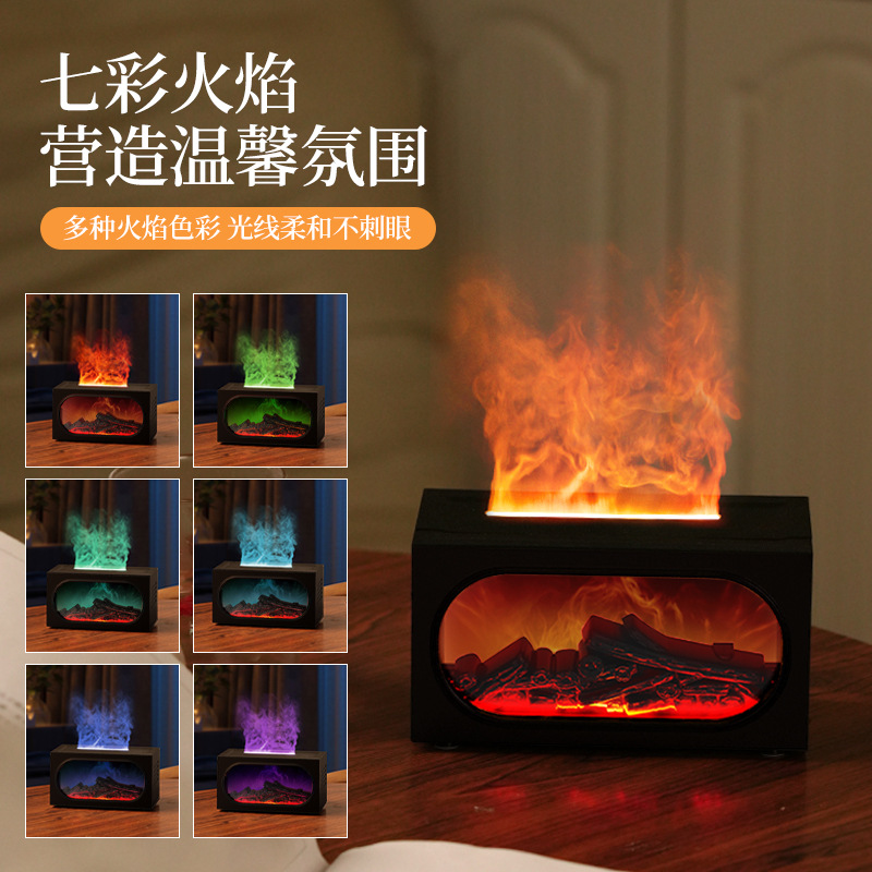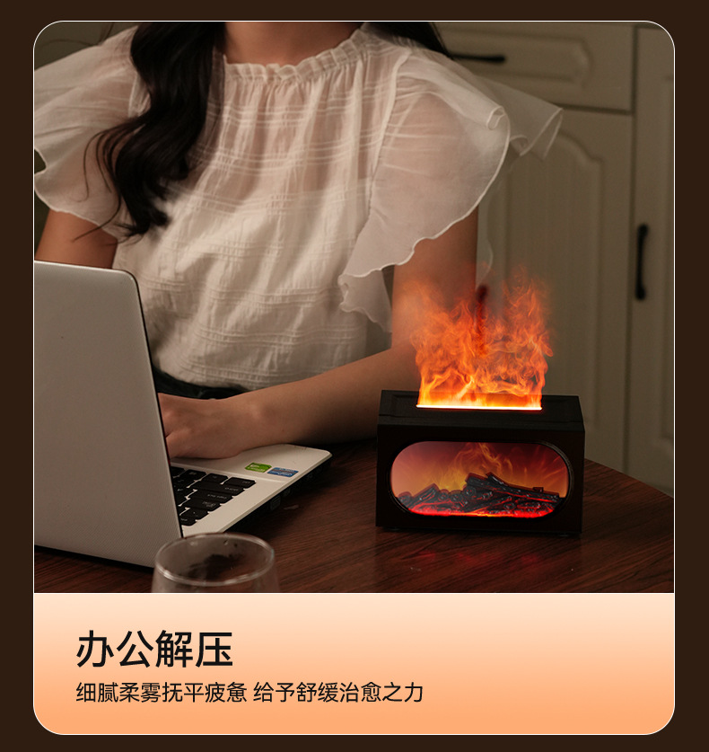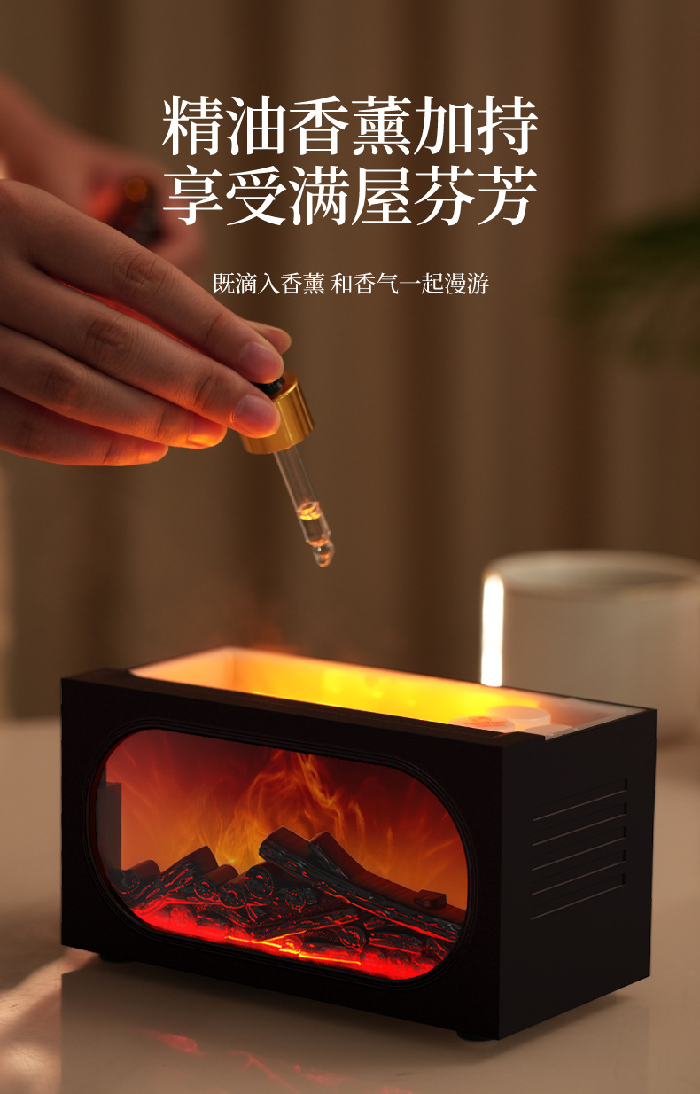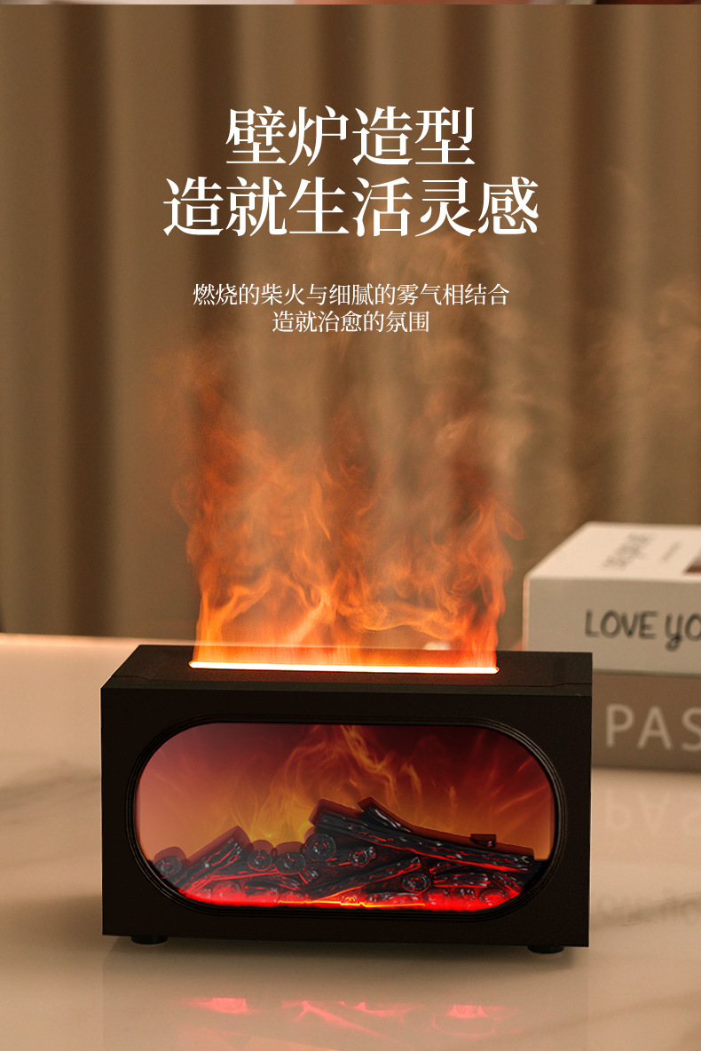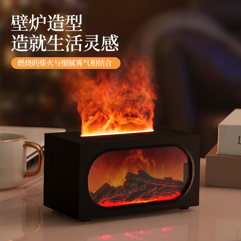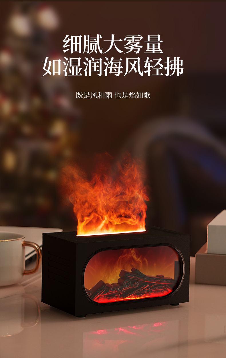 2026跨境壁炉火焰香薰机北欧家用桌面仿真火焰氛围雾化加湿香薰机