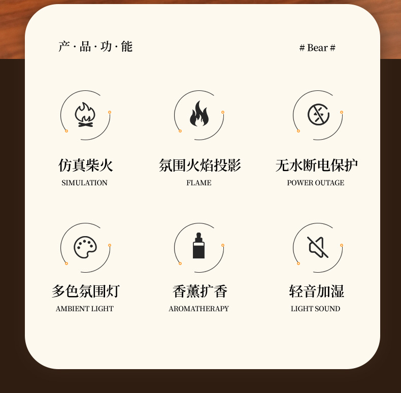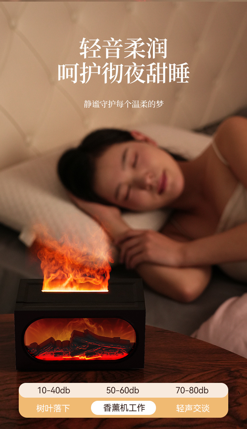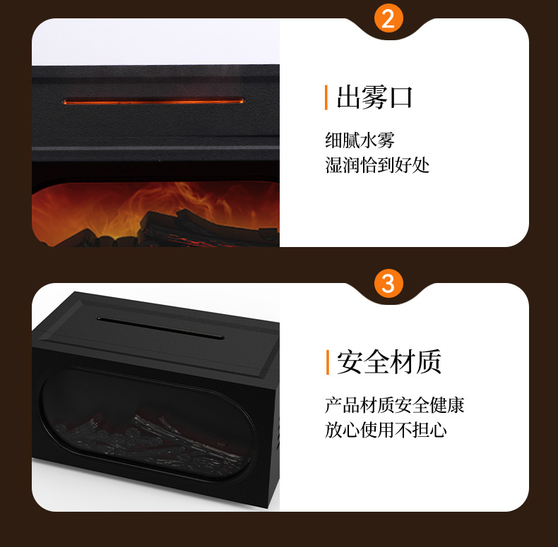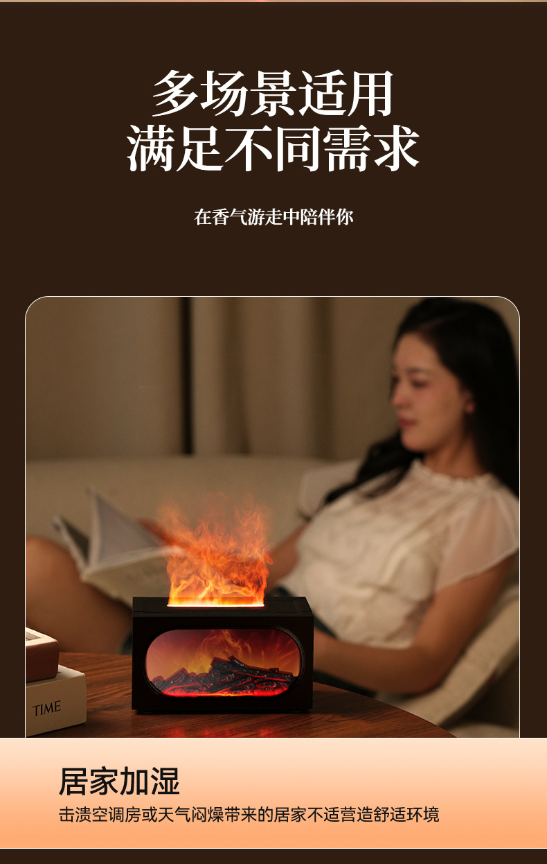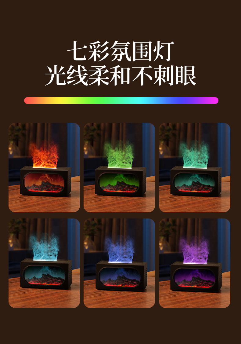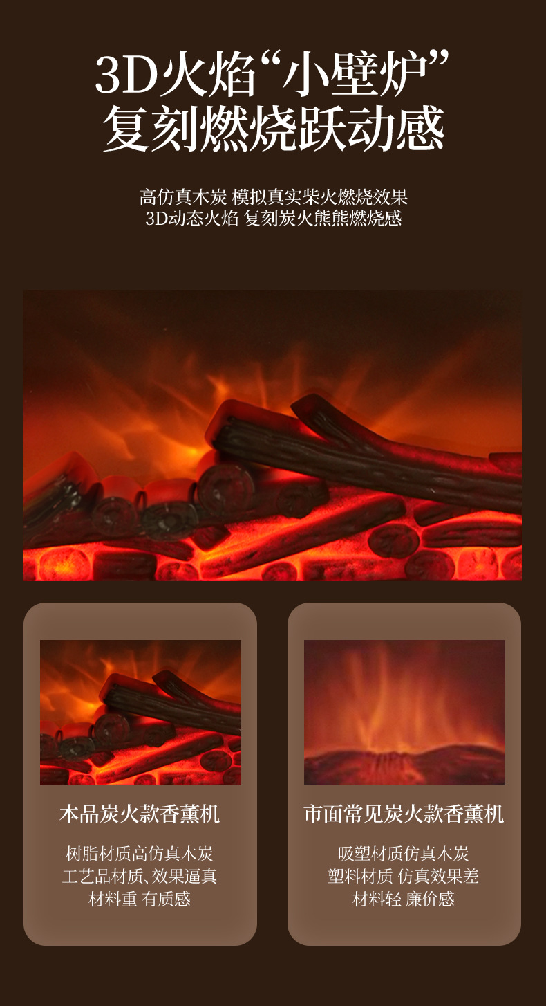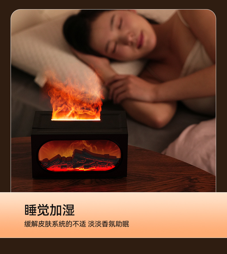 2026跨境壁炉火焰香薰机北欧家用桌面仿真火焰氛围雾化加湿香薰机