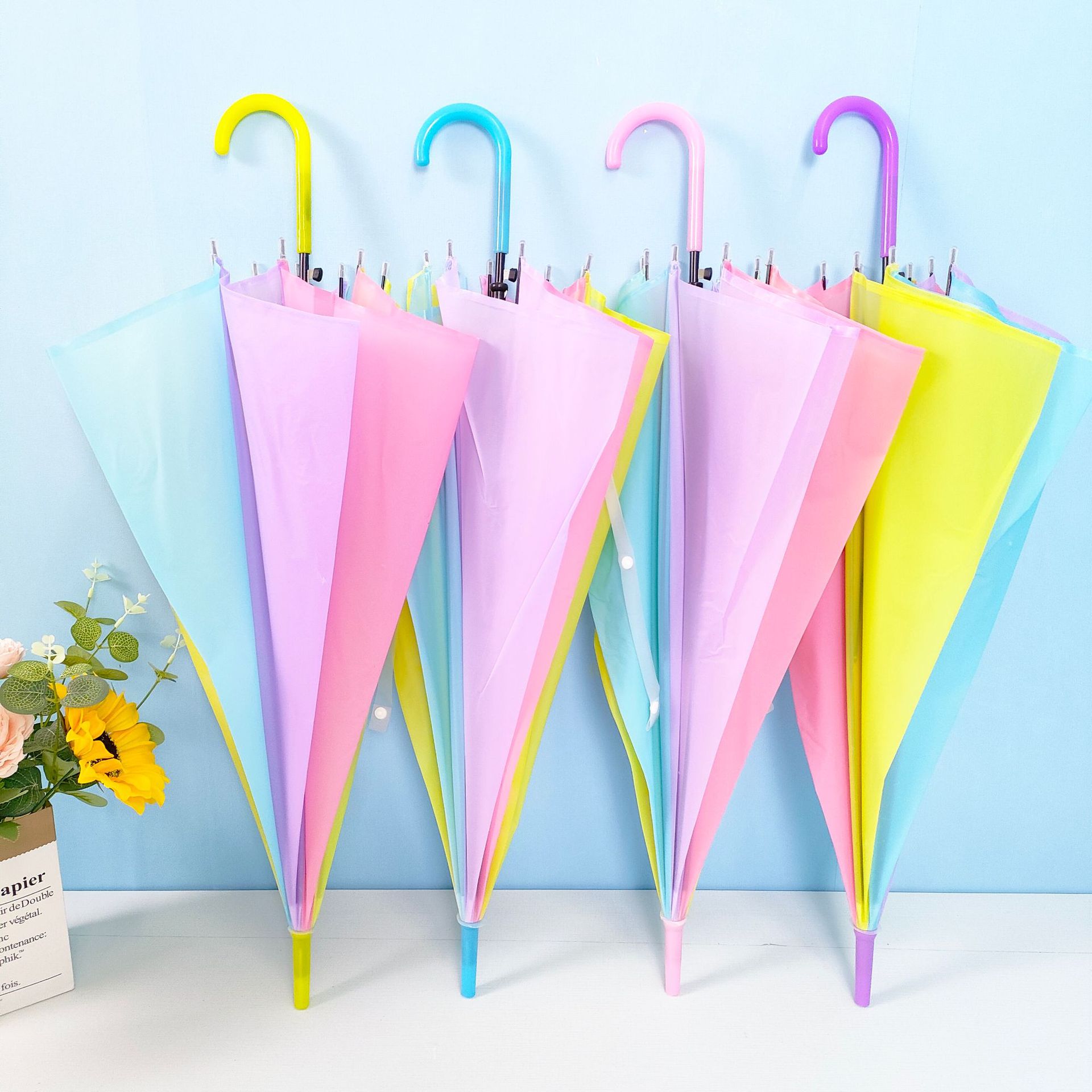 跨境电商爆款彩虹伞直杆长柄半自动雨伞8骨伞广告伞厂家批发