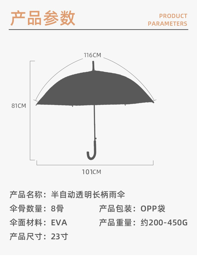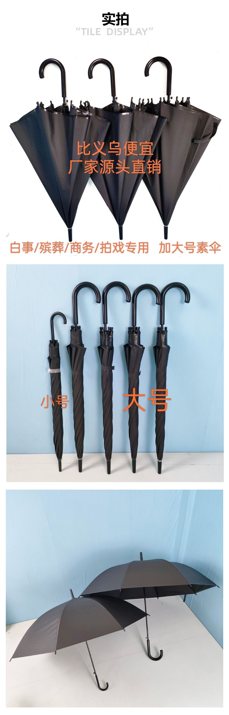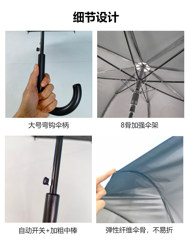 跨境电商爆款发加大号雨伞清明白事殡葬素伞长柄弯钩大号商务伞