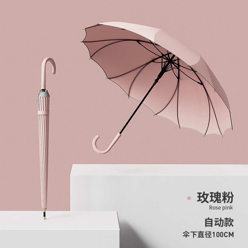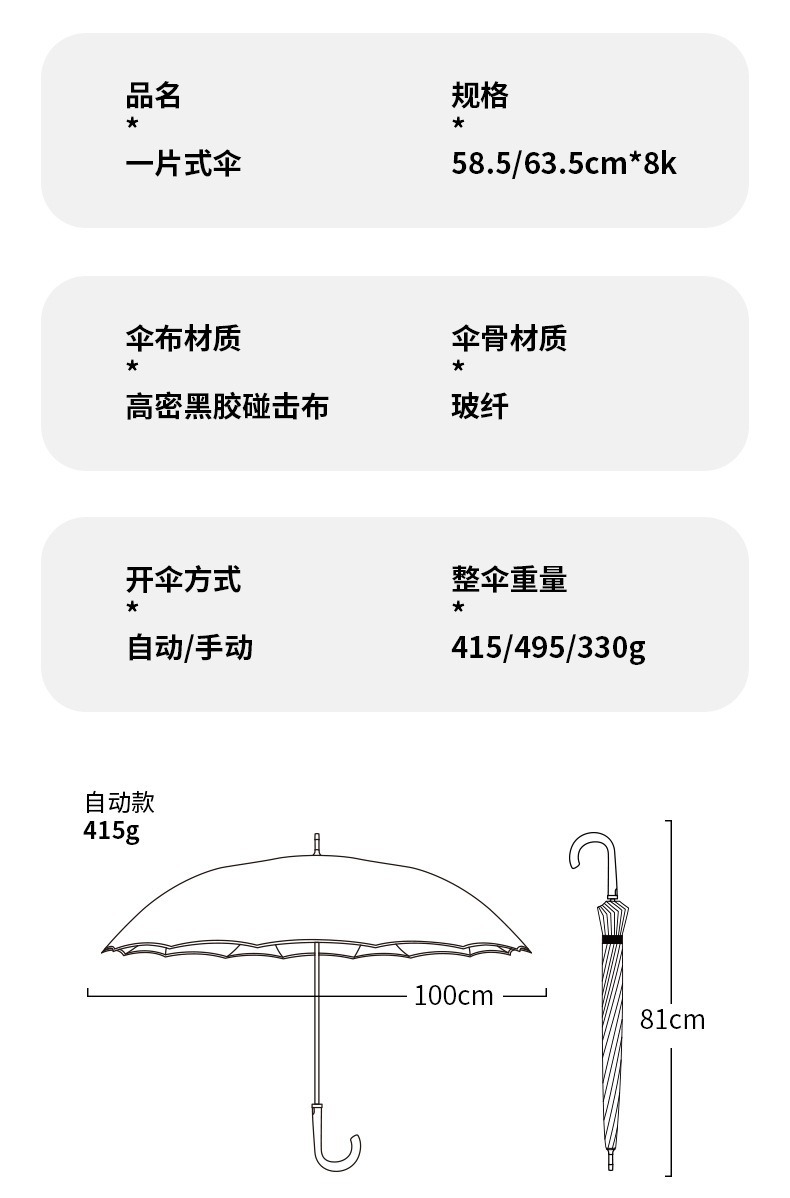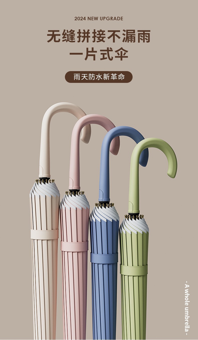 跨境电商爆款一片式雨伞长柄自动暴雨专用大号加固加厚结实挡风
