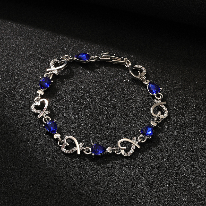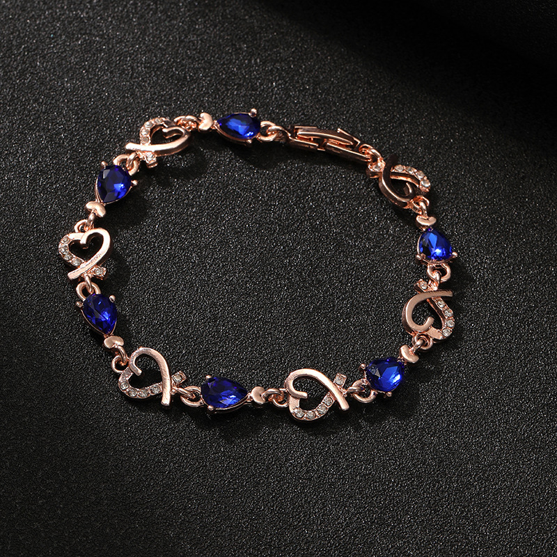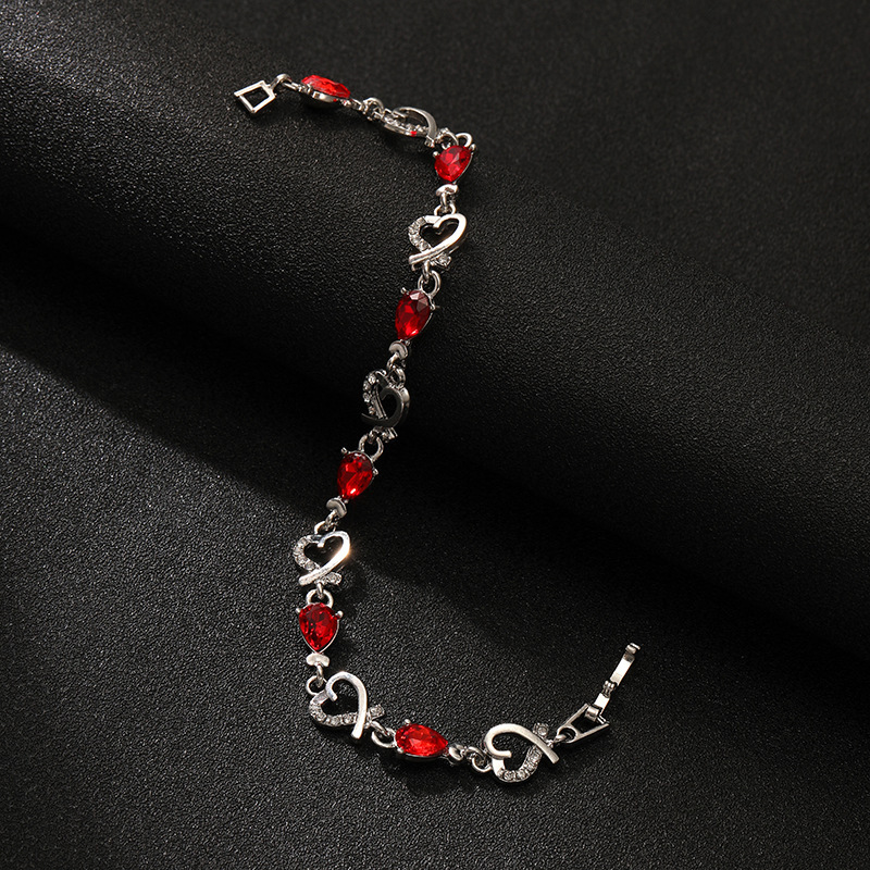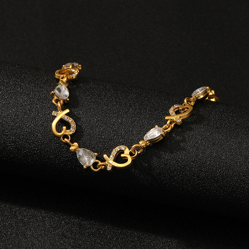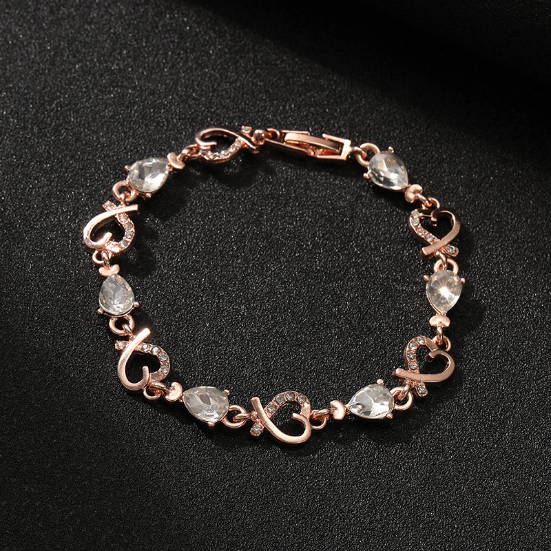 跨境爱心时尚手饰镂空气质花朵镶钻淑女手链合金心形手链女