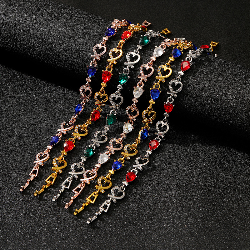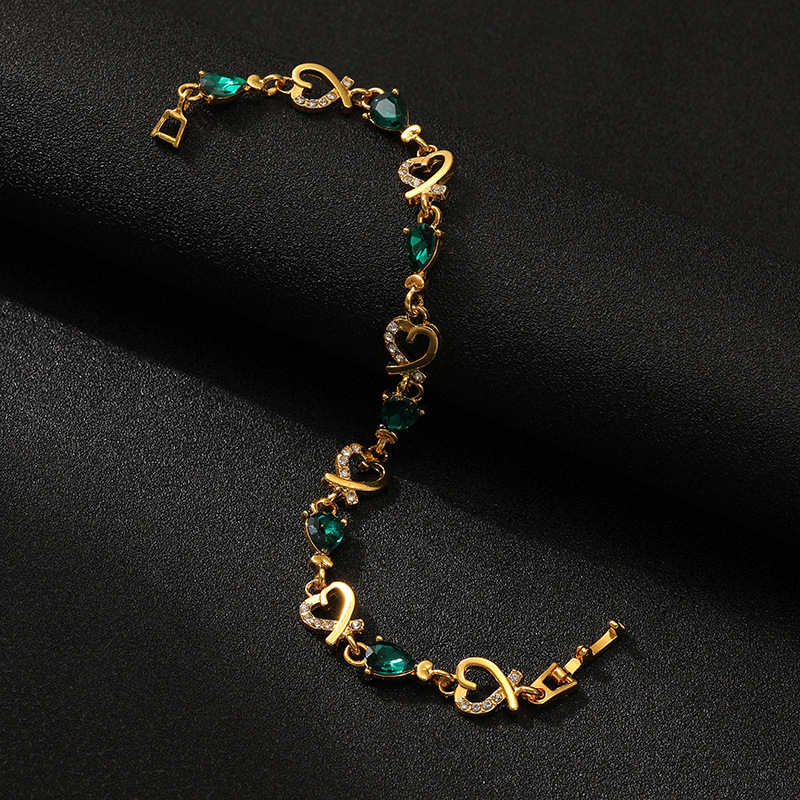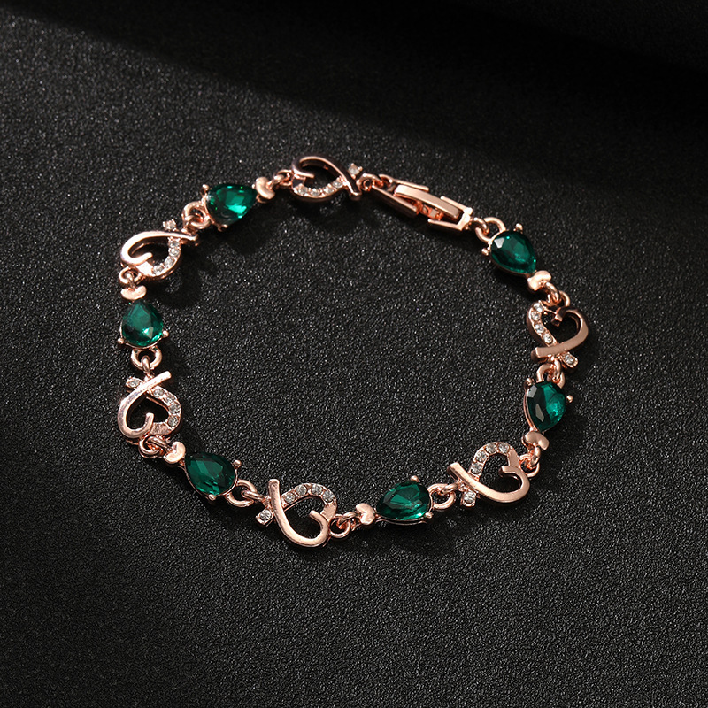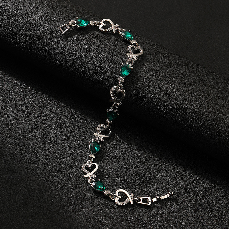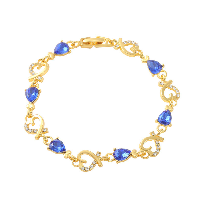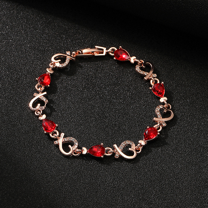 跨境爱心时尚手饰镂空气质花朵镶钻淑女手链合金心形手链女