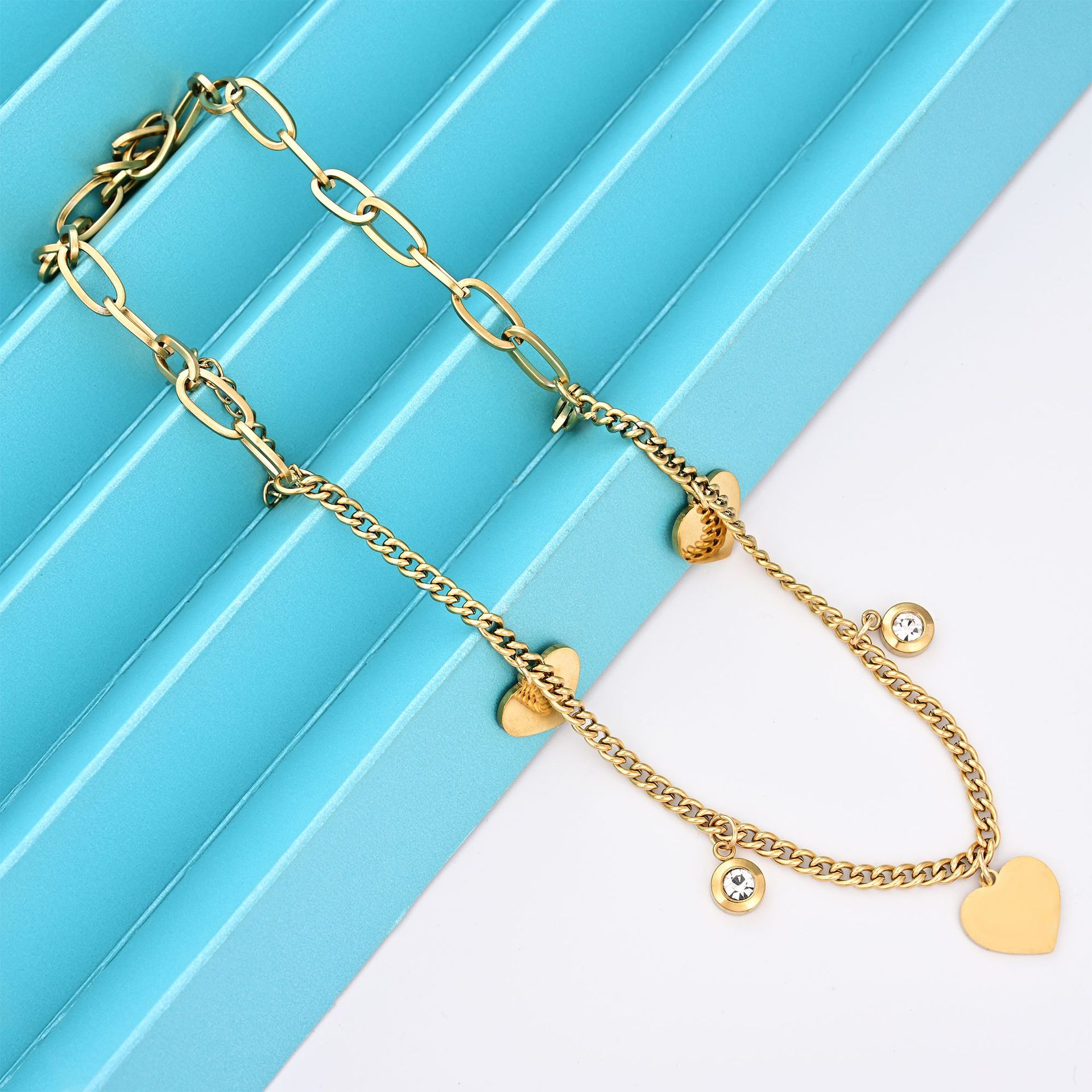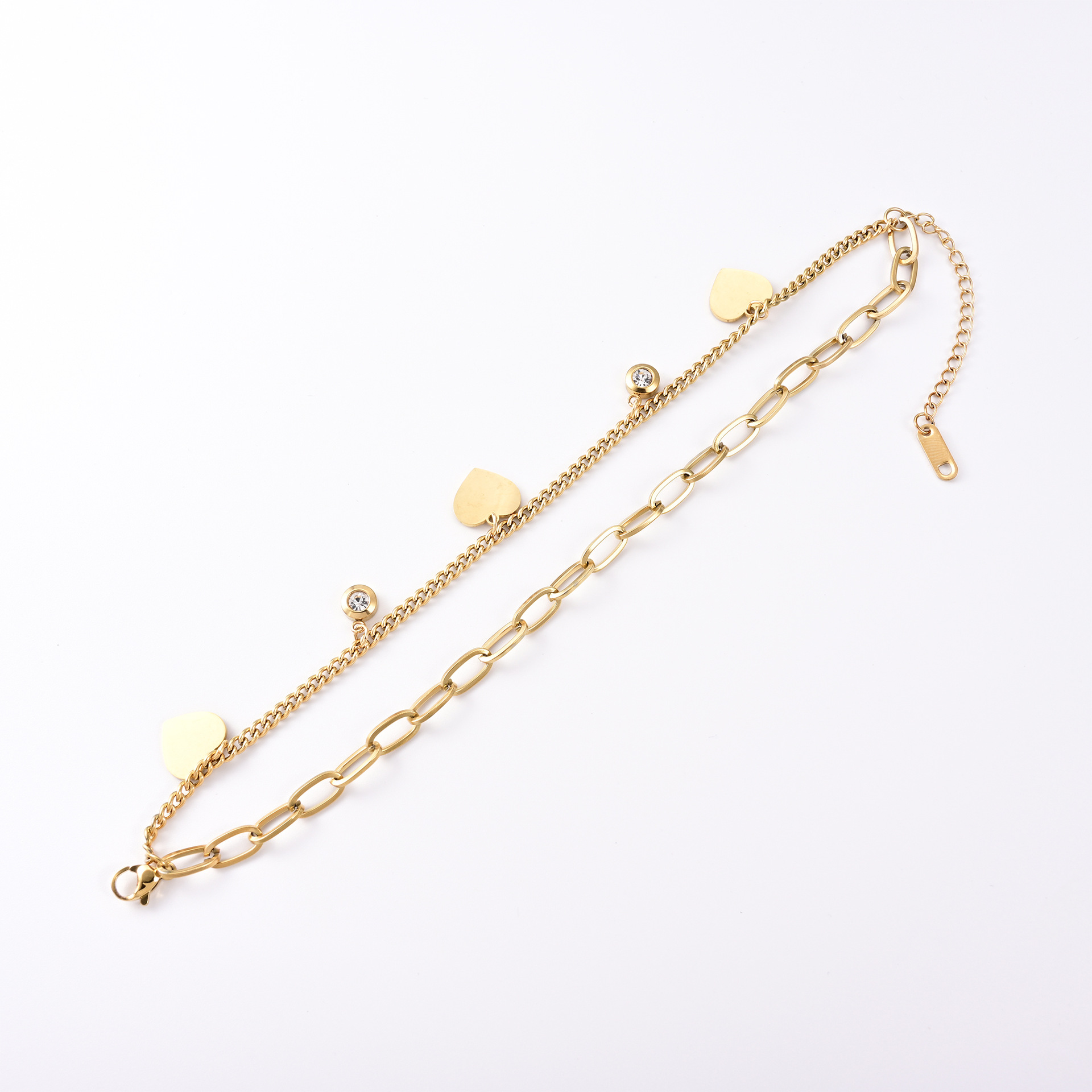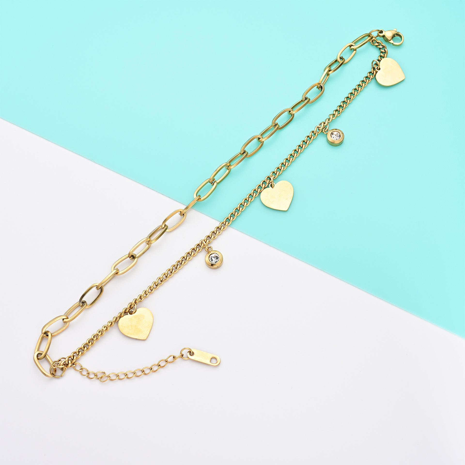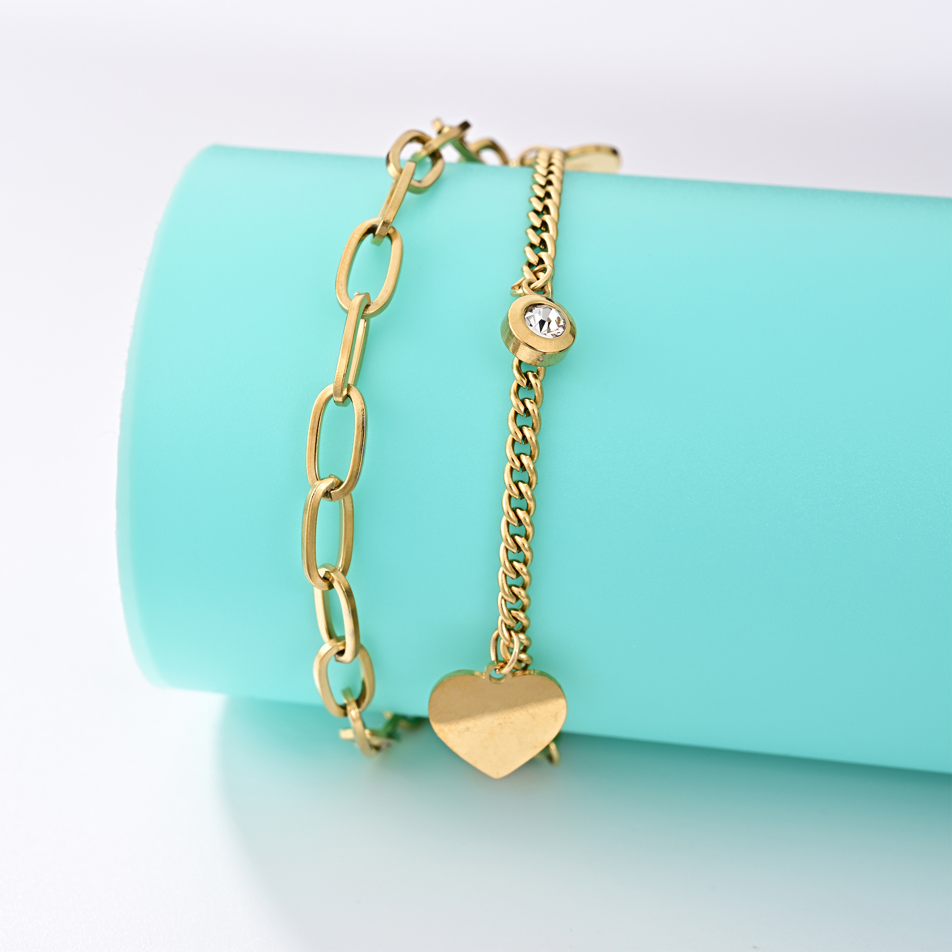 2024新款女士链条手链不掉色夏天爱心叠戴时尚个性钛钢双链手饰