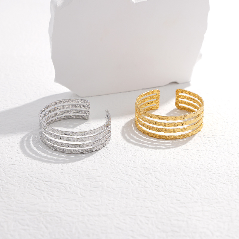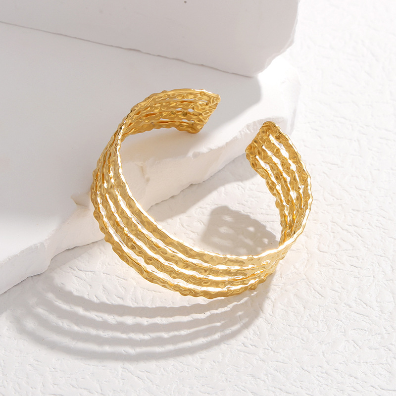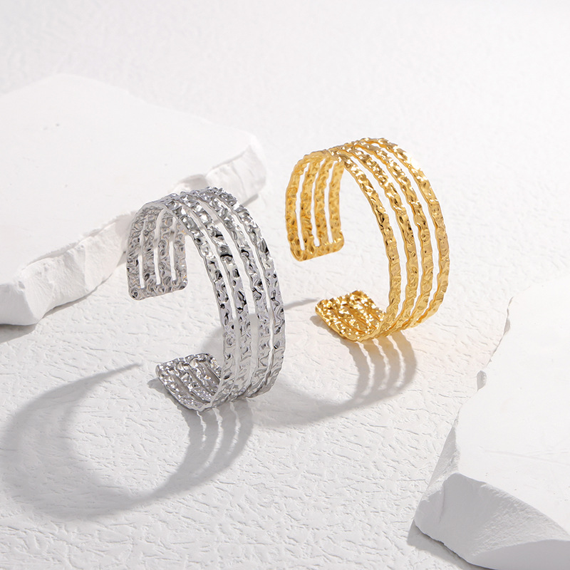 欧美不规则乱纹开口钛钢手镯高级感个性百搭不锈钢手环不掉色手饰