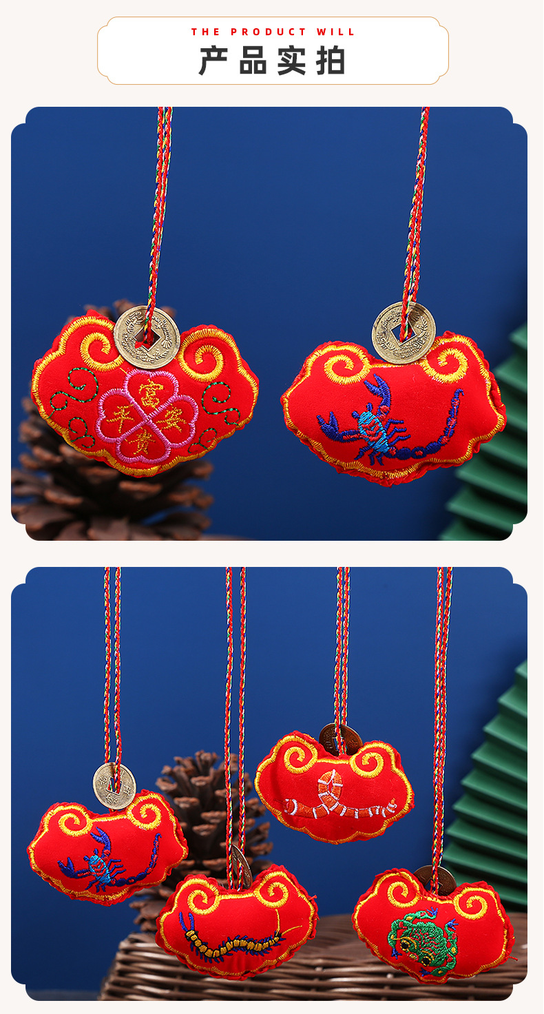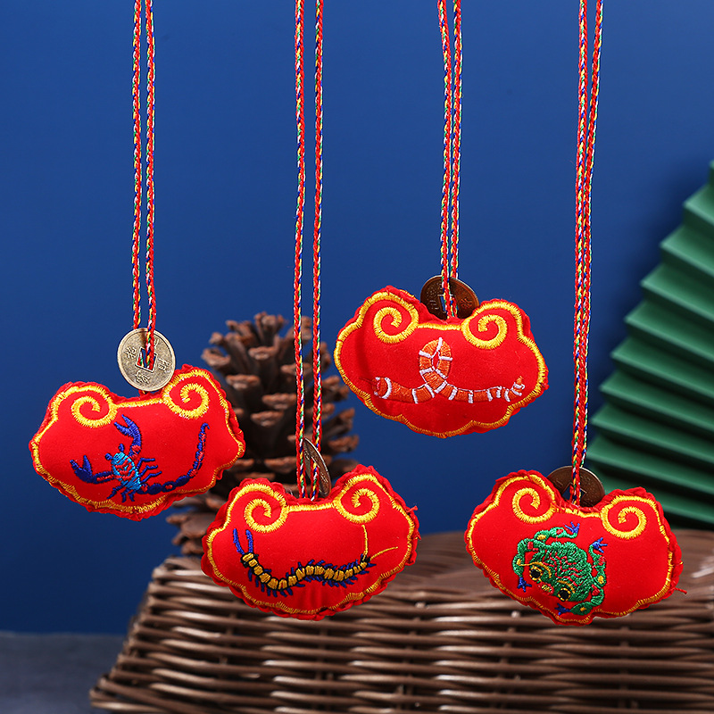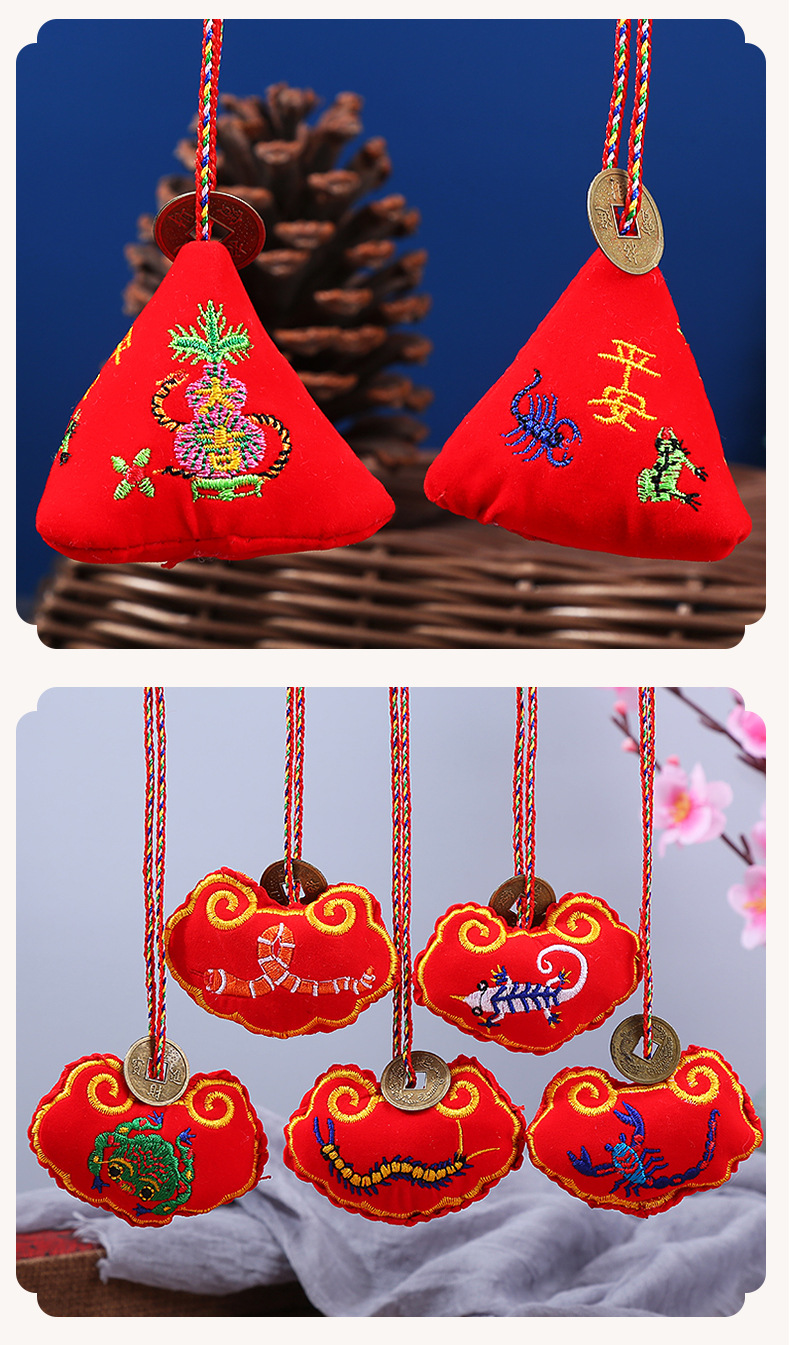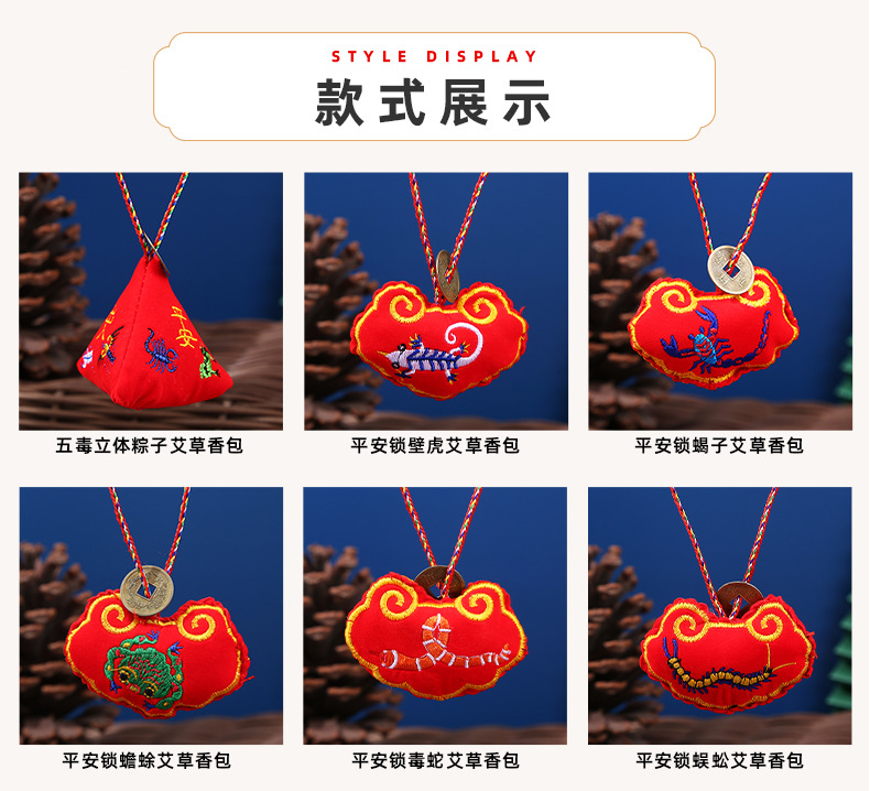 传统五毒端午香包手工工艺长命锁艾粉香囊香袋可挂脖儿童节礼物
