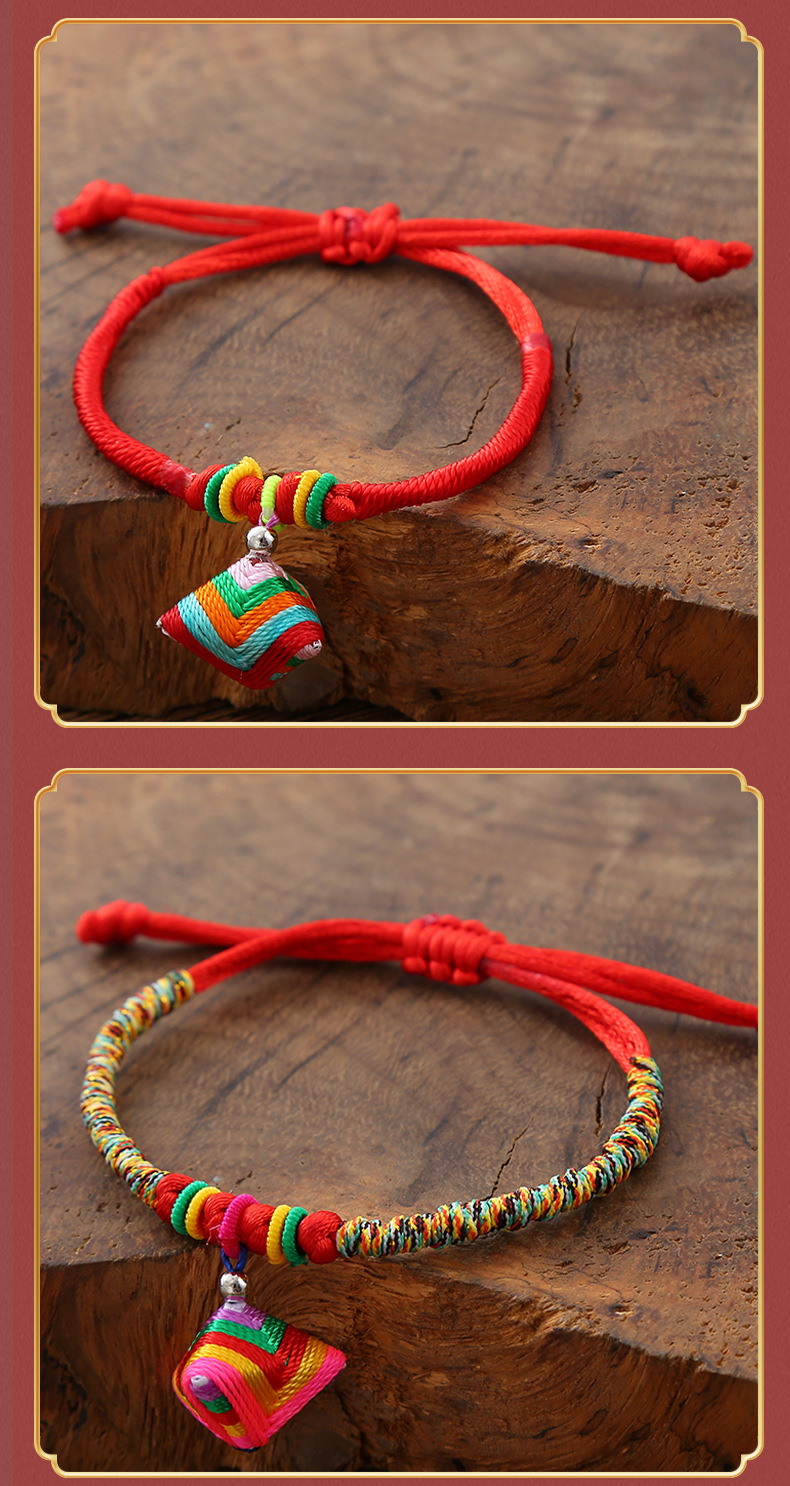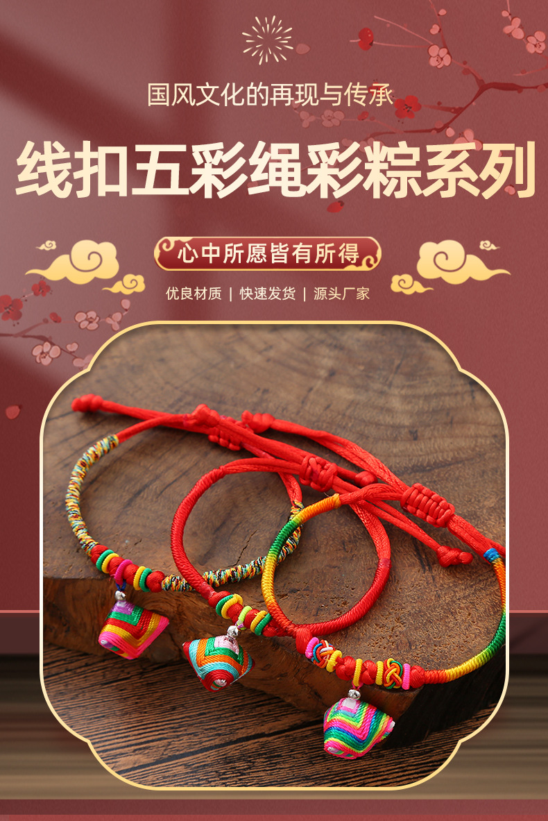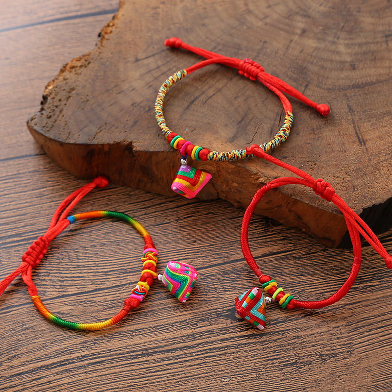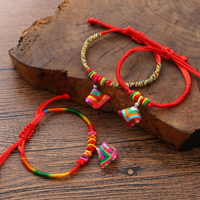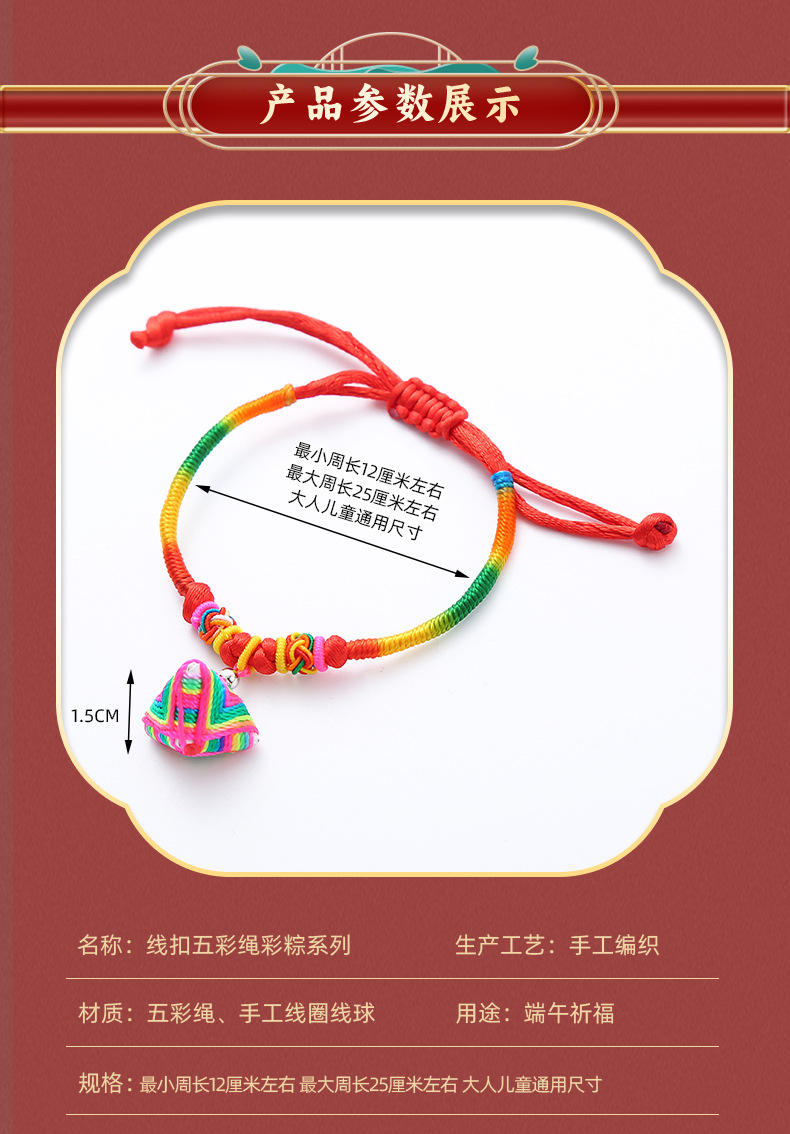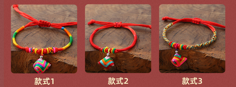 端午节五彩绳手链小粽子手绳民族风手工编织儿童红绳节庆礼品批发