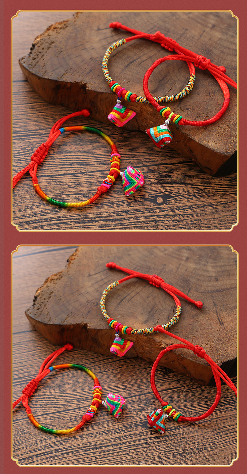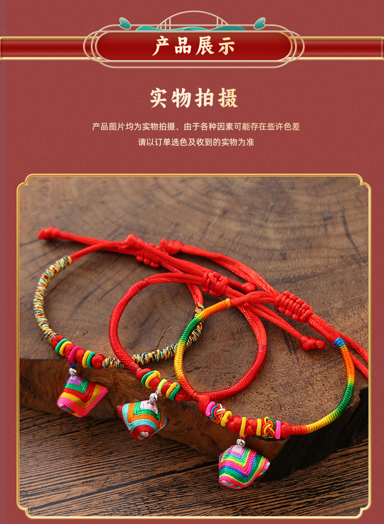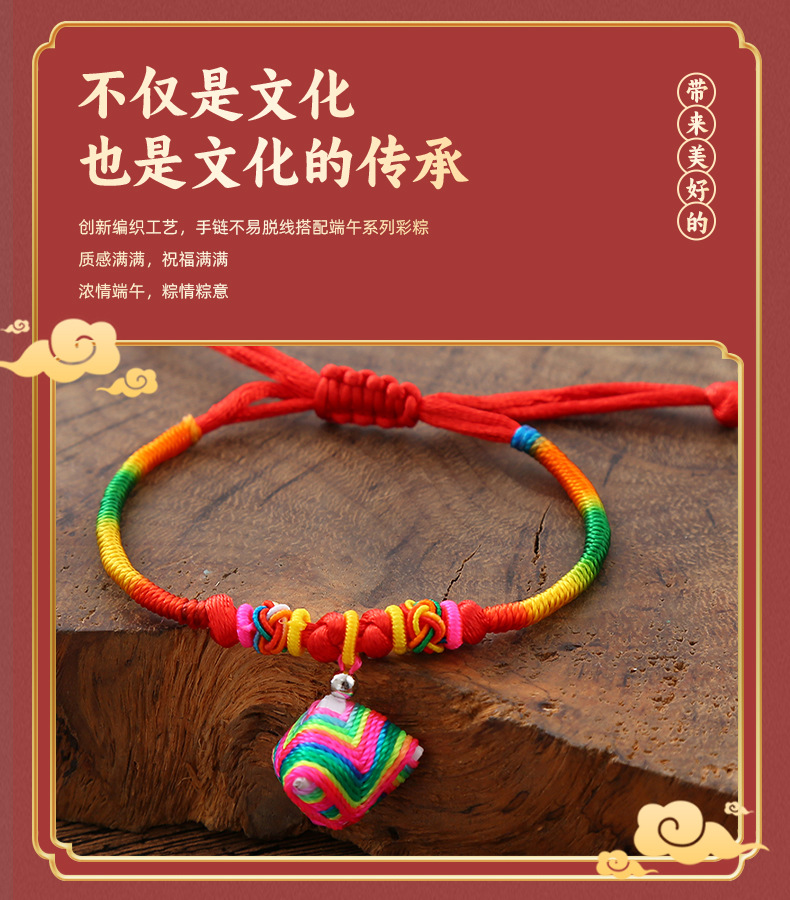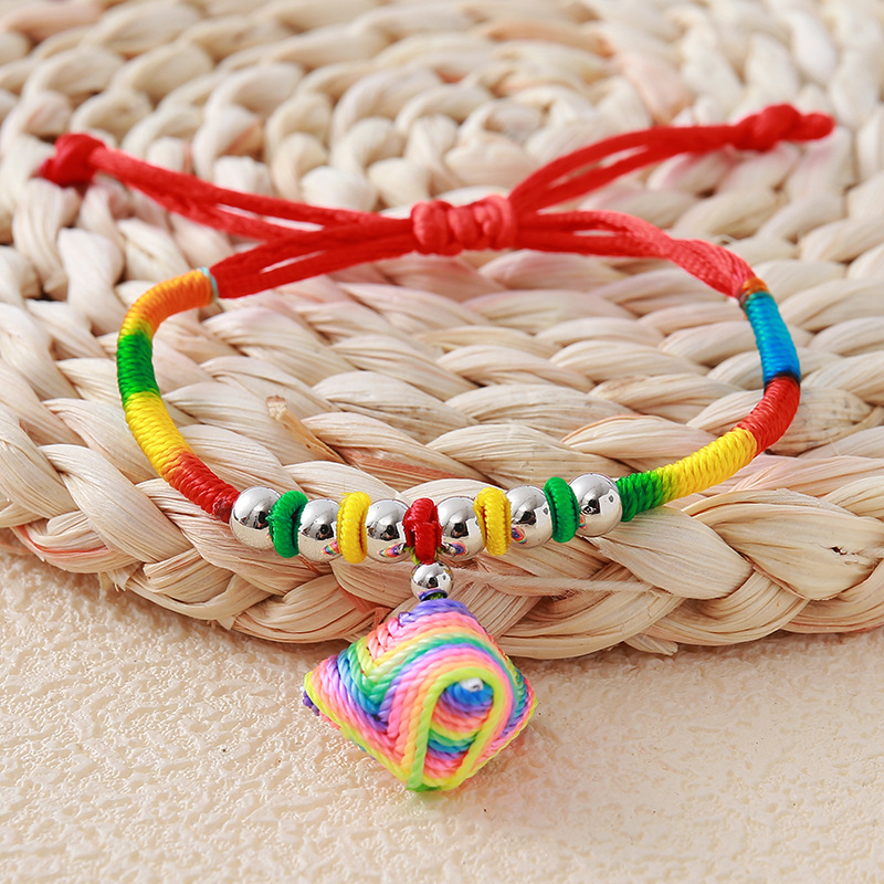 端午节五彩绳手链小粽子手绳民族风手工编织儿童红绳节庆礼品批发