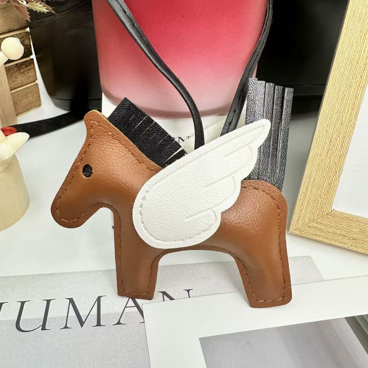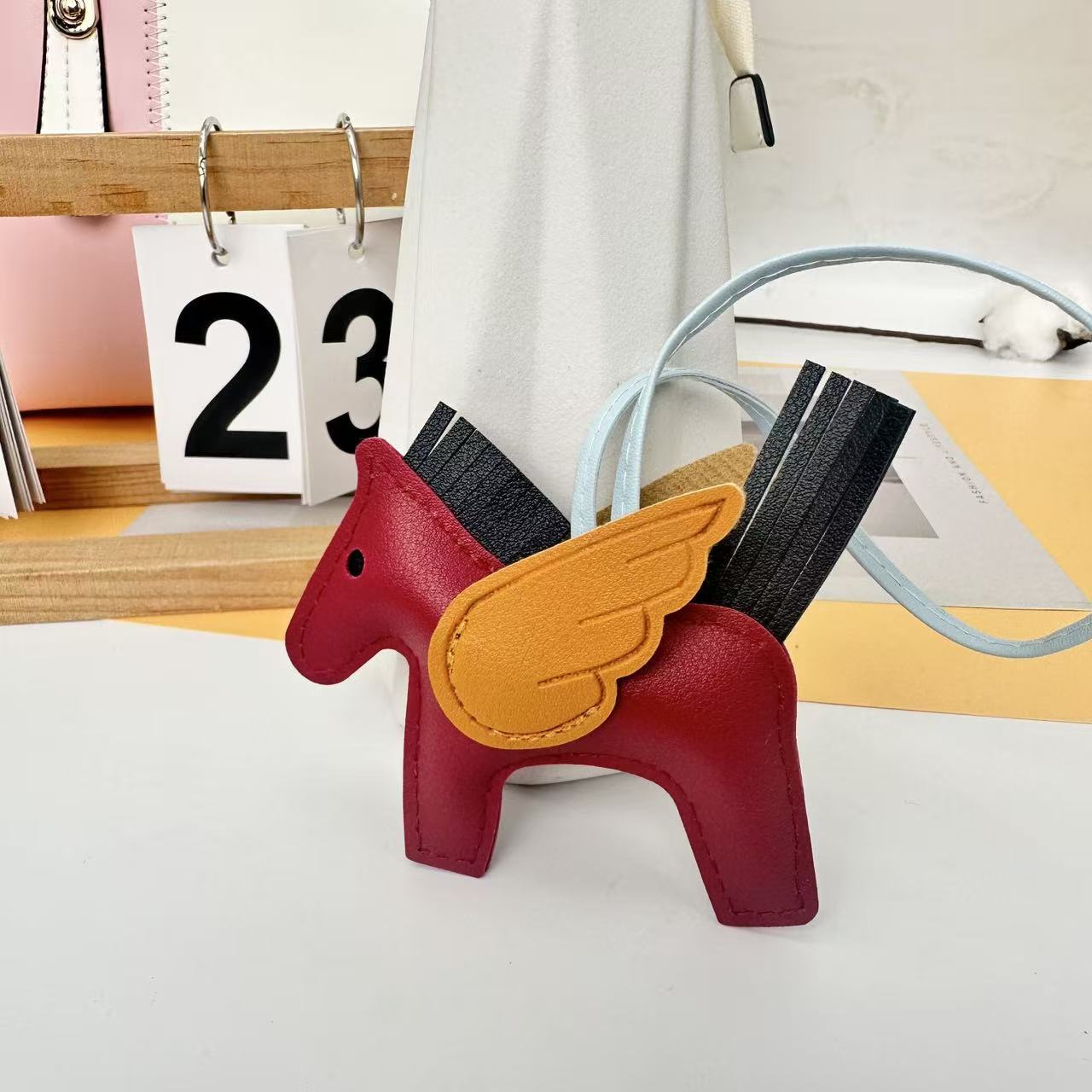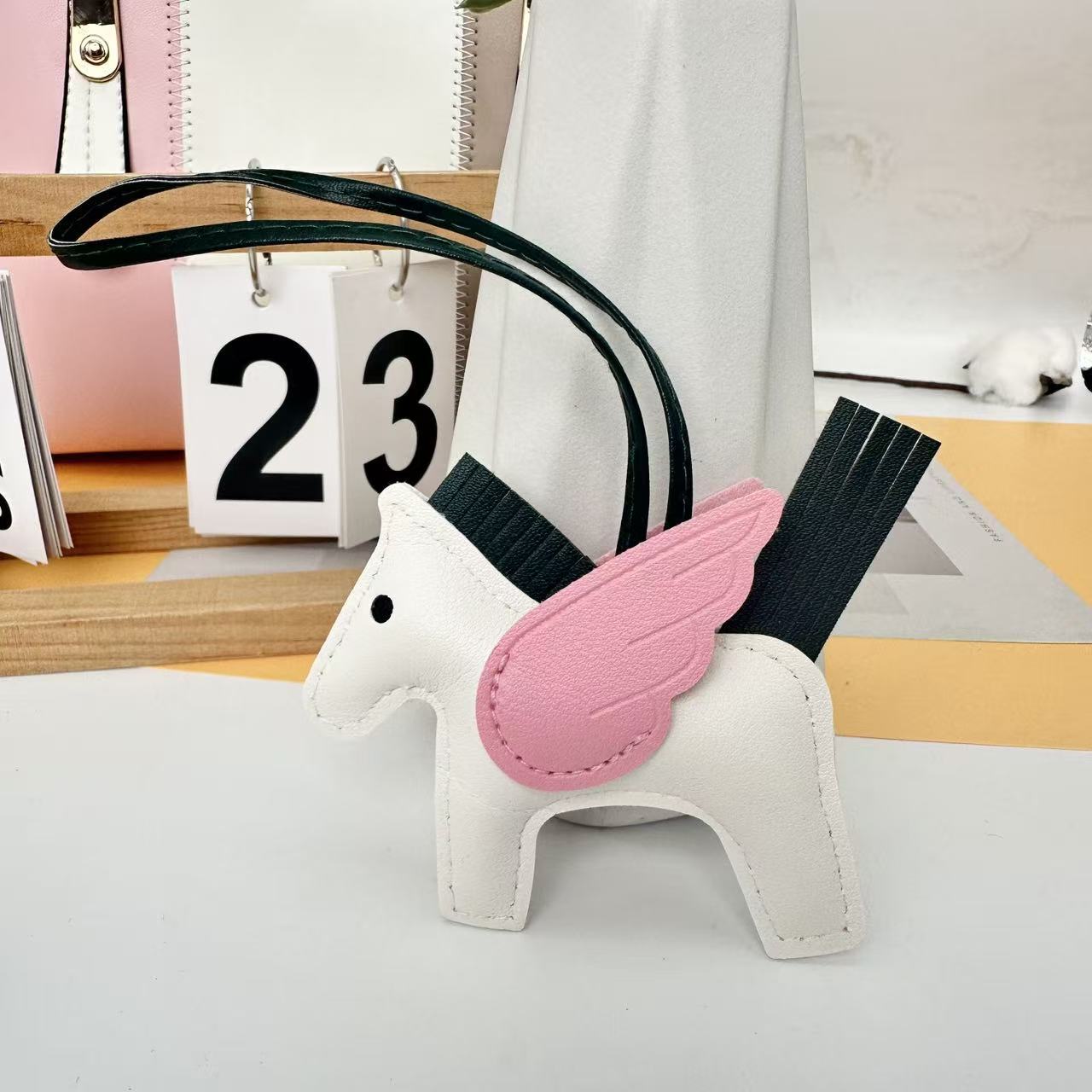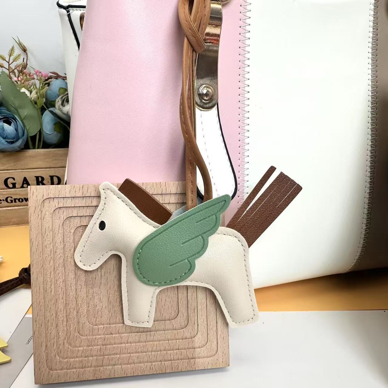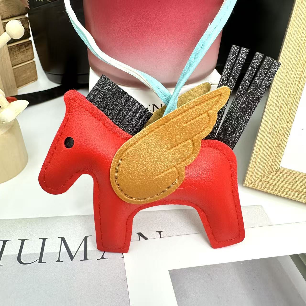 厂家直销跨境热销小马挂件PU皮革包包天使小飞马钥匙扣挂饰挂件
