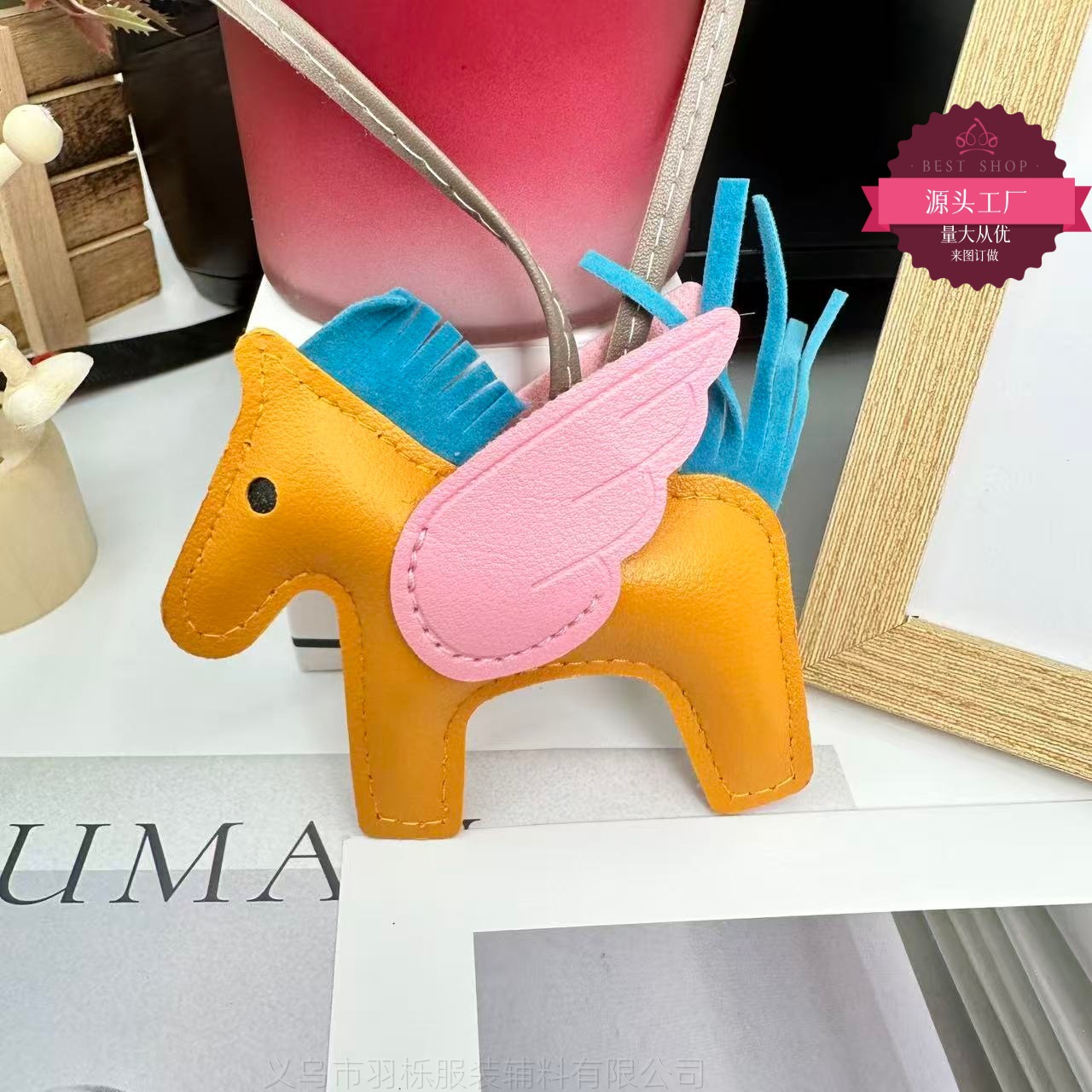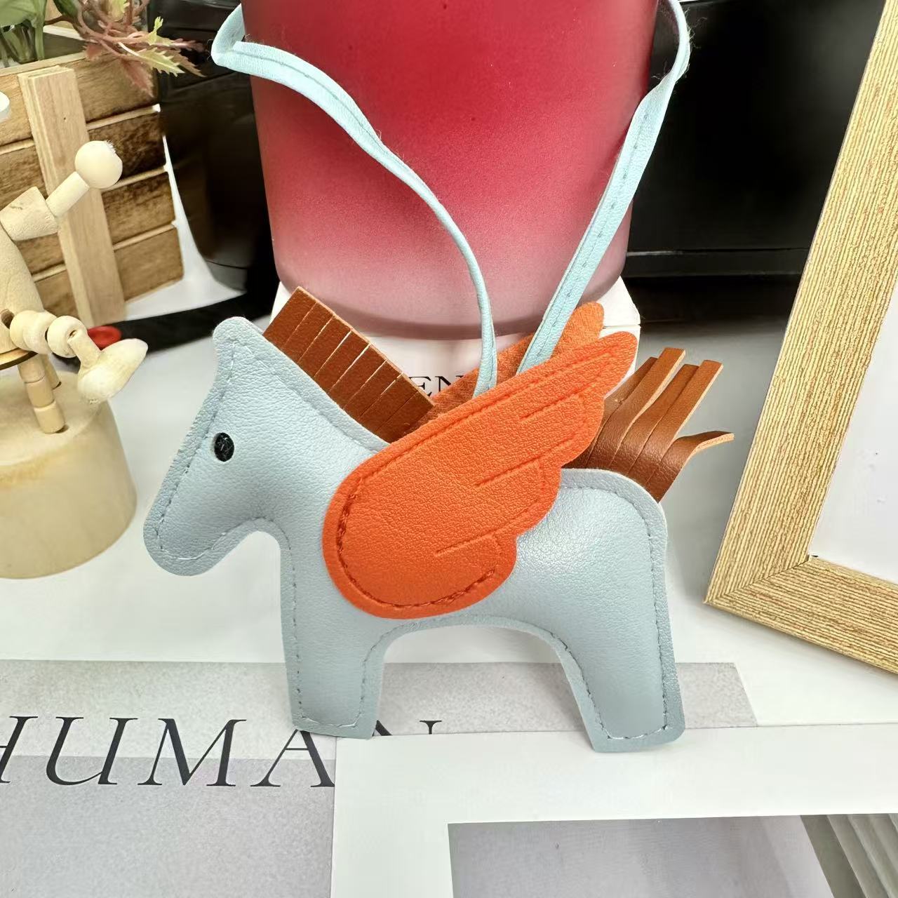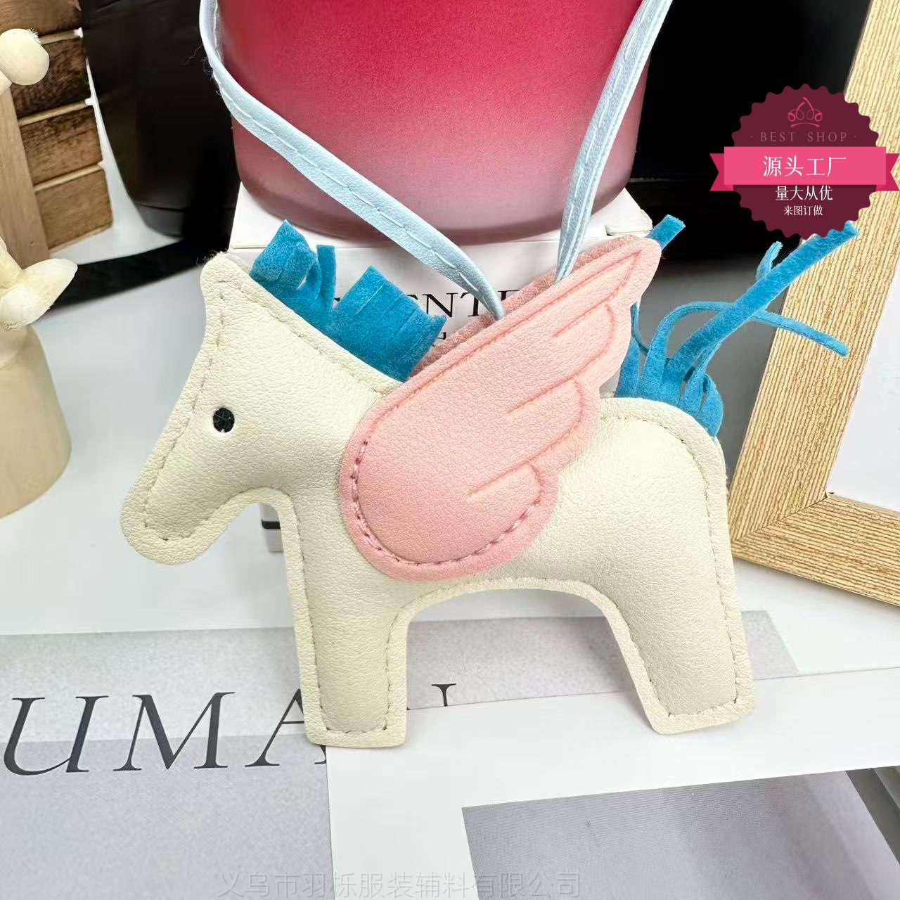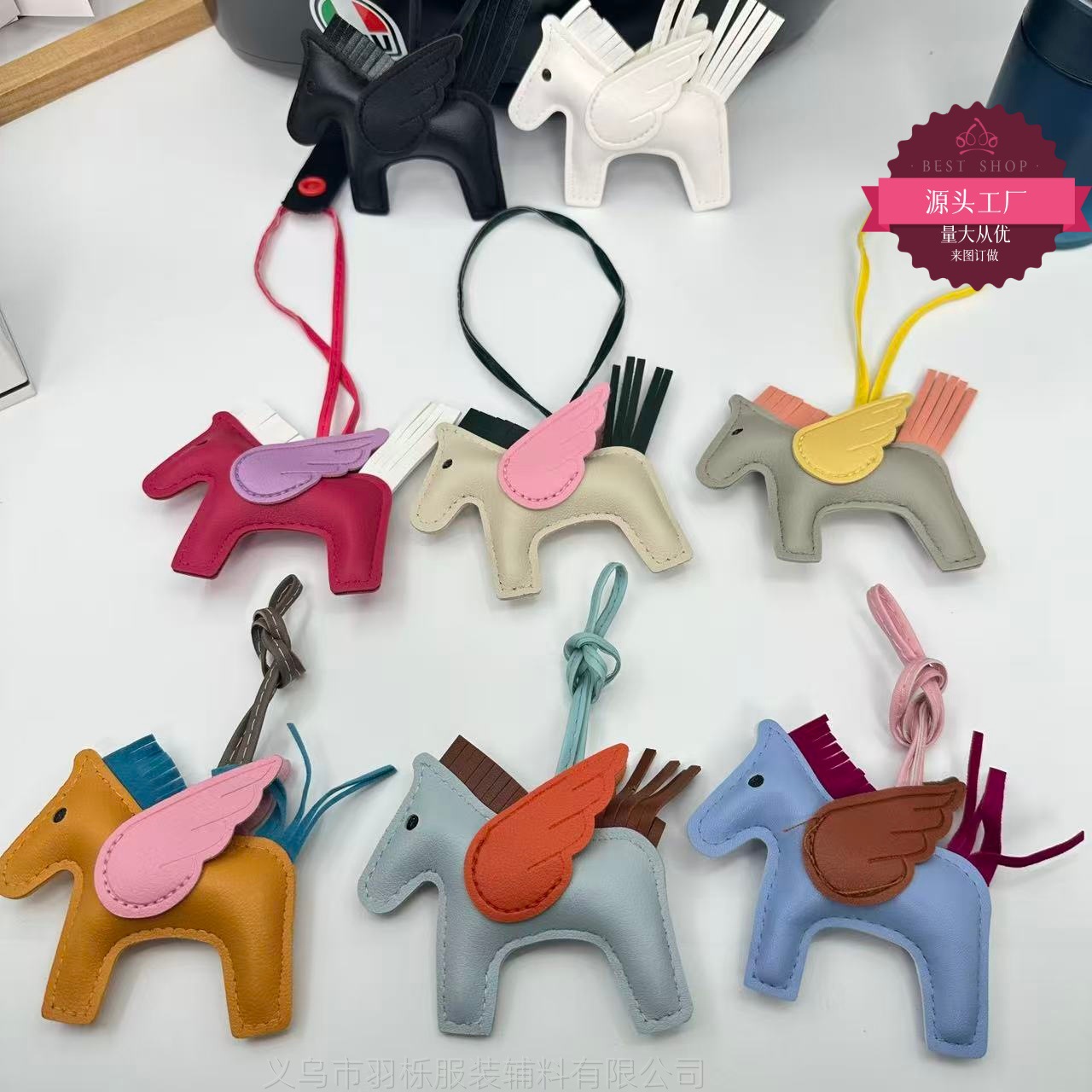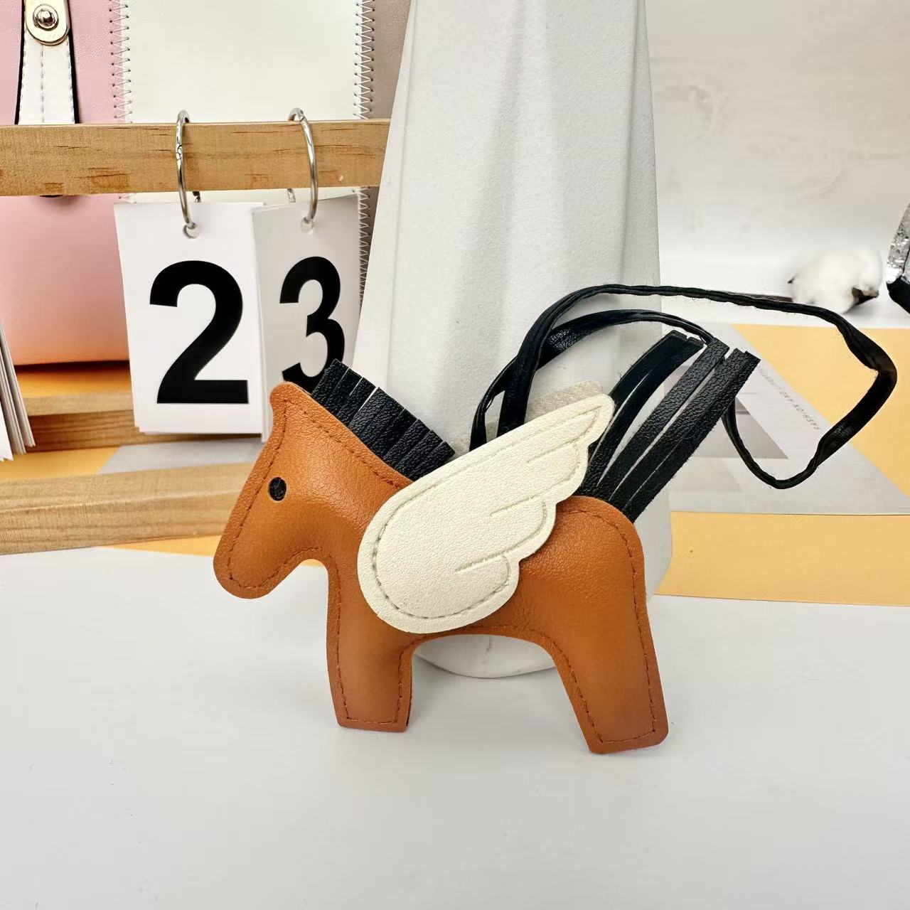 厂家直销跨境热销小马挂件PU皮革包包天使小飞马钥匙扣挂饰挂件