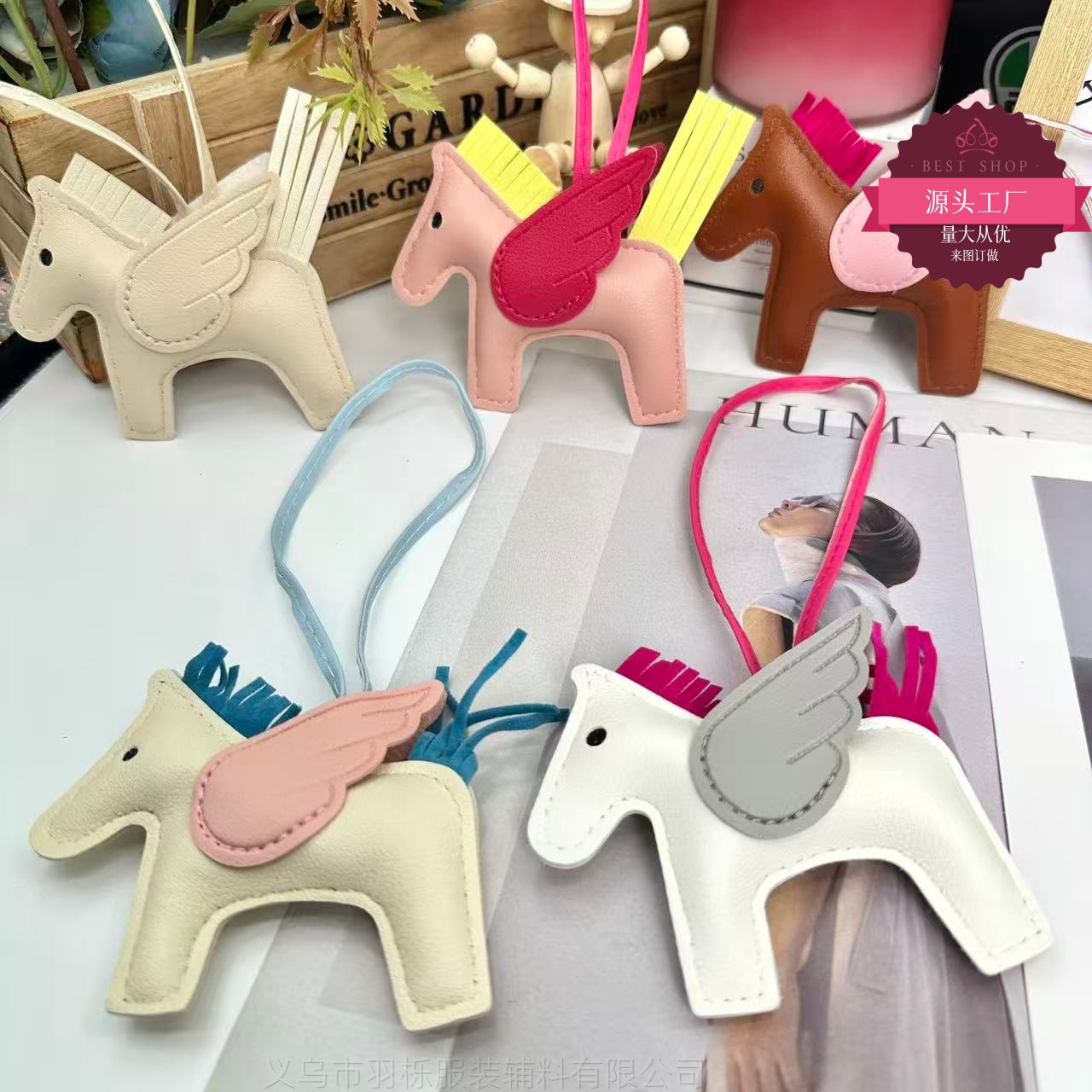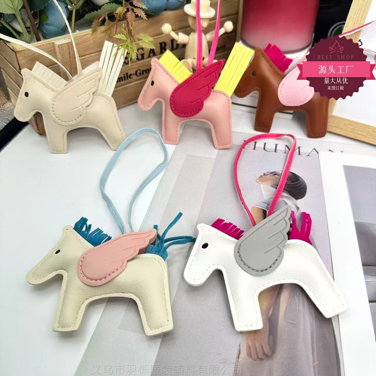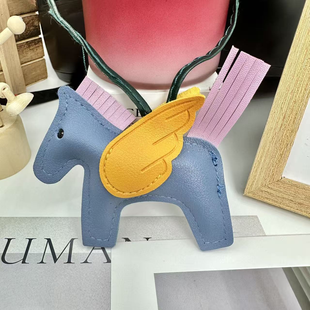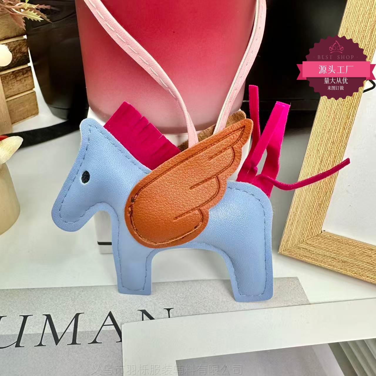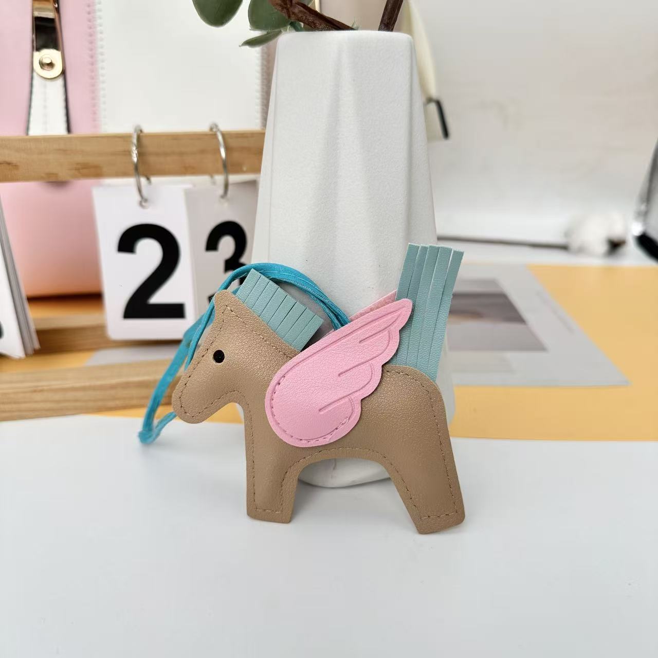 厂家直销跨境热销小马挂件PU皮革包包天使小飞马钥匙扣挂饰挂件