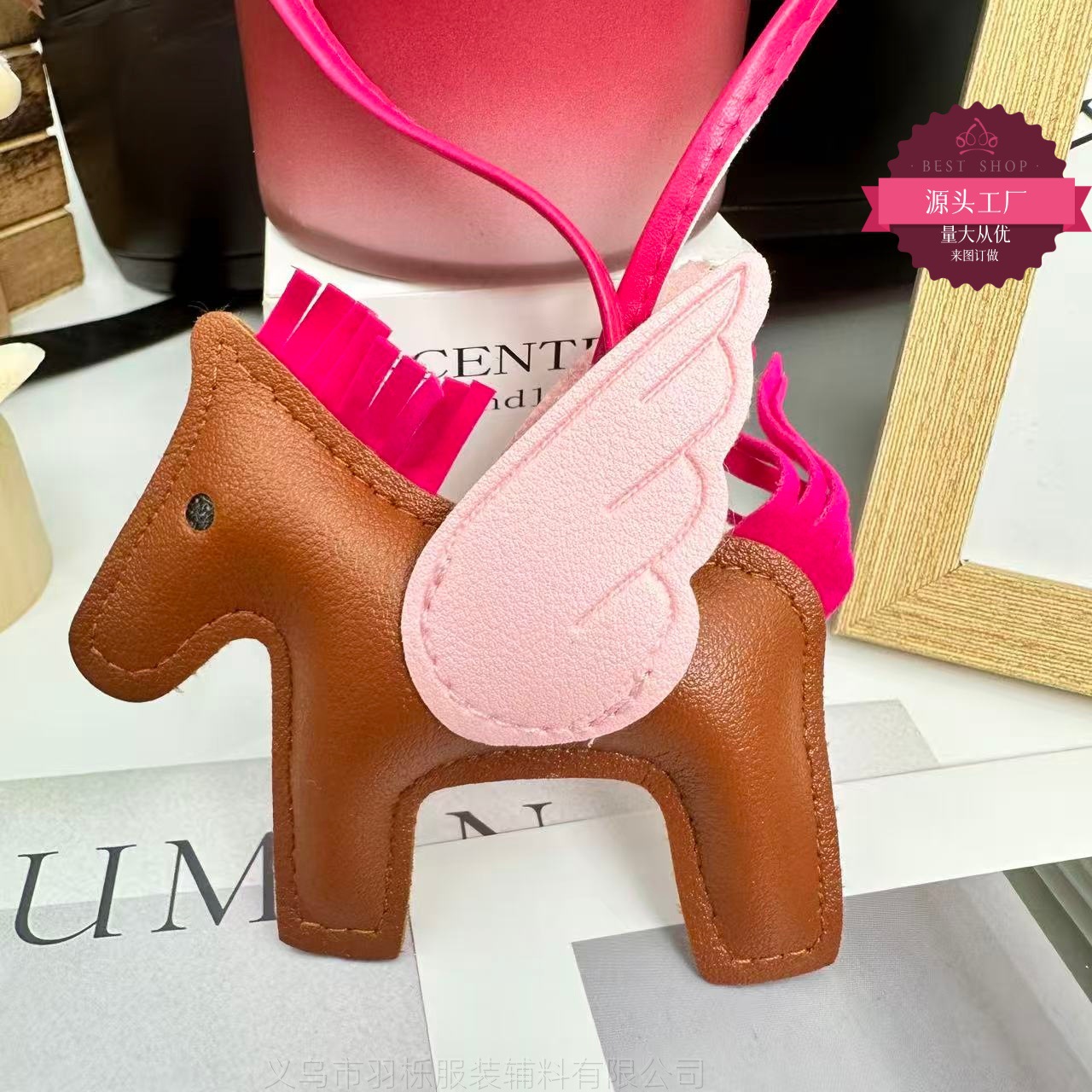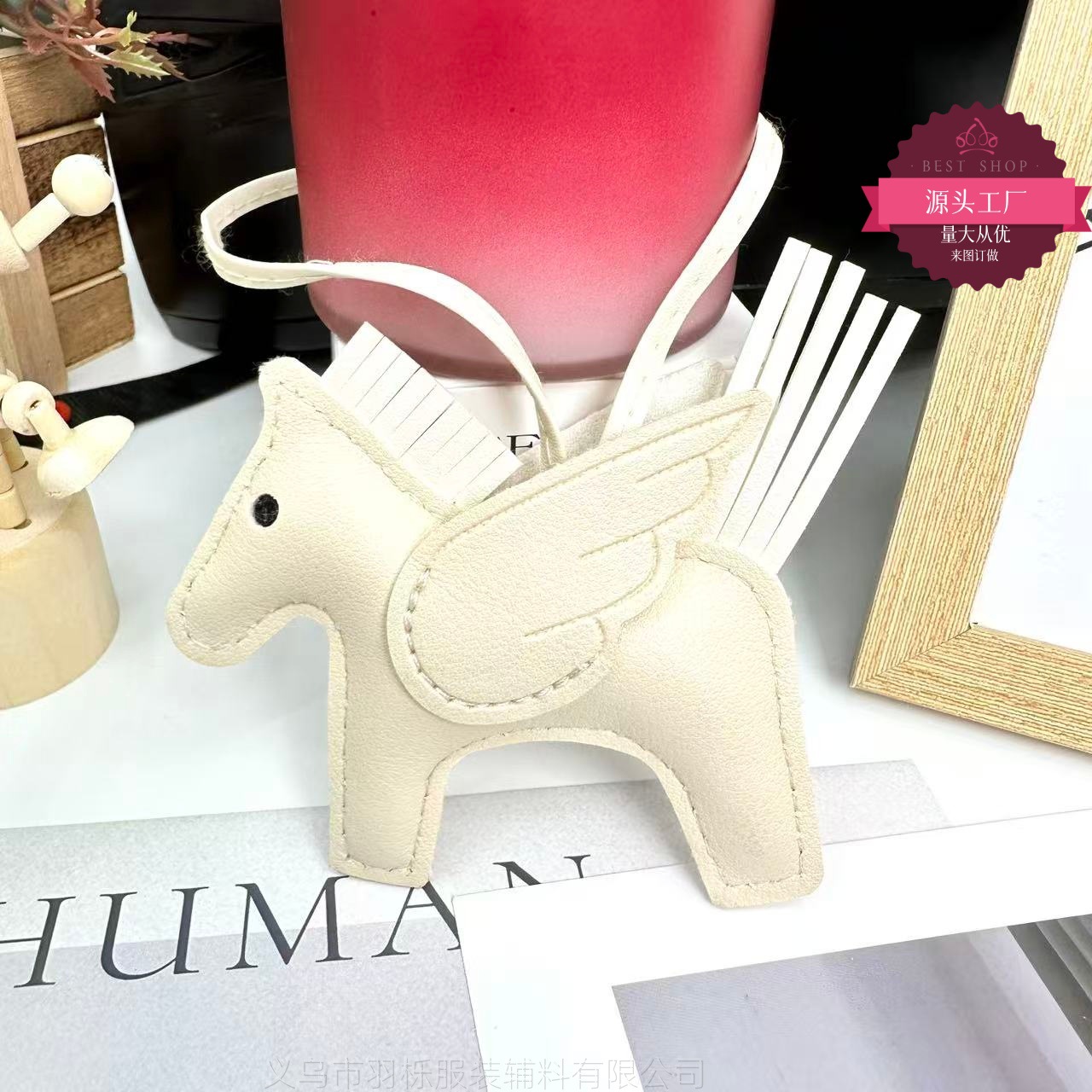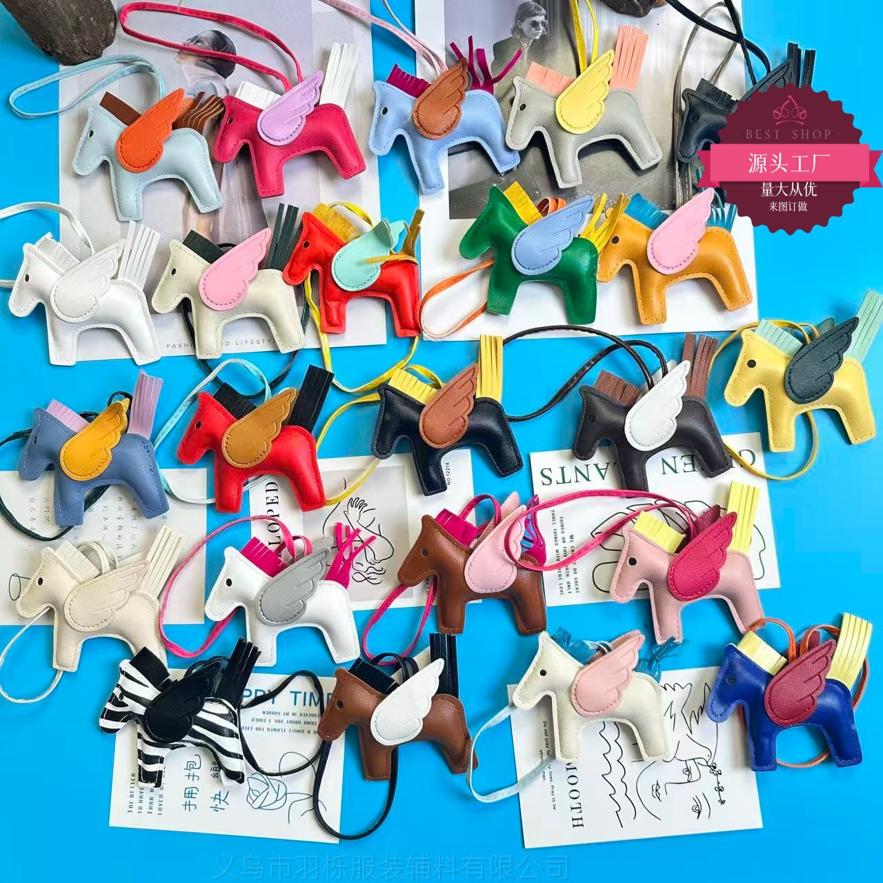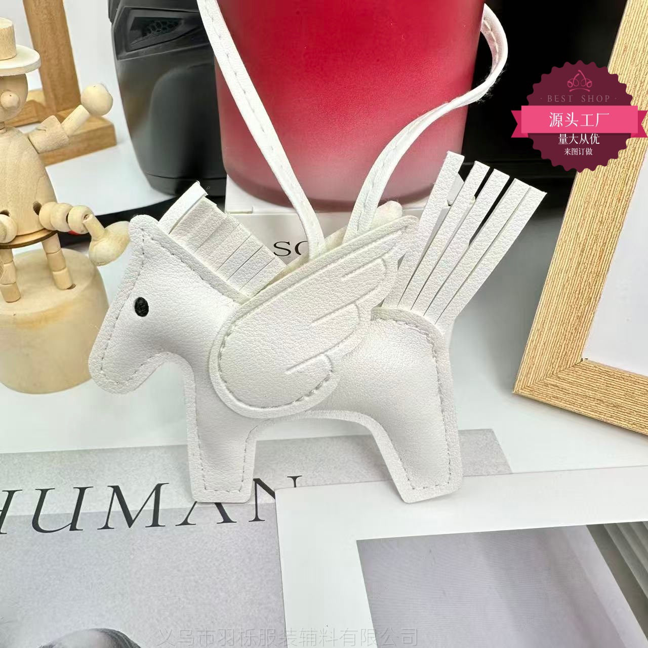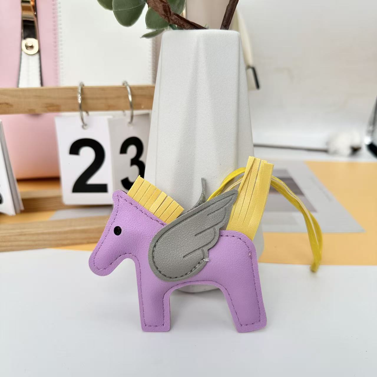 厂家直销跨境热销小马挂件PU皮革包包天使小飞马钥匙扣挂饰挂件