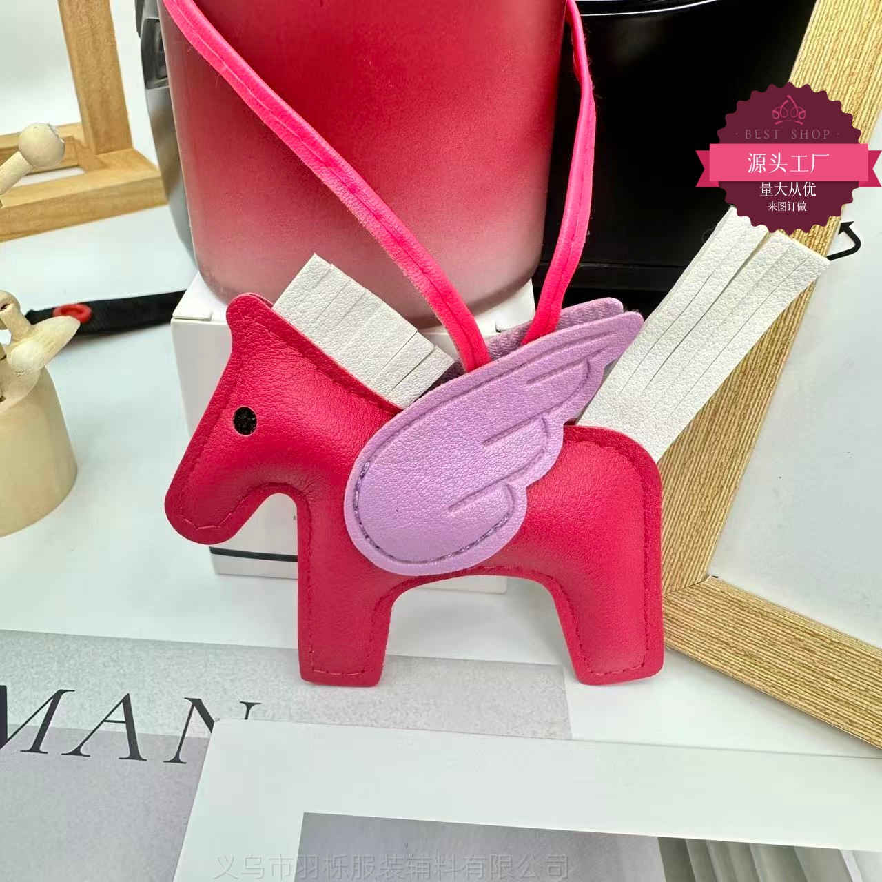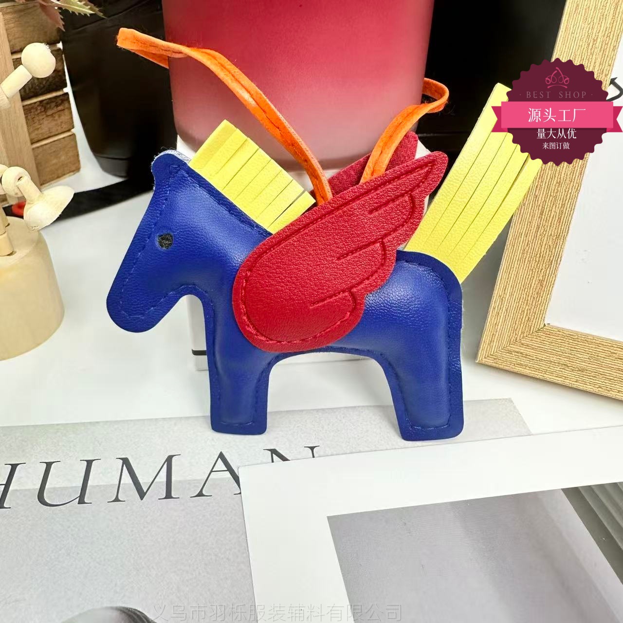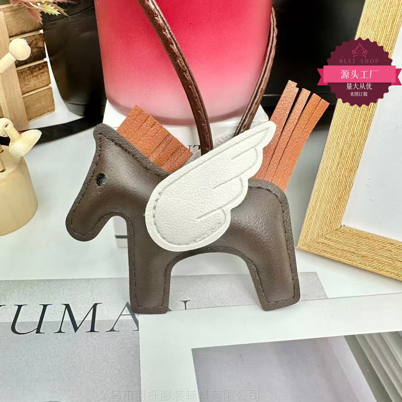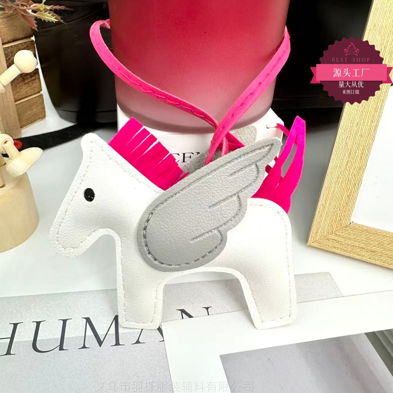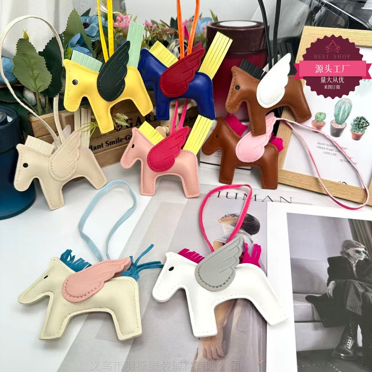 厂家直销跨境热销小马挂件PU皮革包包天使小飞马钥匙扣挂饰挂件