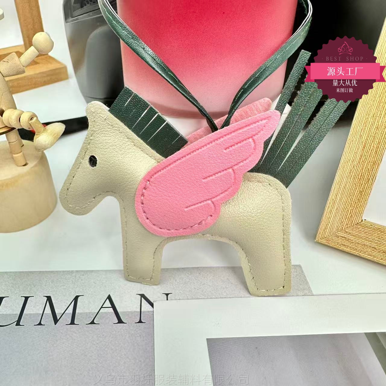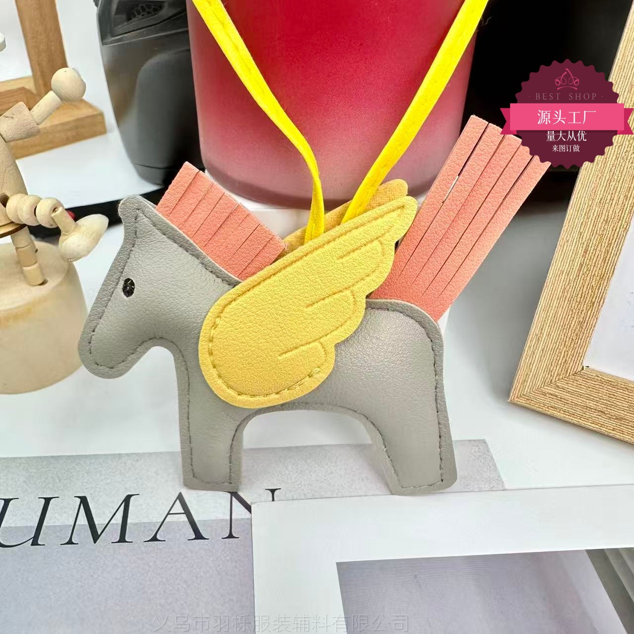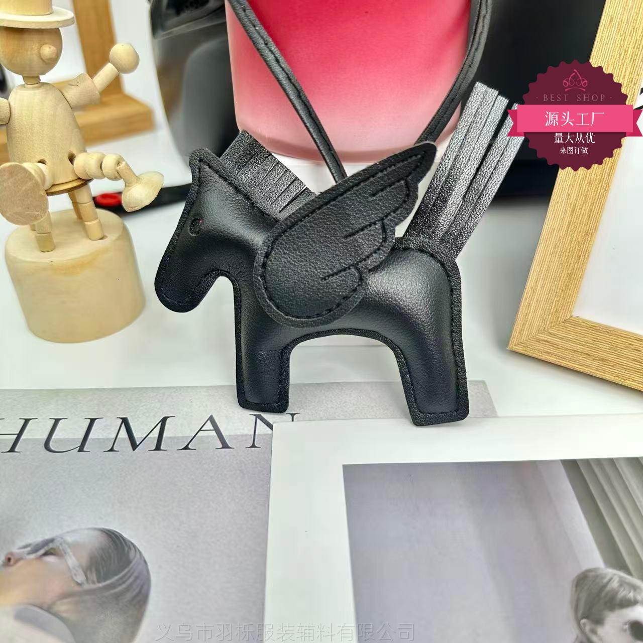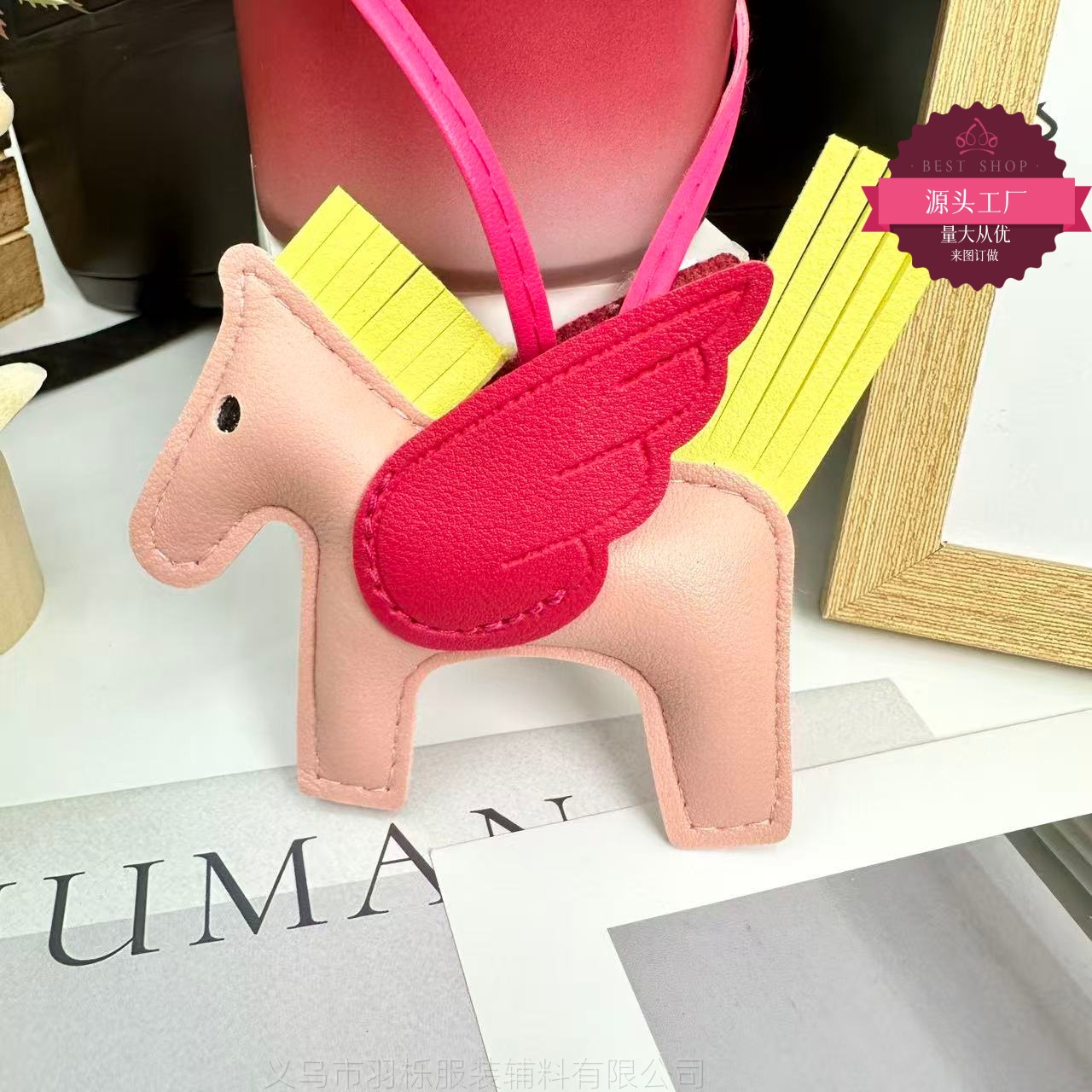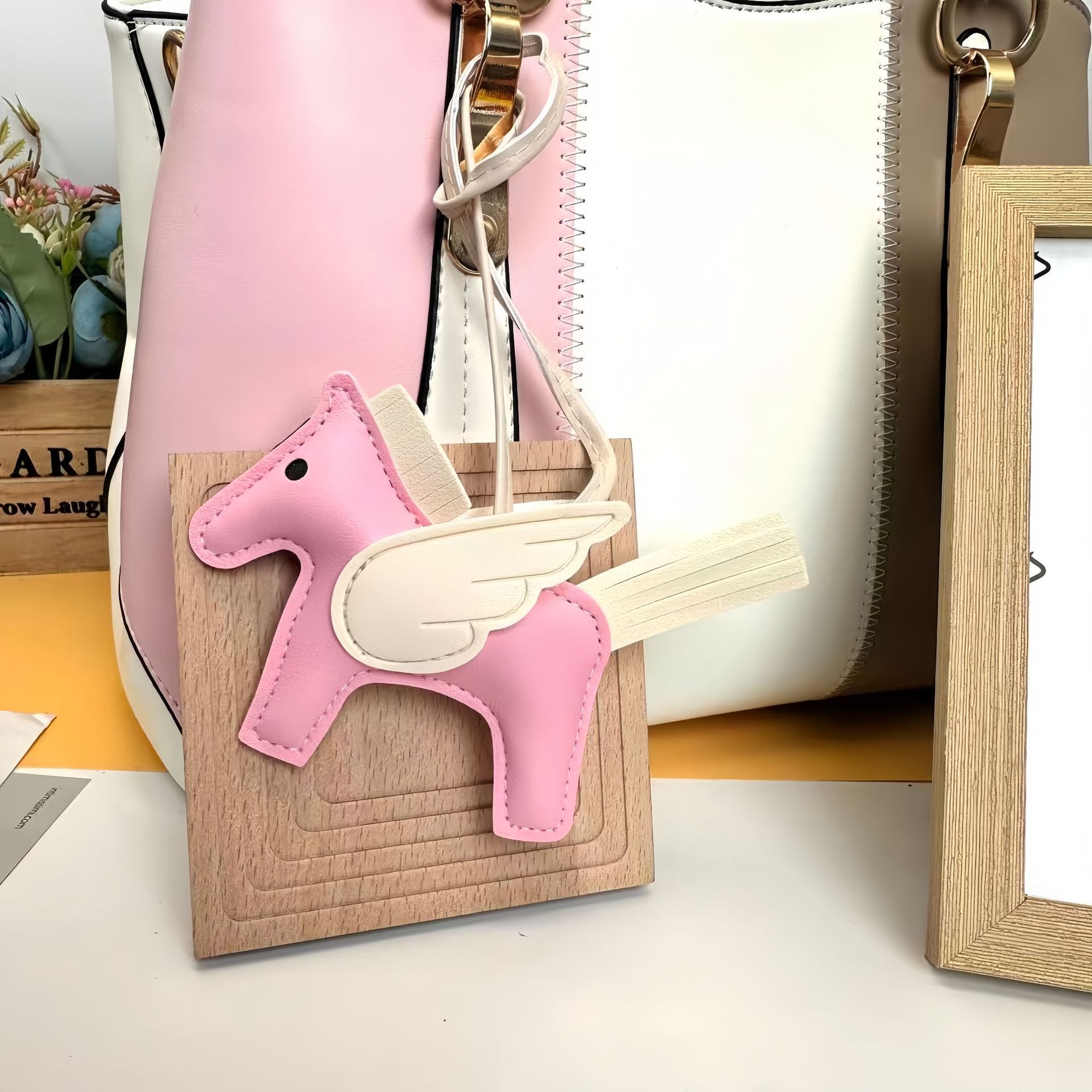 厂家直销跨境热销小马挂件PU皮革包包天使小飞马钥匙扣挂饰挂件