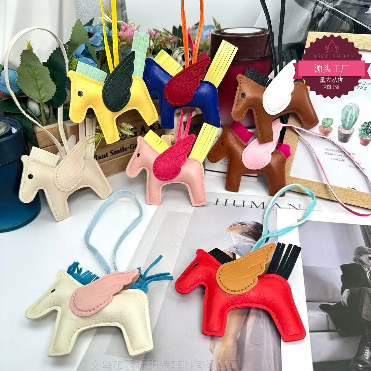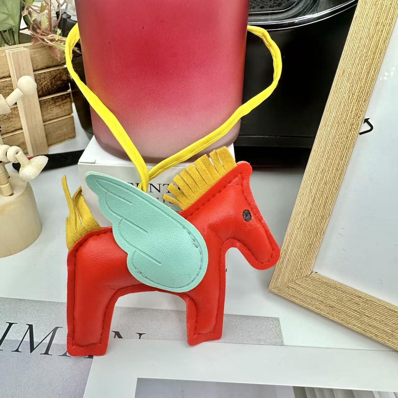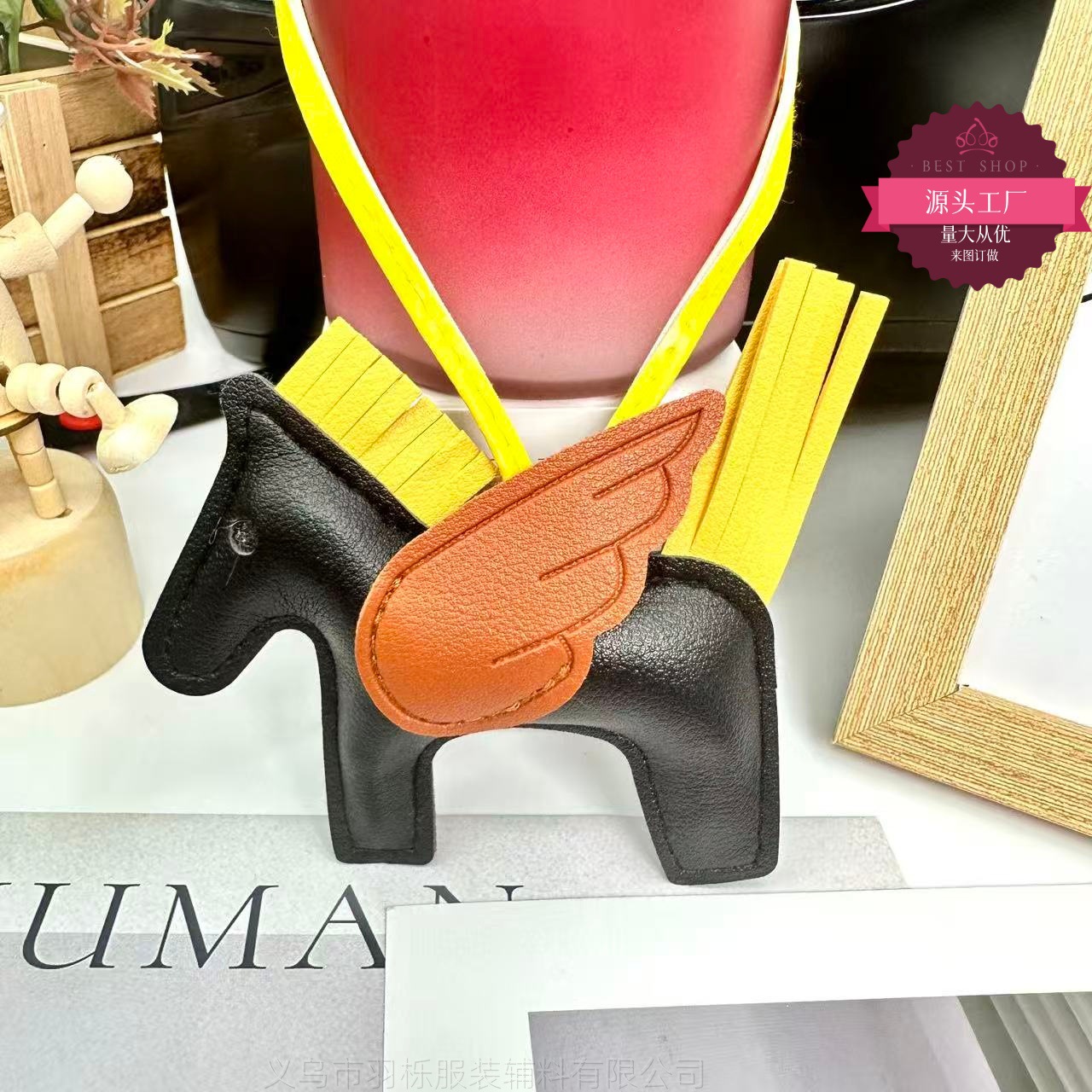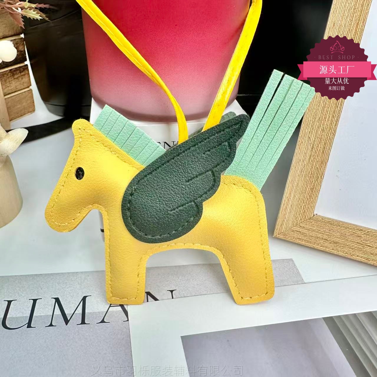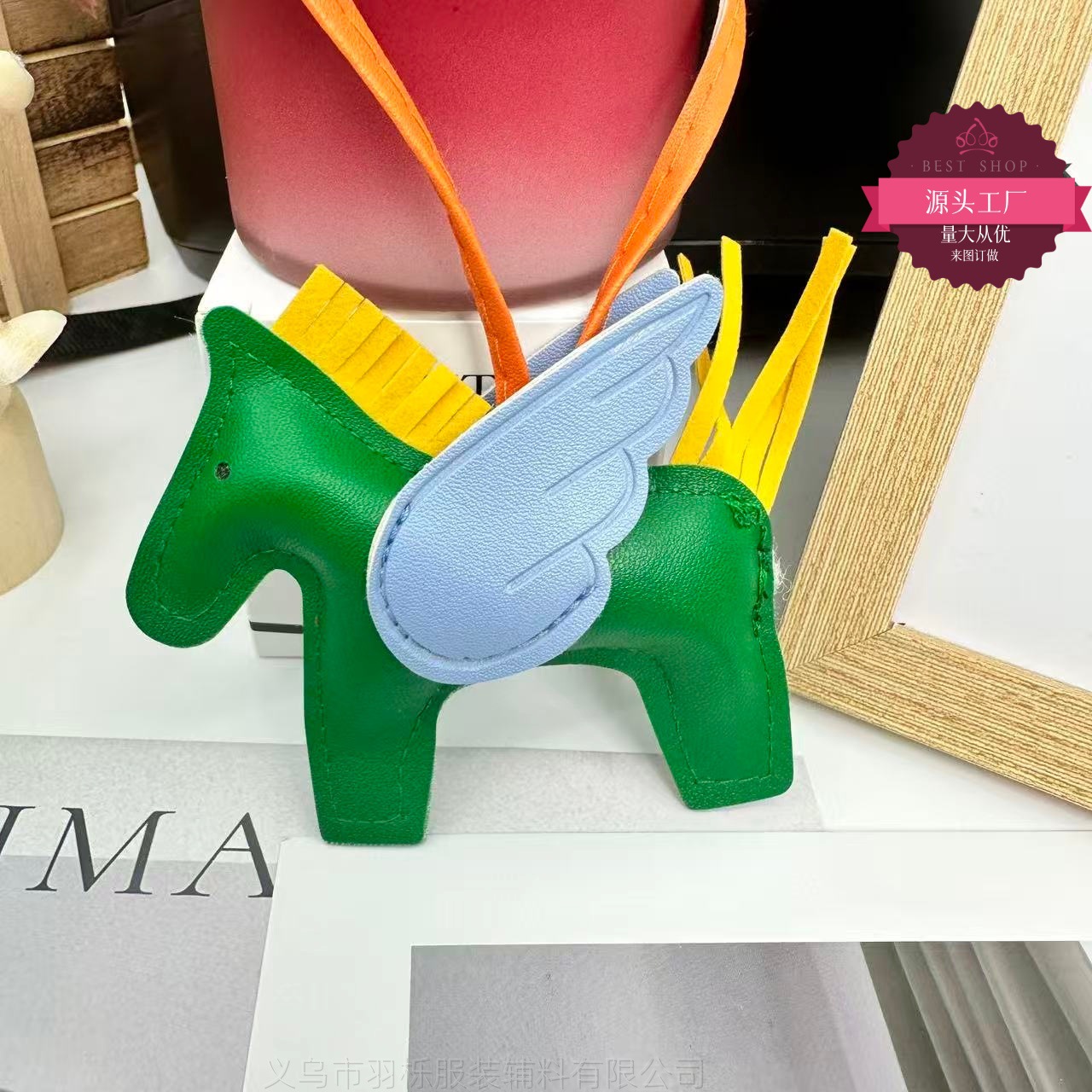 厂家直销跨境热销小马挂件PU皮革包包天使小飞马钥匙扣挂饰挂件