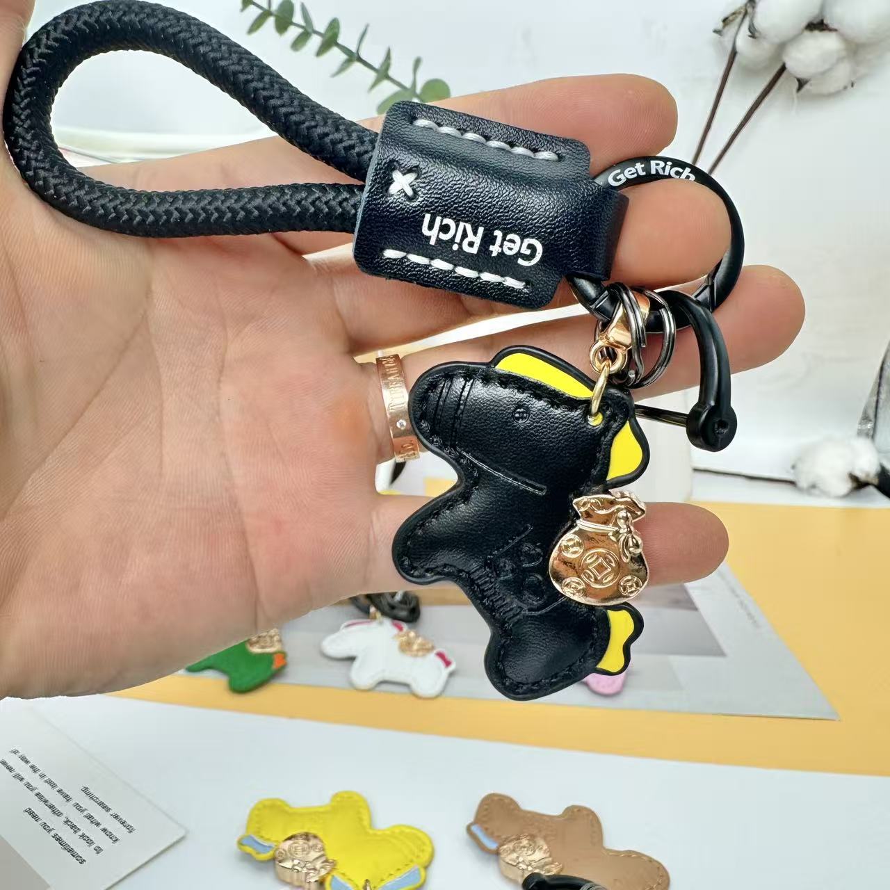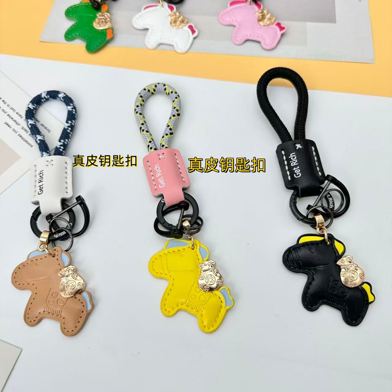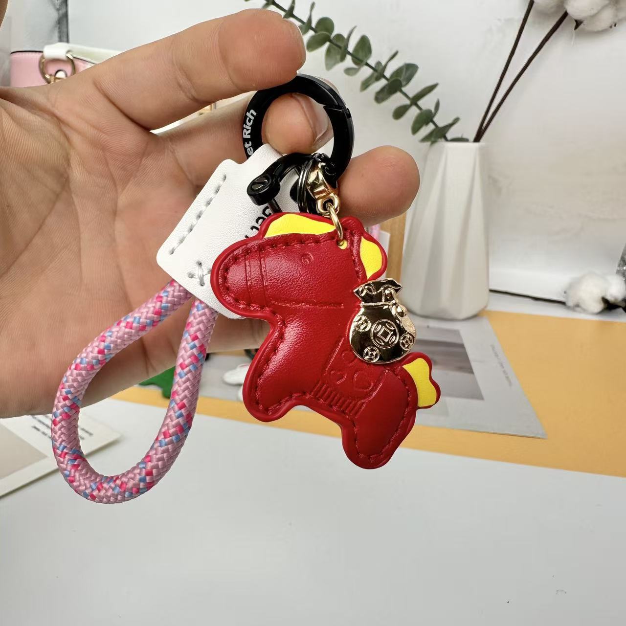 跨境手工编织绳小马钥匙扣马年卡通可爱创意马上有钱钥匙情侣挂件