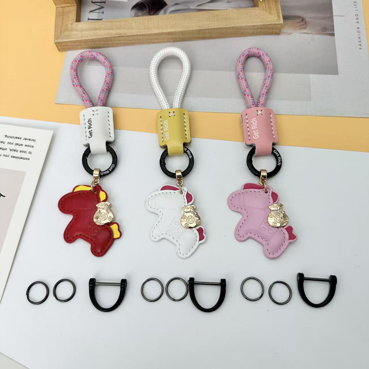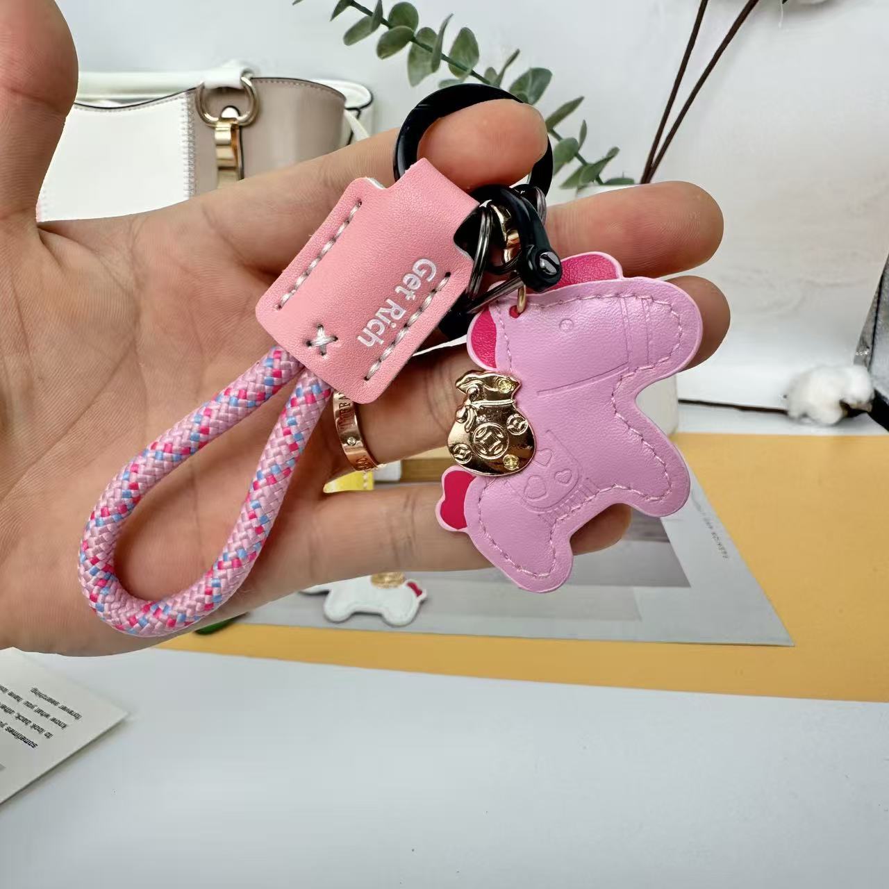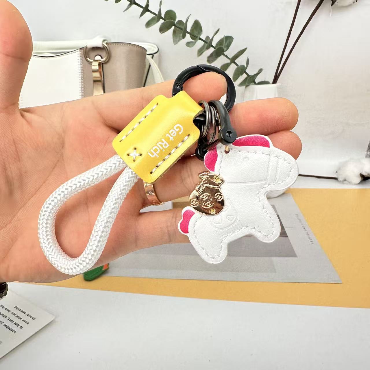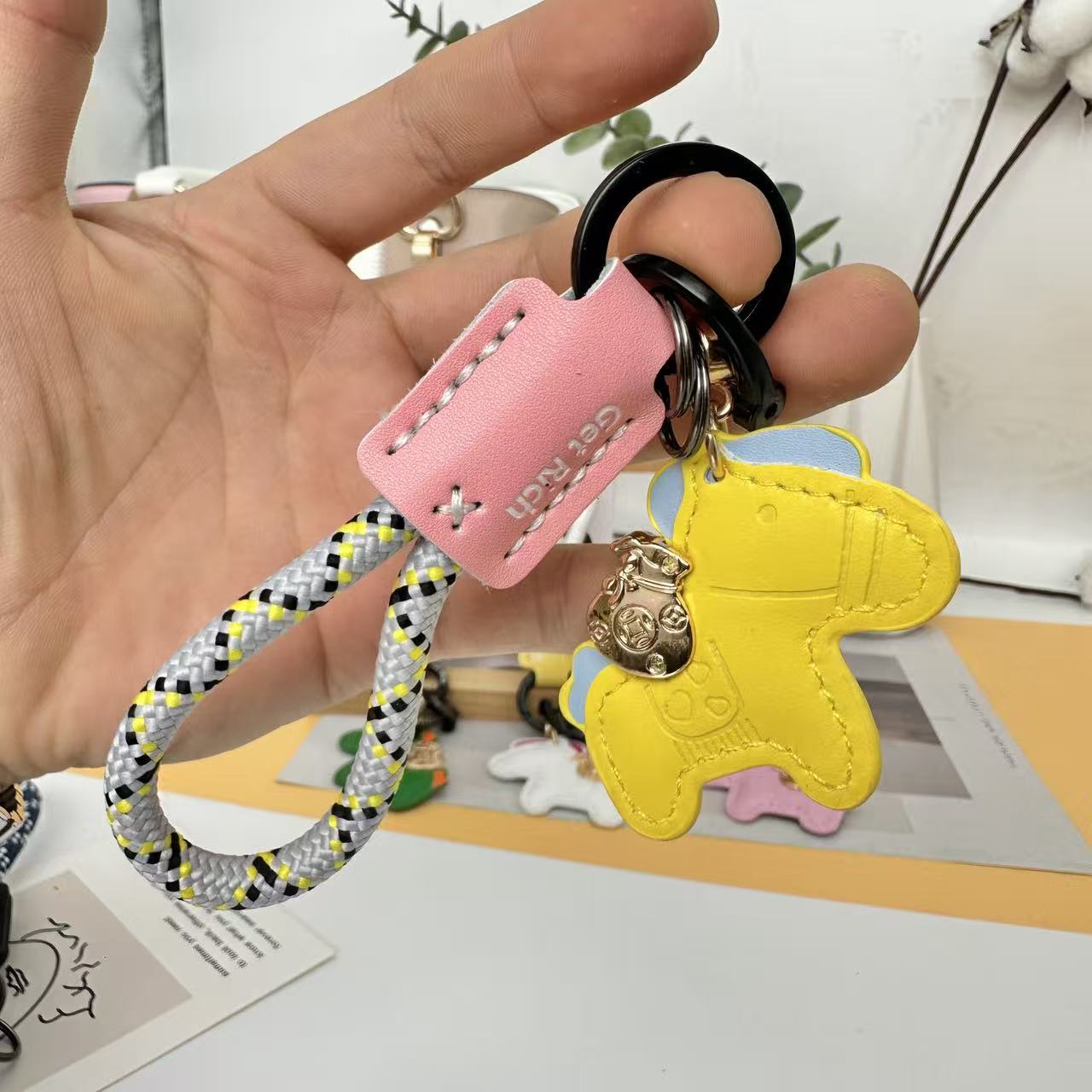 跨境手工编织绳小马钥匙扣马年卡通可爱创意马上有钱钥匙情侣挂件