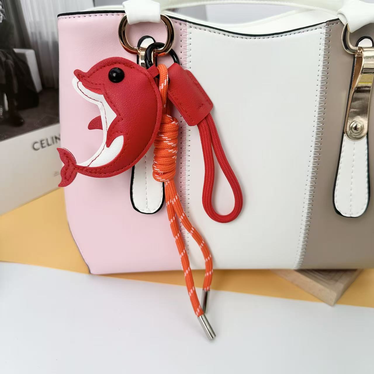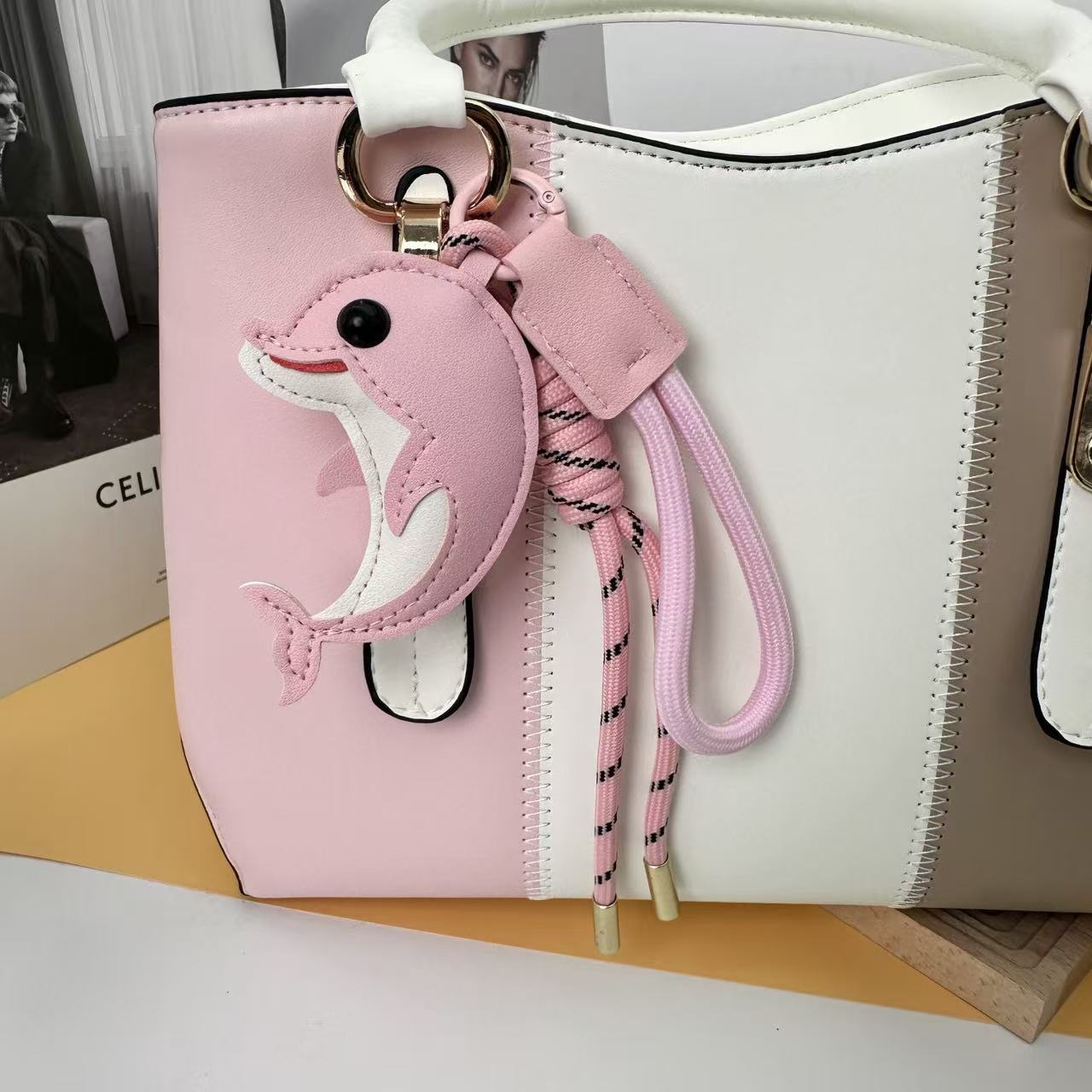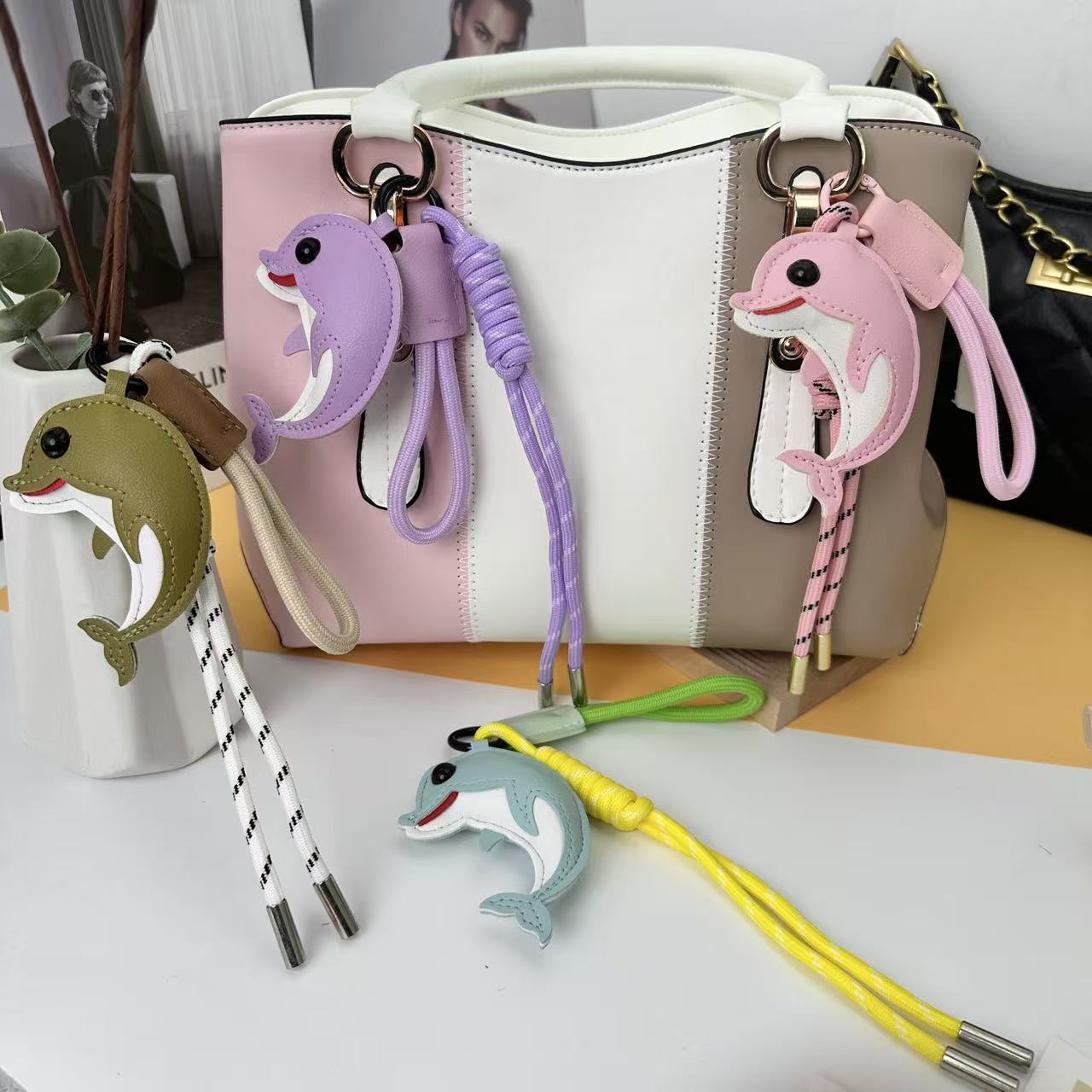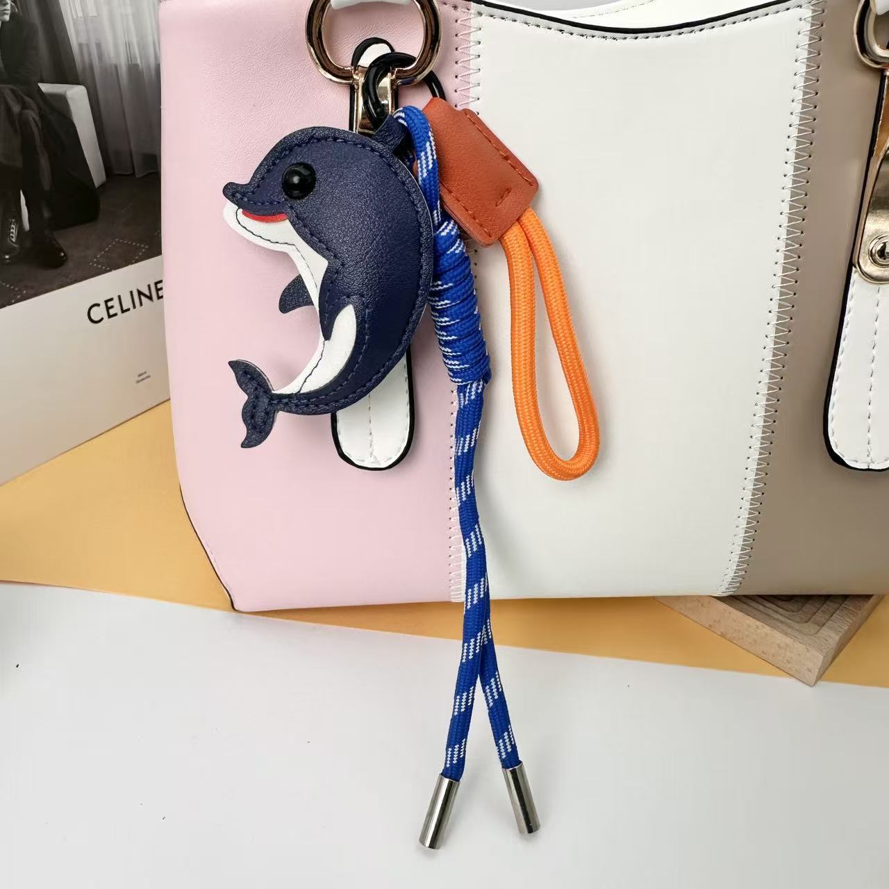 2026新款跨境创意皮革卡通DIY可爱海豚包包汽车钥匙扣小众挂件