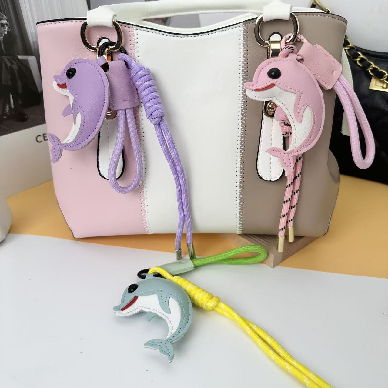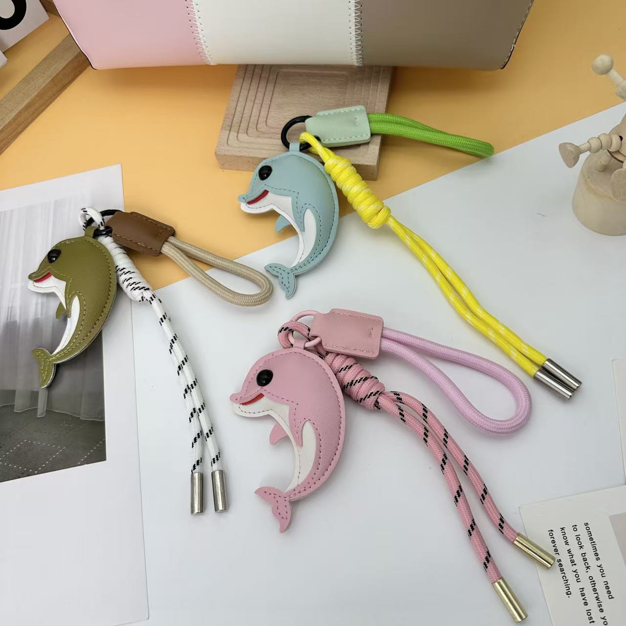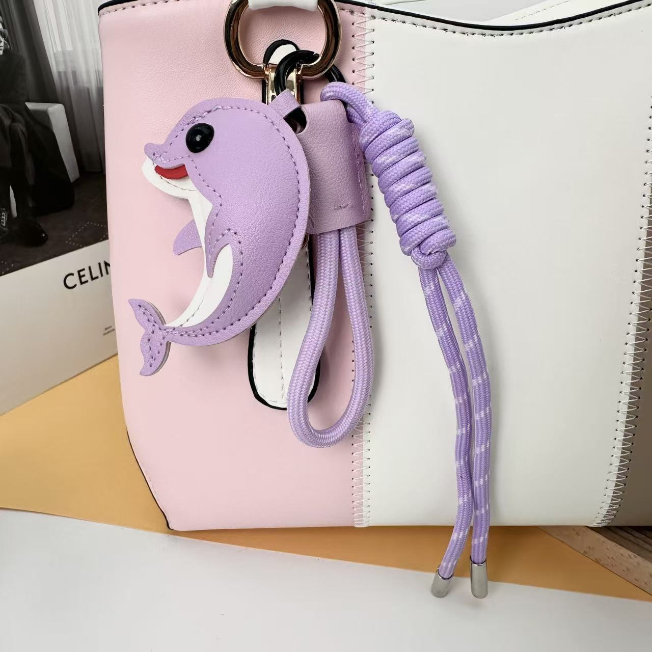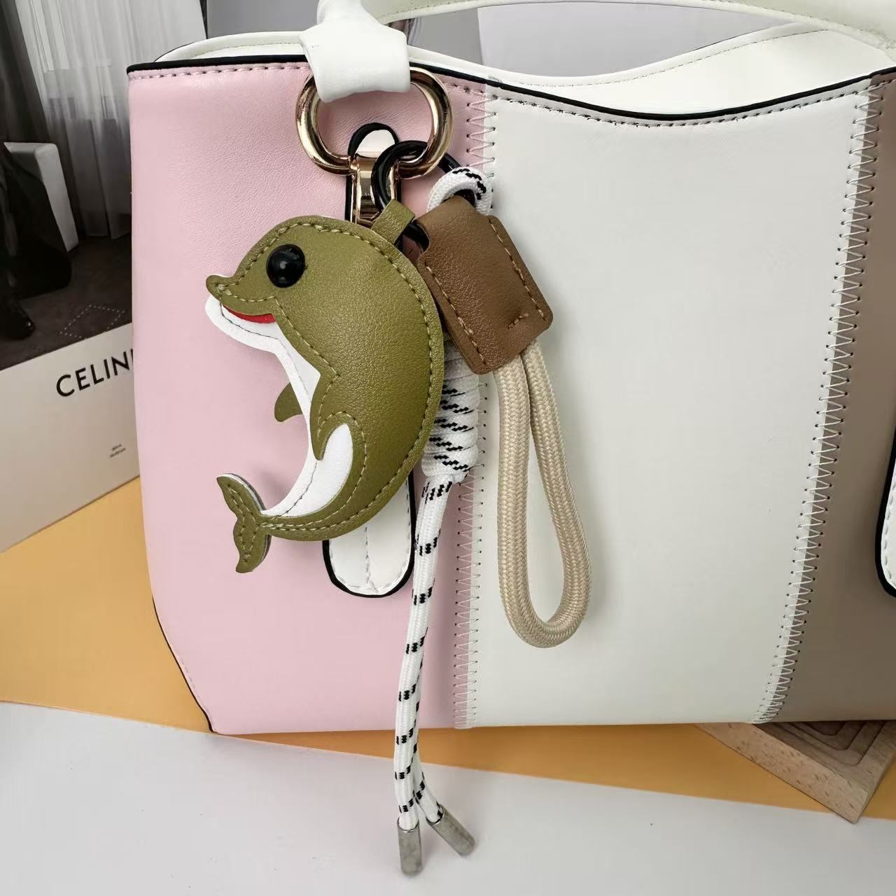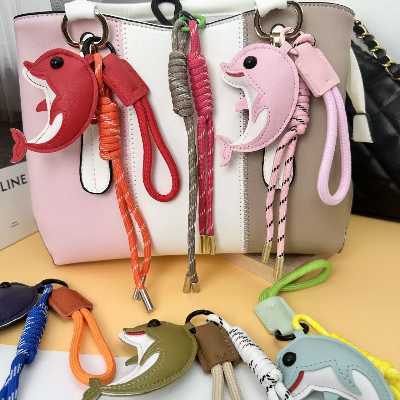 2026新款跨境创意皮革卡通DIY可爱海豚包包汽车钥匙扣小众挂件