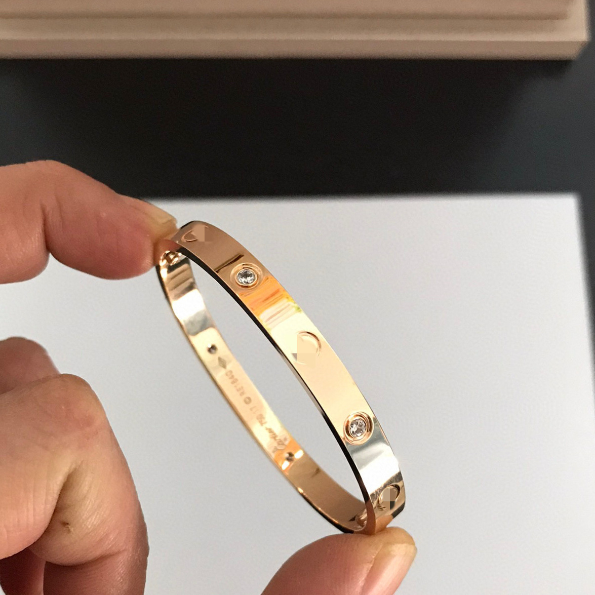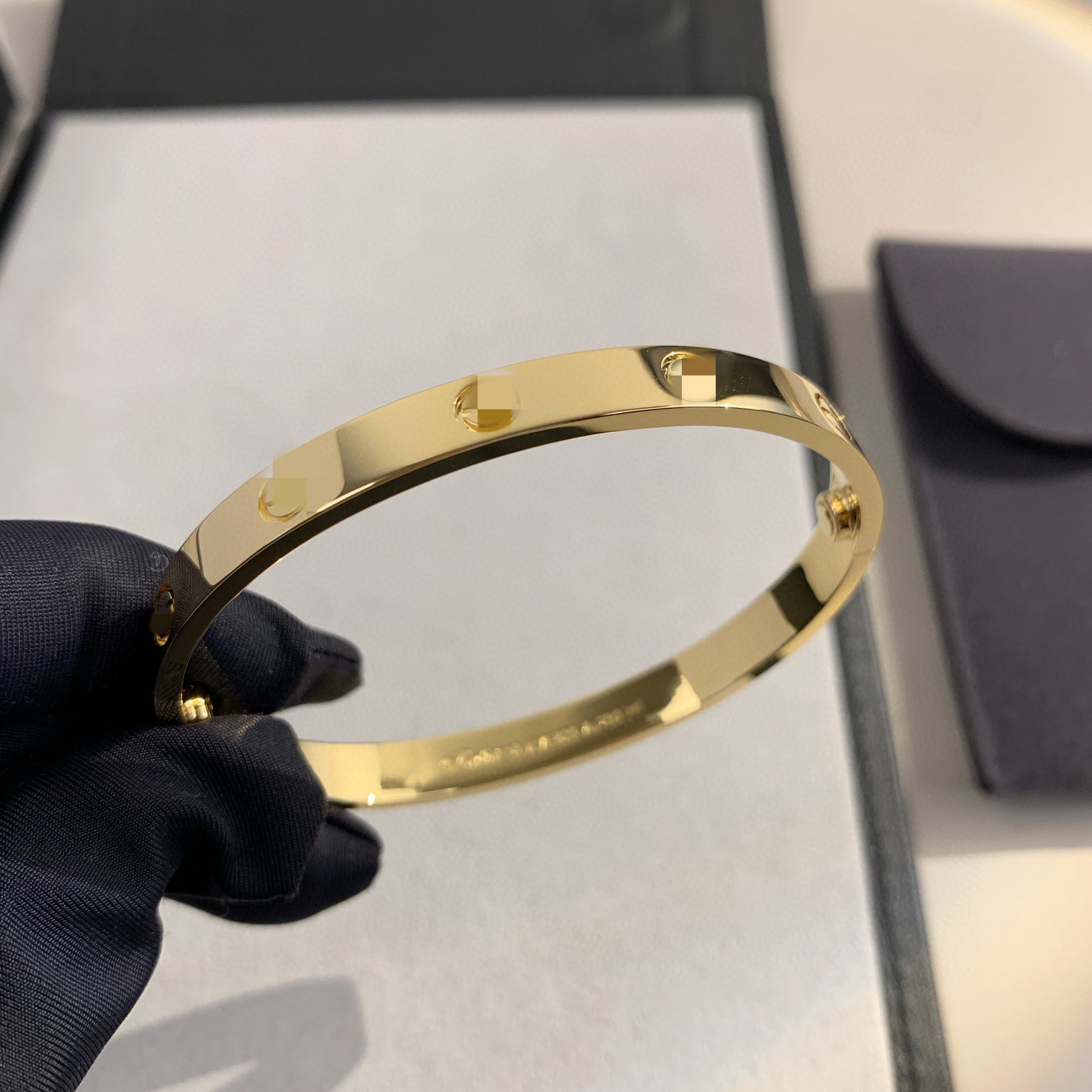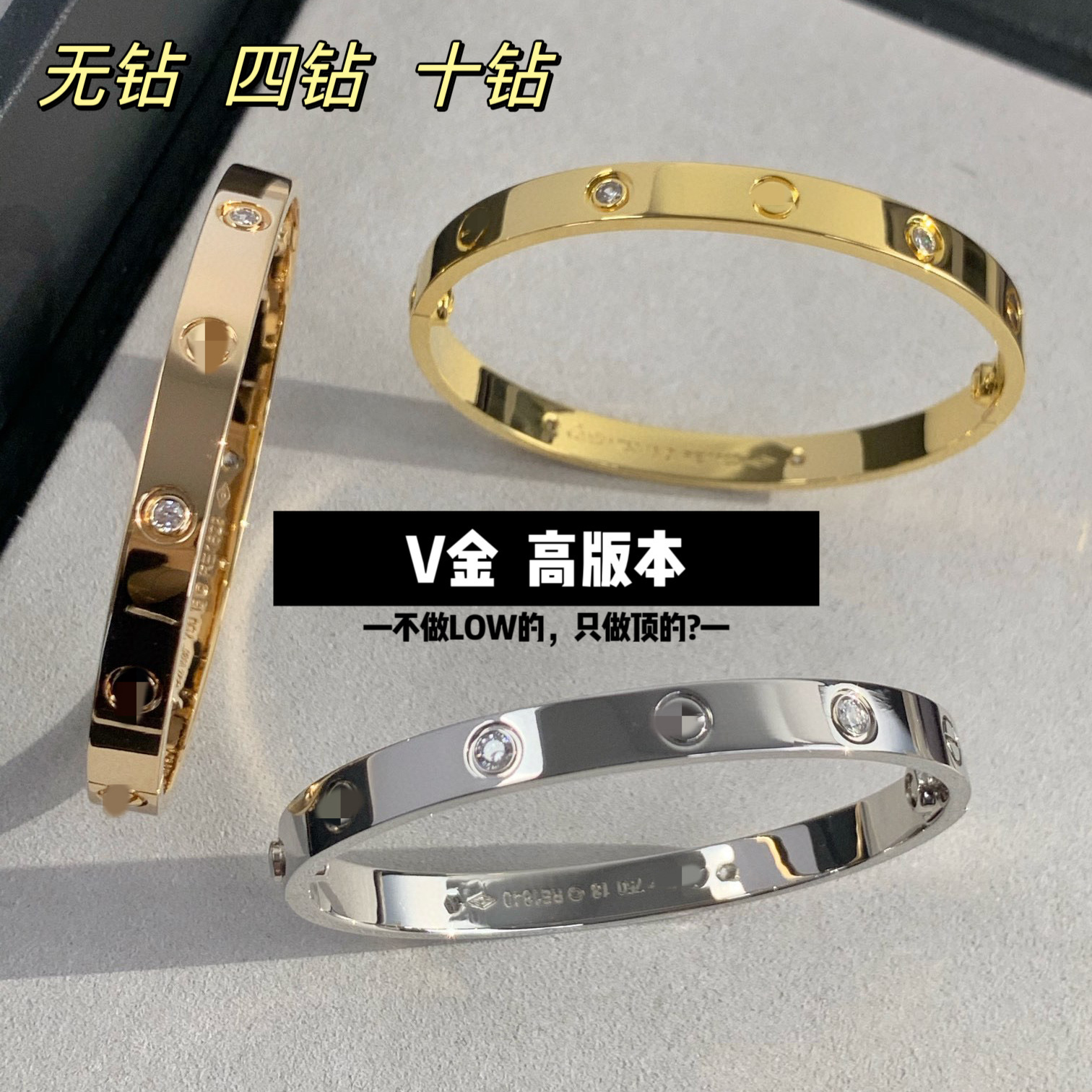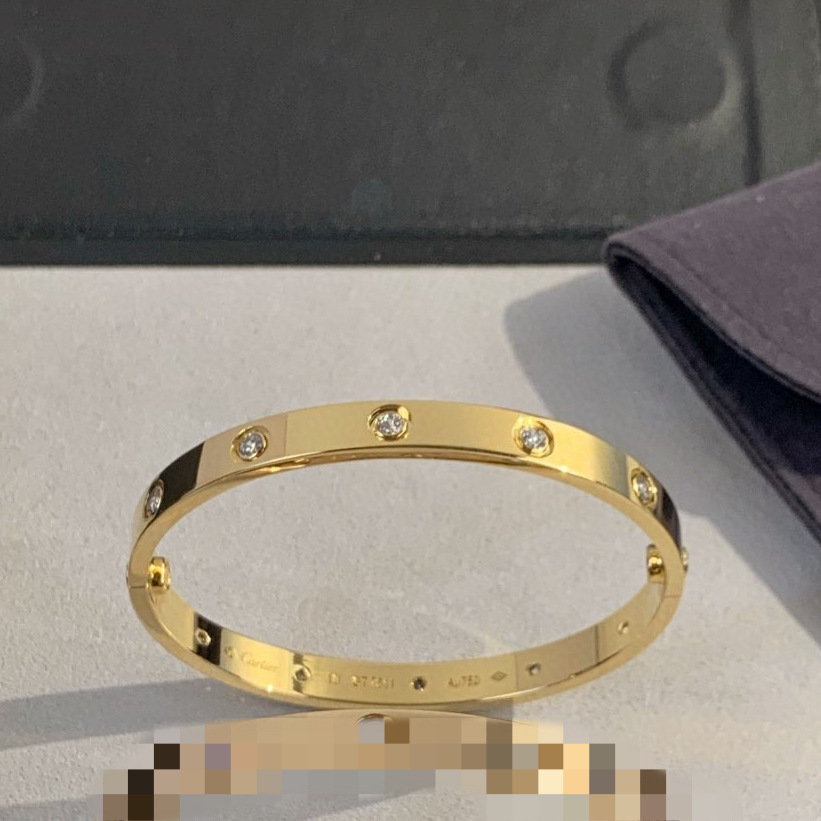 V金经典LOVE五代情侣手镯宽版四钻十钻厚镀18K玫瑰金轻奢轻奢风
