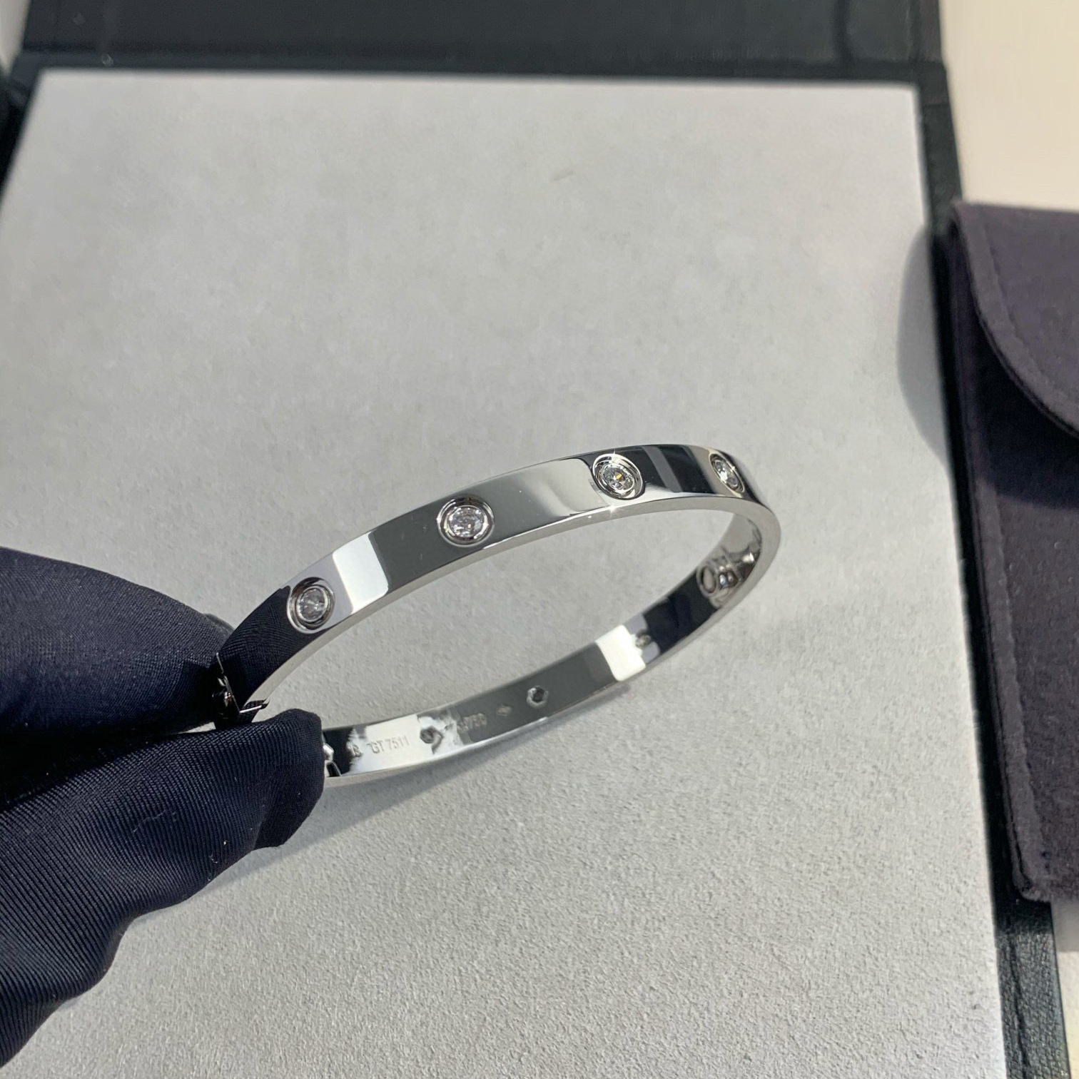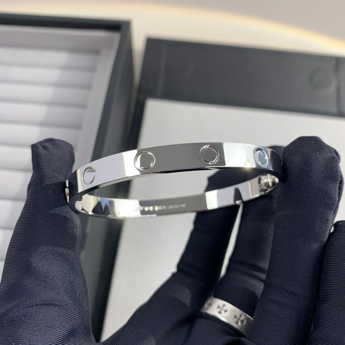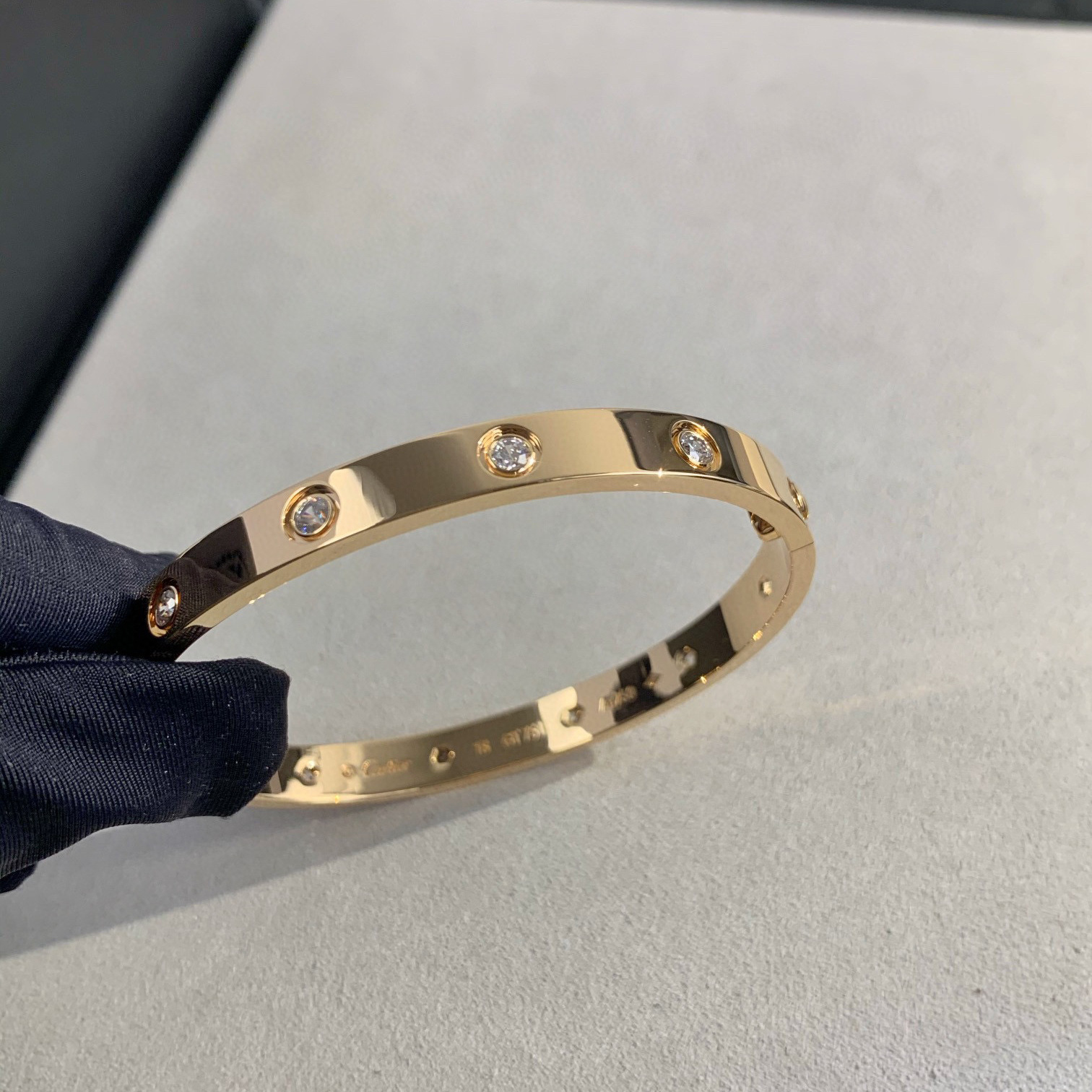 V金经典LOVE五代情侣手镯宽版四钻十钻厚镀18K玫瑰金轻奢轻奢风