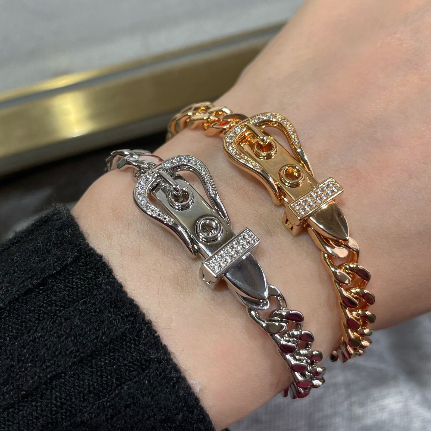 V金镀咪金 皮带款手链欧美冷淡风小众设计 时尚气质个性 厂家直销