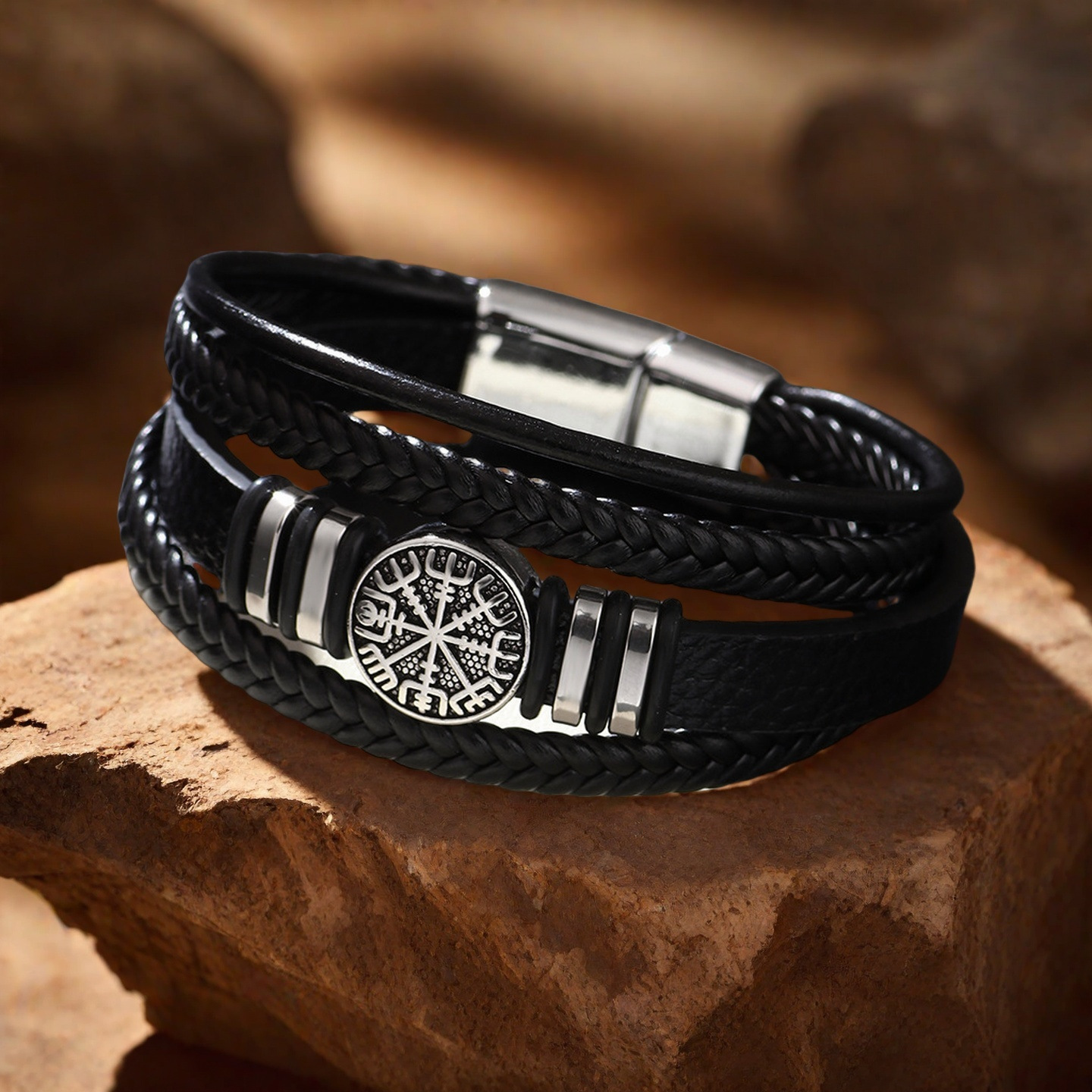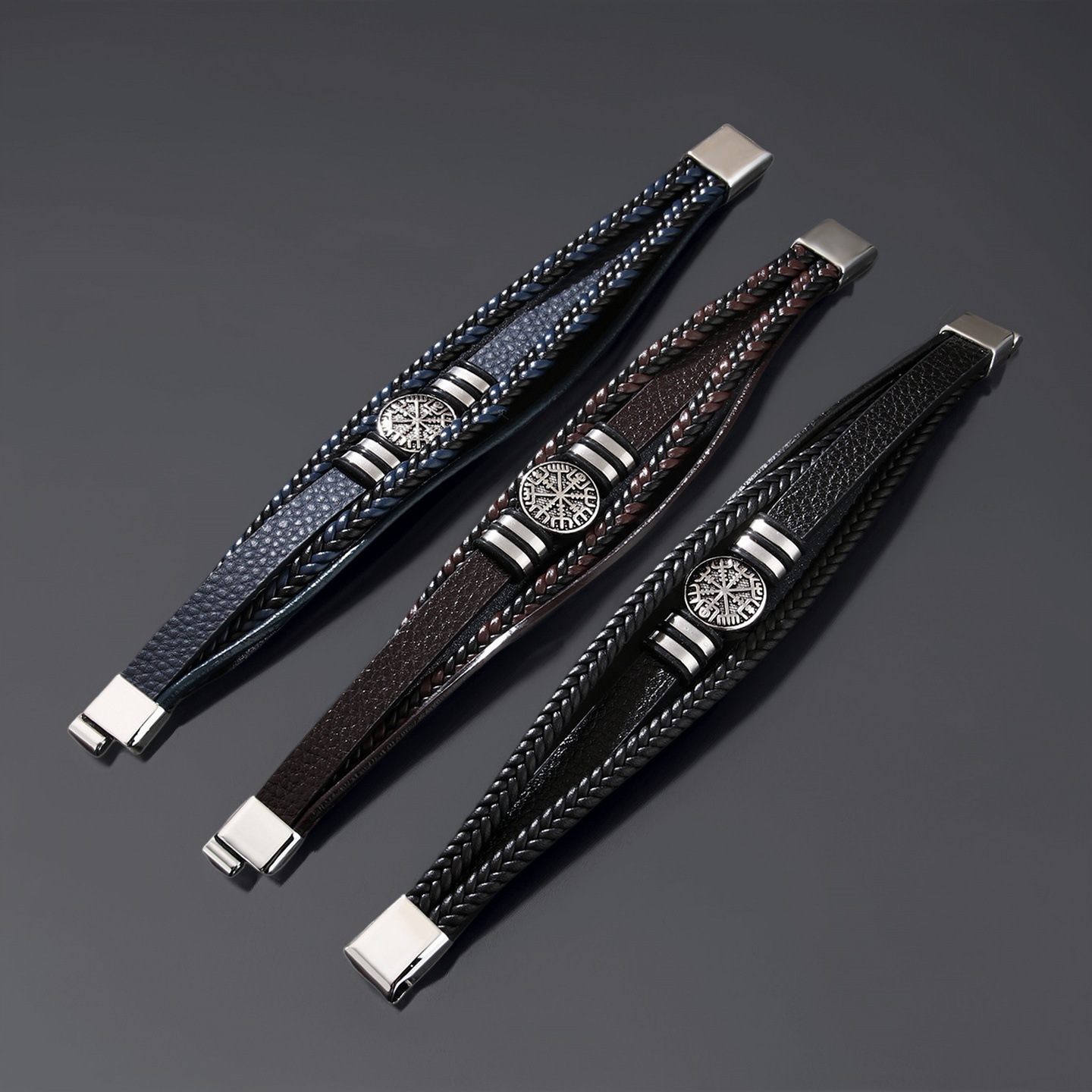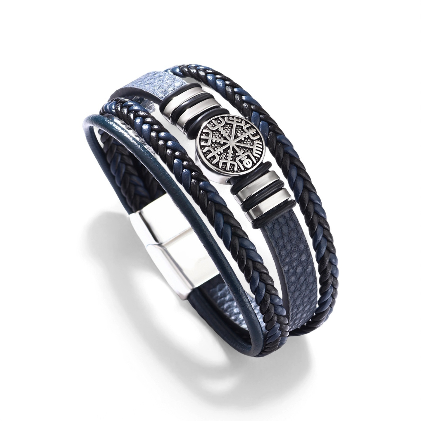 编织皮绳手链欧美时尚朋克风多层男士手环时尚潮流指南针个性手镯