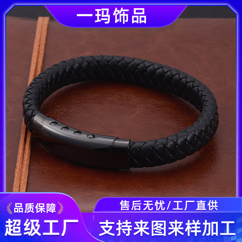 亚马逊跨境热销皮革手镯欧美风牛皮绳皮革手工编织手镯手饰品批发