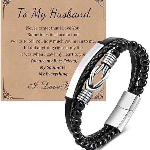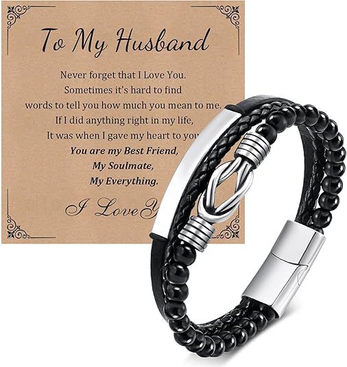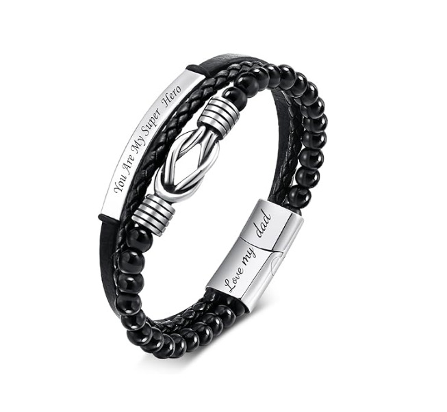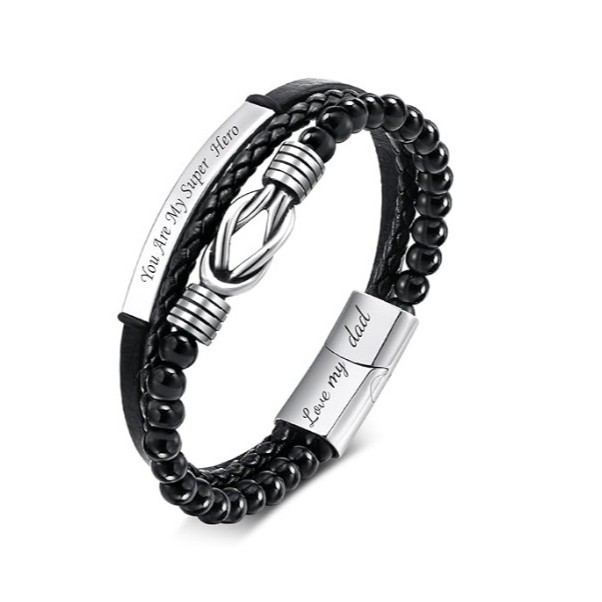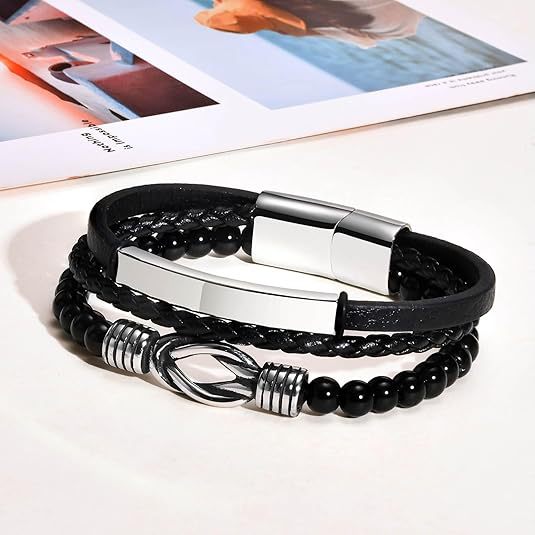 亚马逊跨境欧美时尚男士多层编织皮质手链新款不锈钢磁扣皮绳手镯