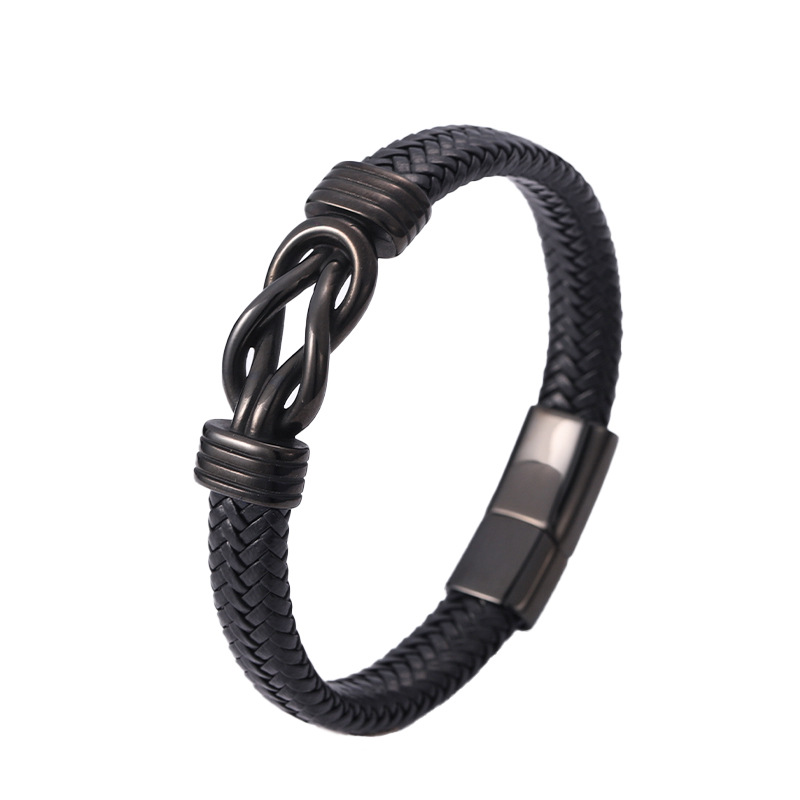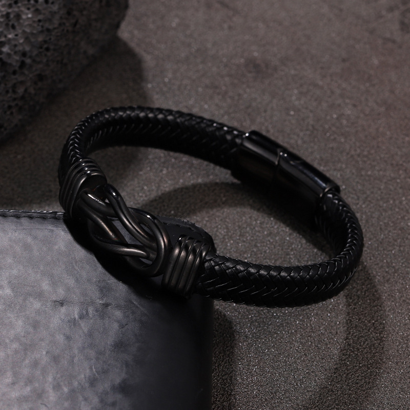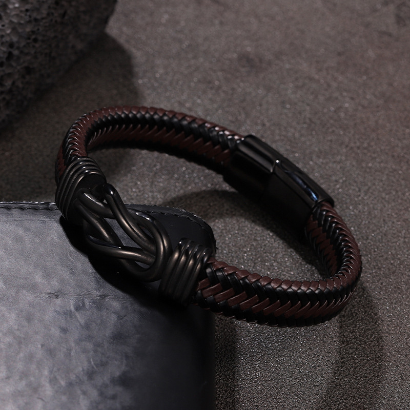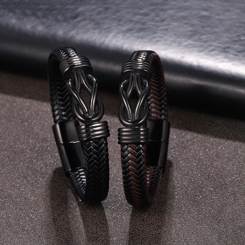 amazon hot stainless steel men‘s leather bracelet magnetic clasp bracelet retro style ornament europe and america cross border leather jewelry