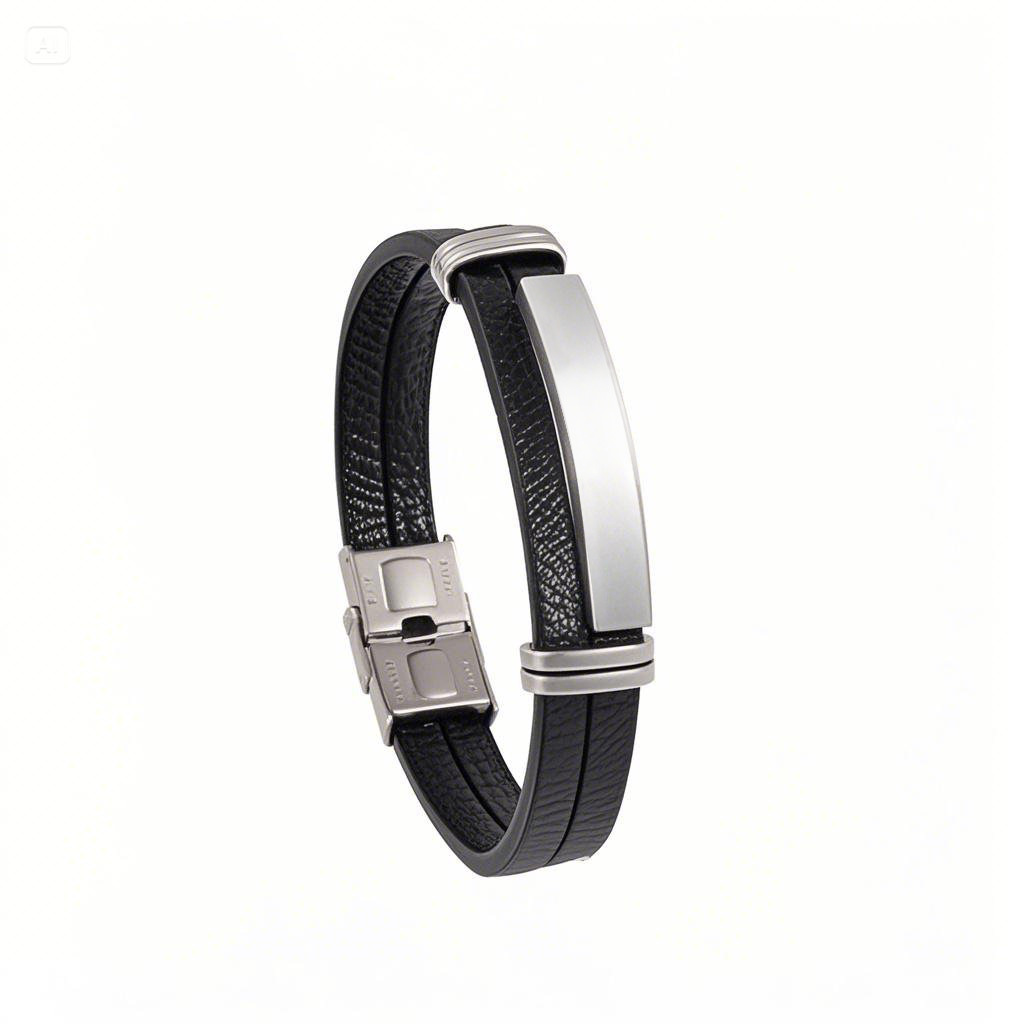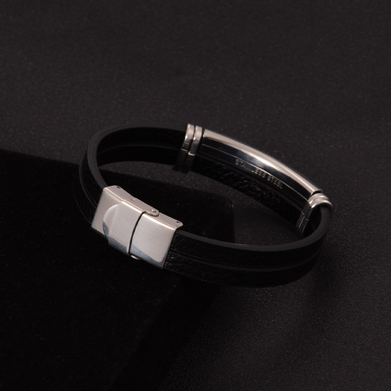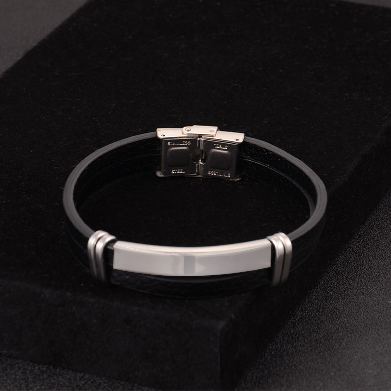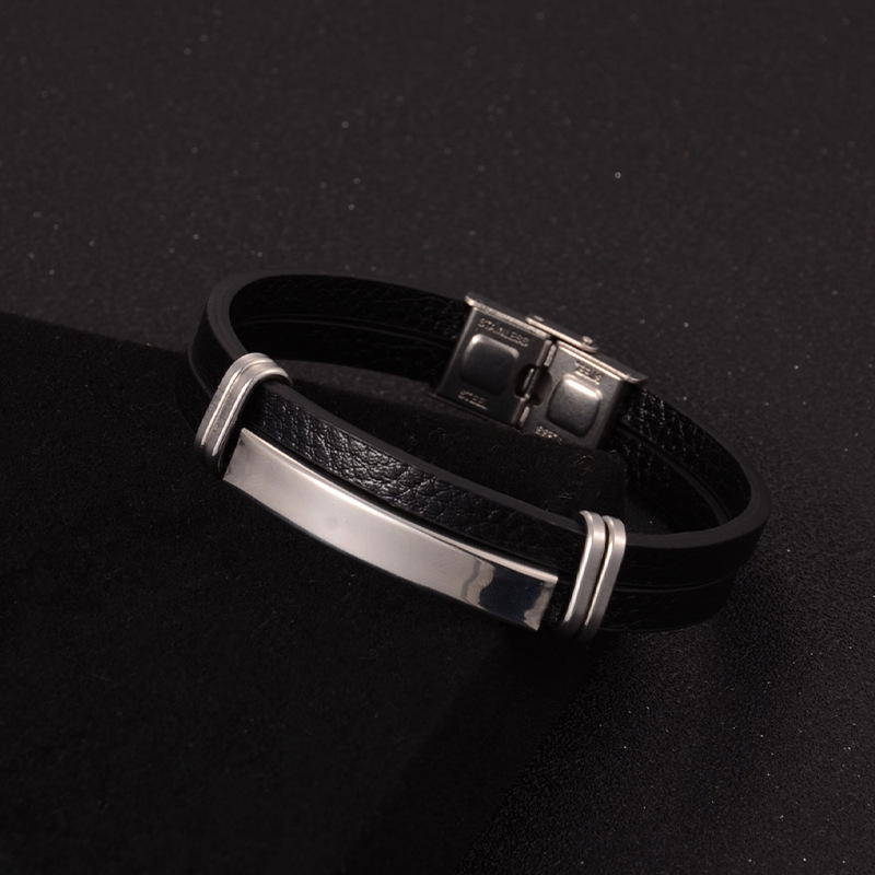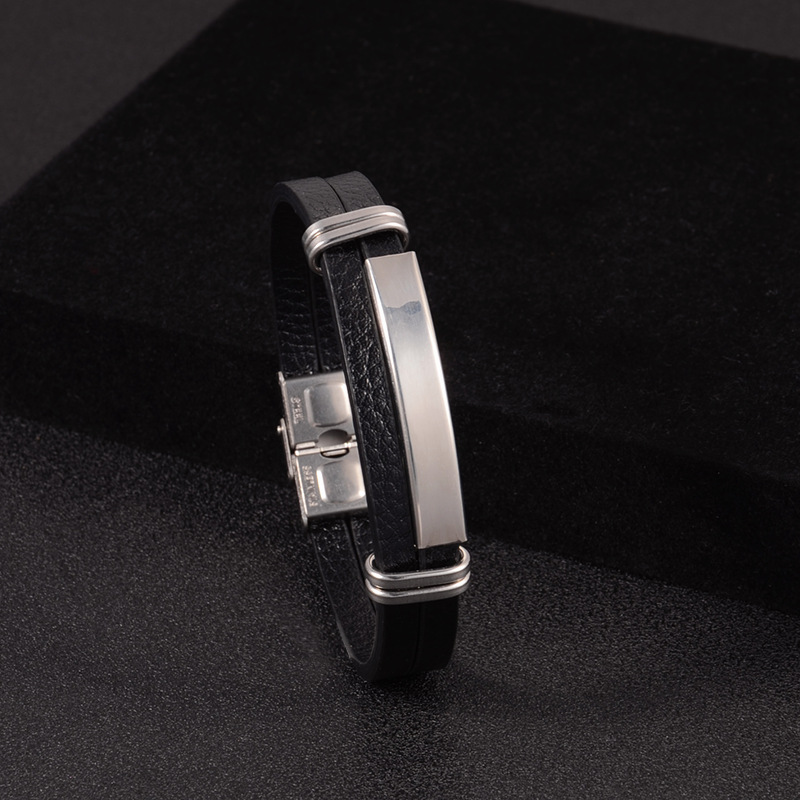 亚马逊跨境电商朋克风不锈钢不褪色可调节编织皮情侣手镯时尚简约