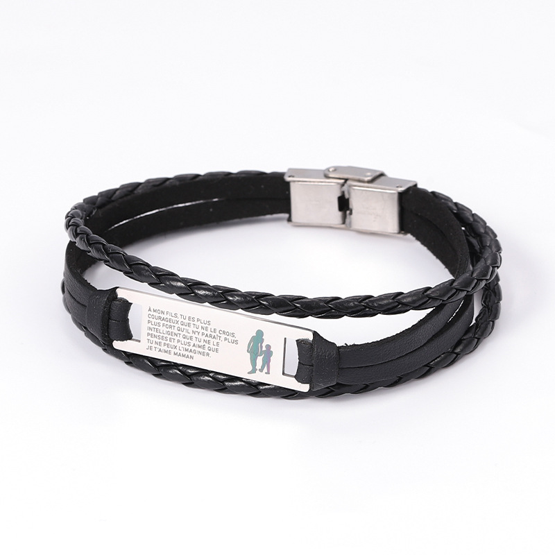 amazon hot stainless steel retro style leather rope bracelet cross-border hot sale press buckle multi-layer leather lettering bracelet