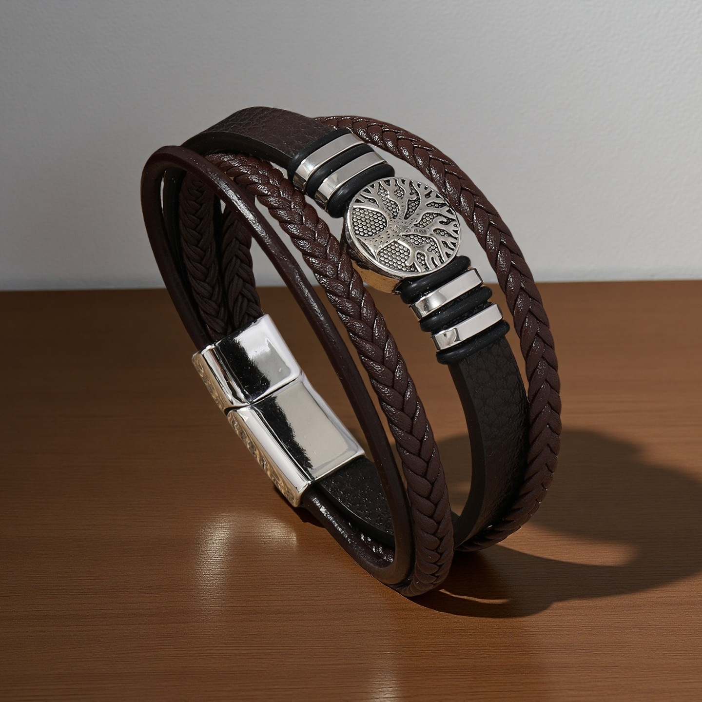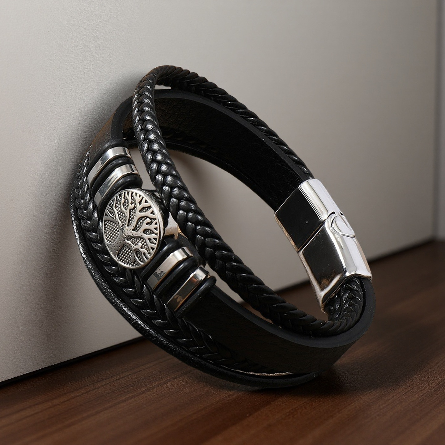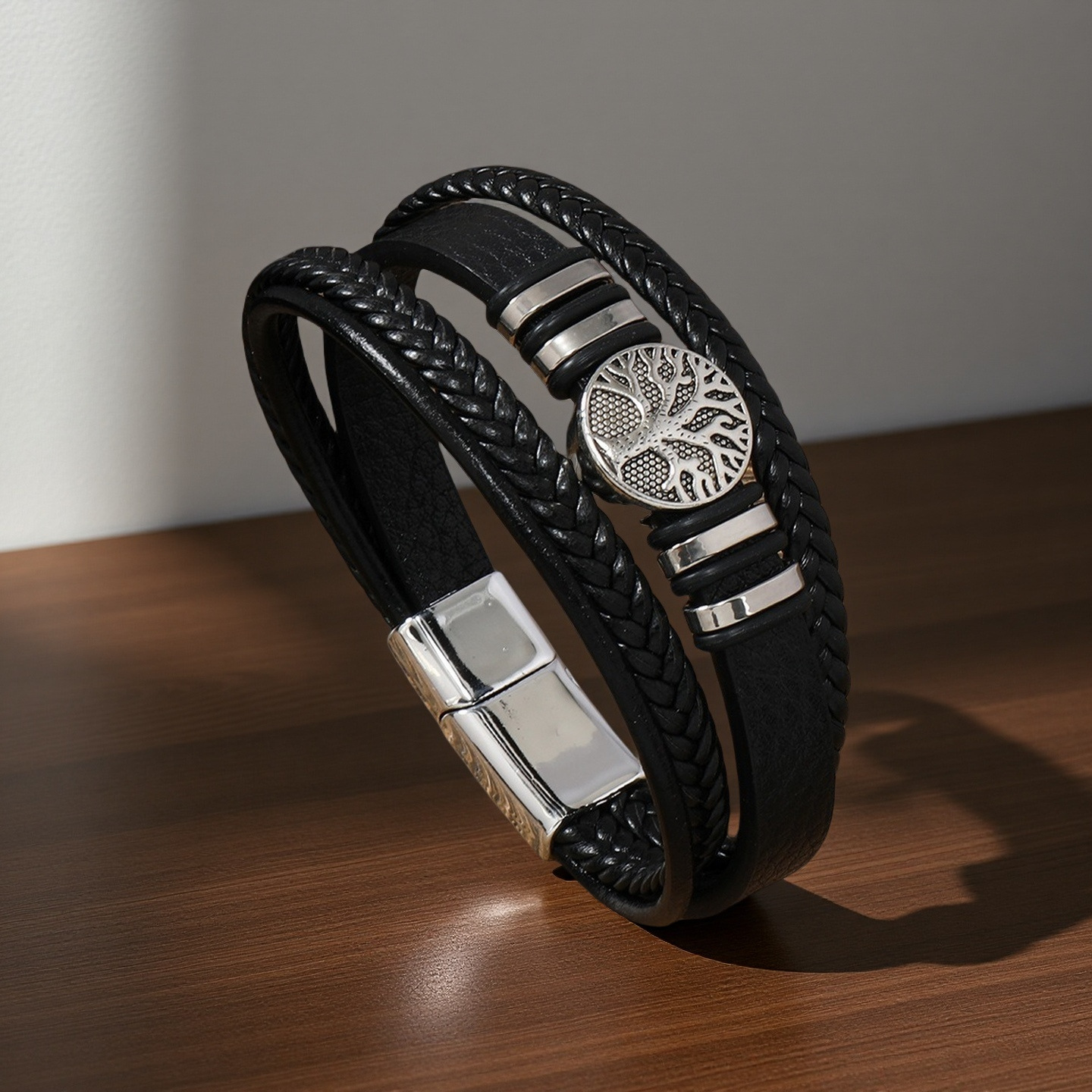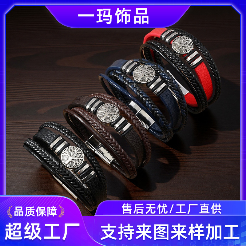 生命树男士手镯欧美跨境编织多层皮绳手链朋克风时尚潮流个性手环