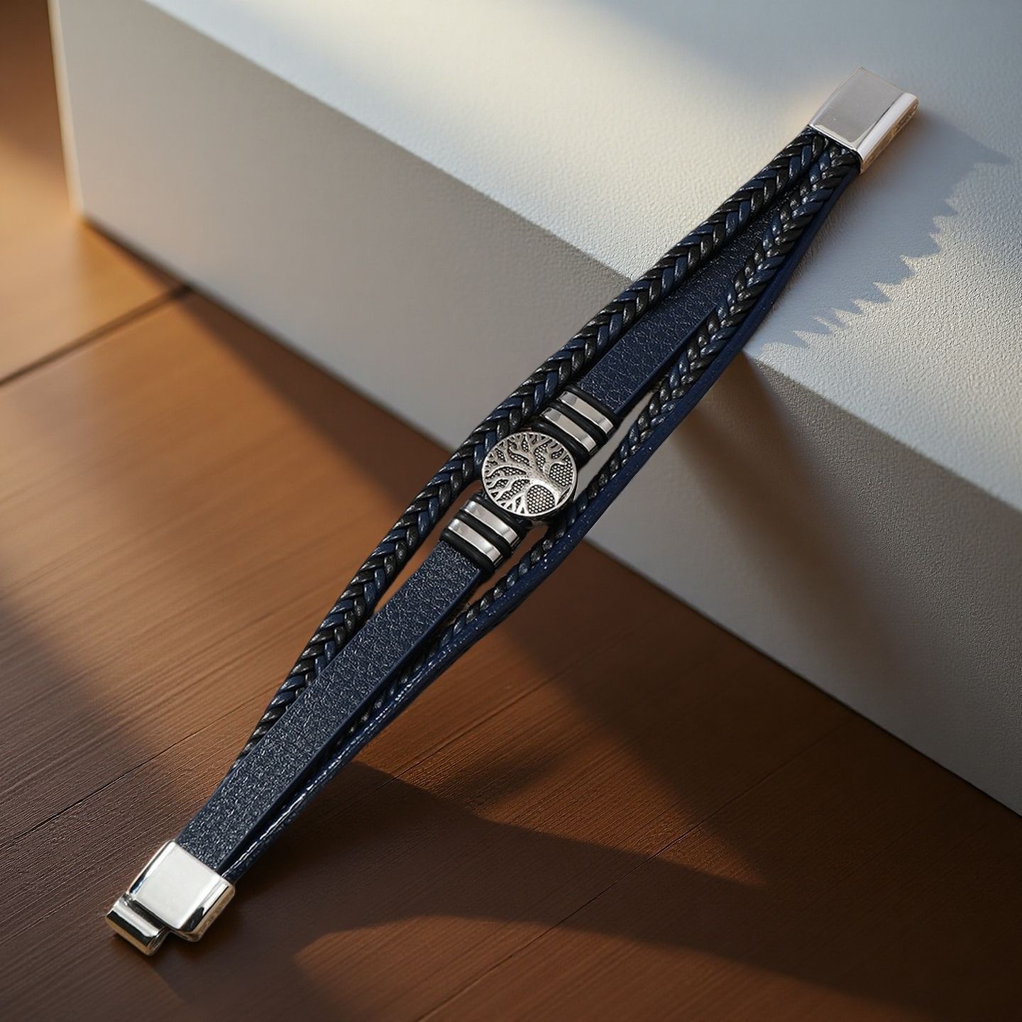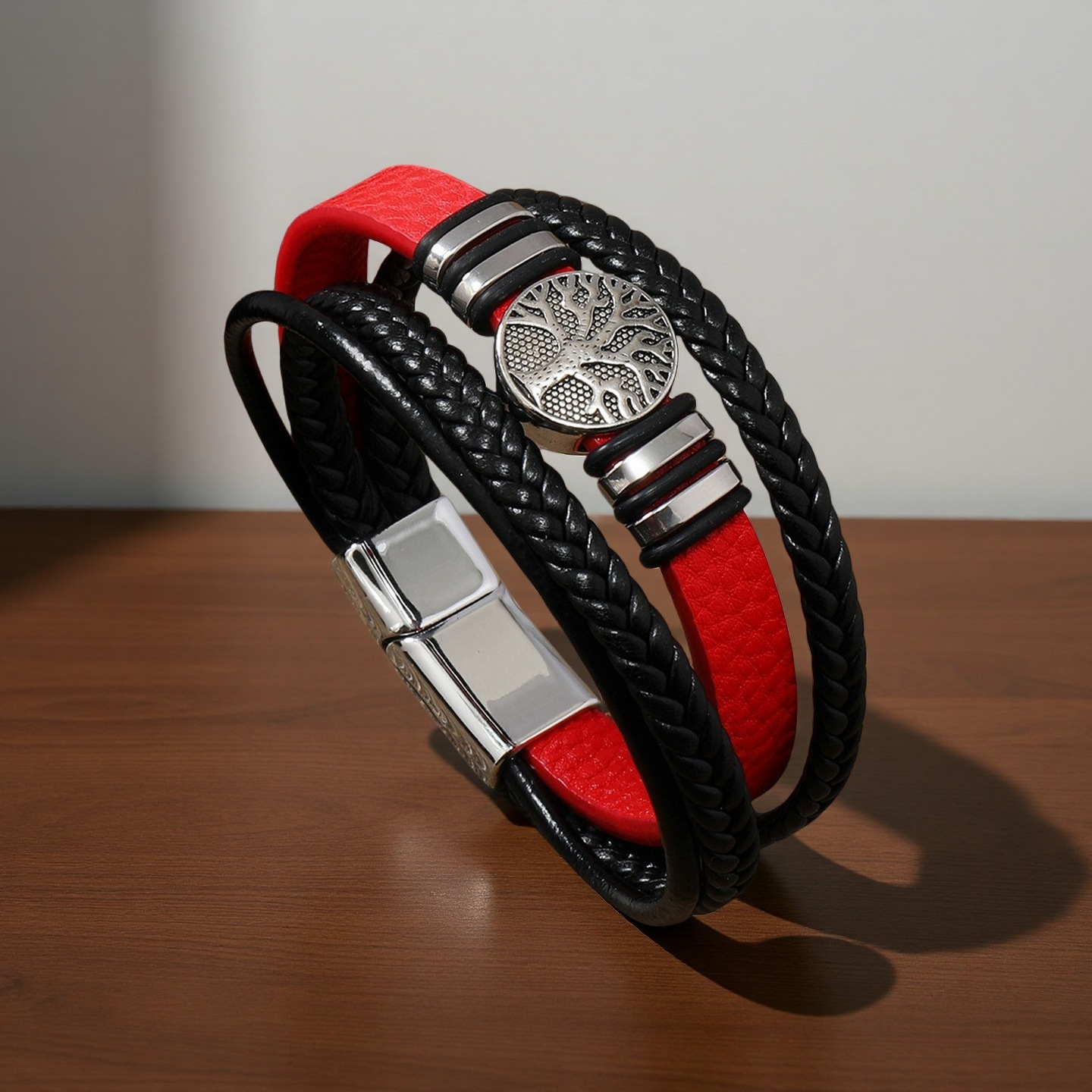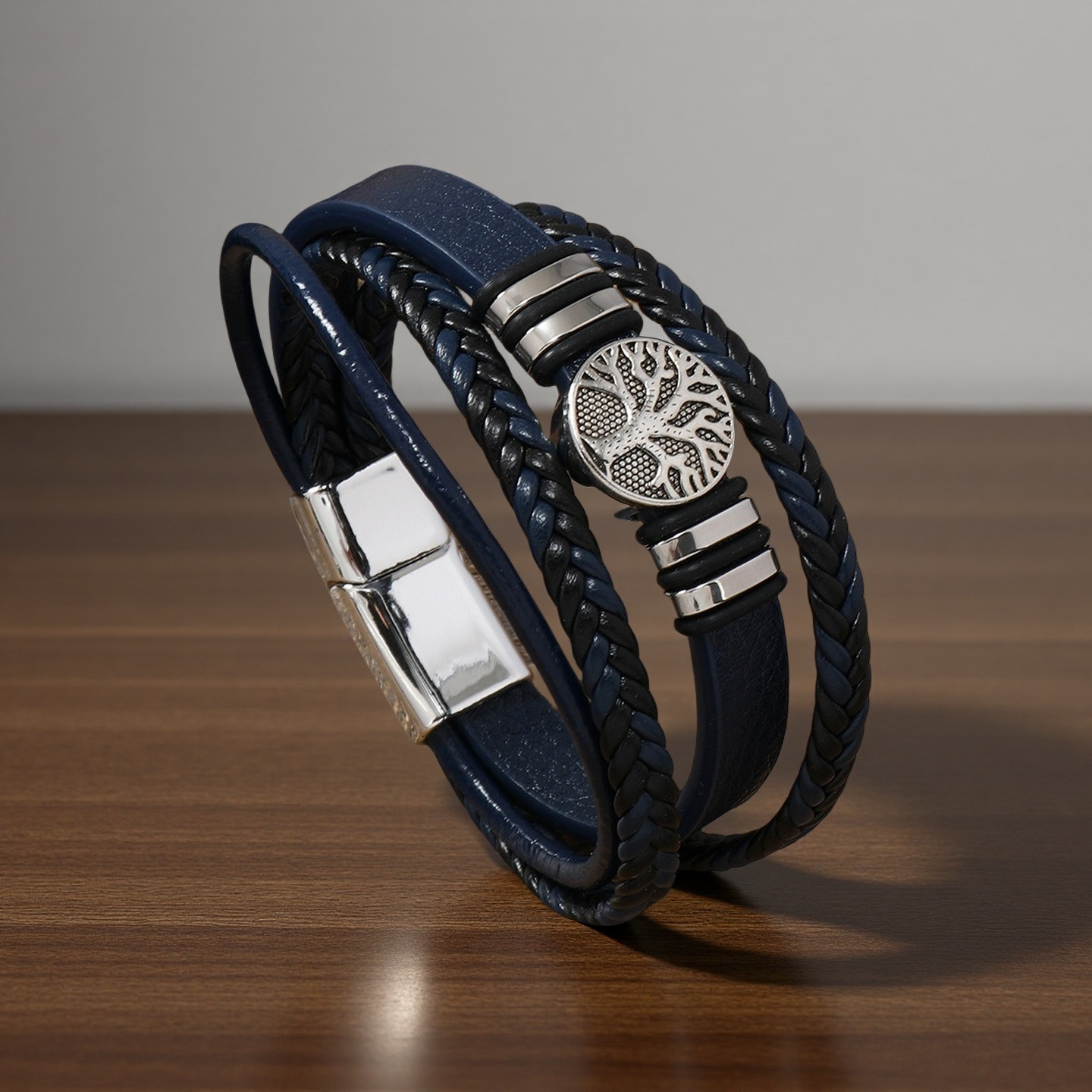 生命树男士手镯欧美跨境编织多层皮绳手链朋克风时尚潮流个性手环