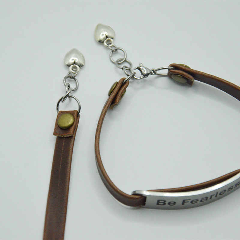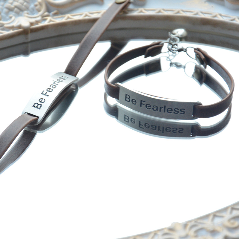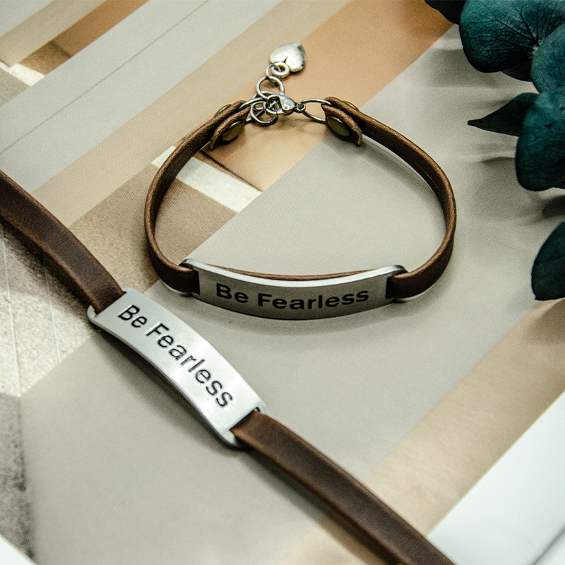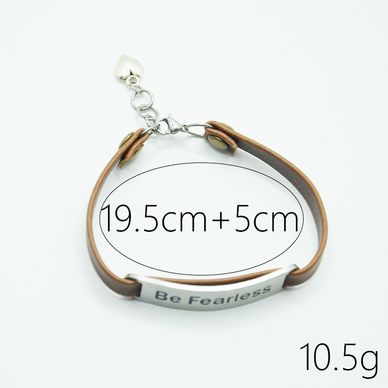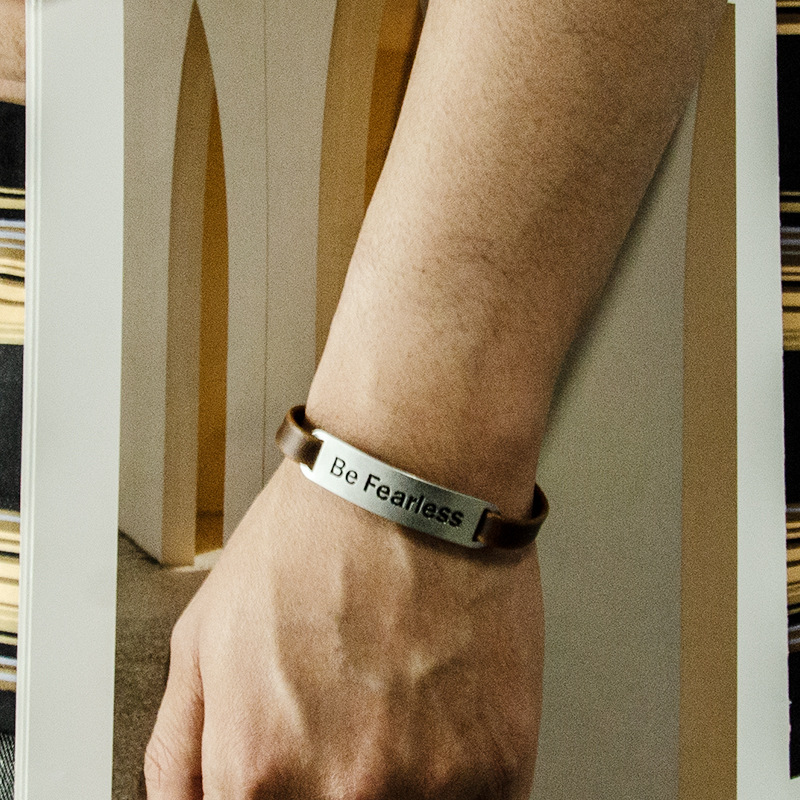 定制饰品欧美流行吊牌手链高级感Be Fearless励志复古皮革手环