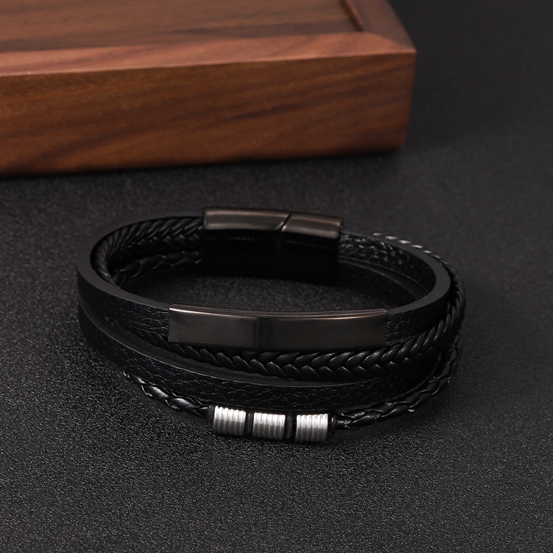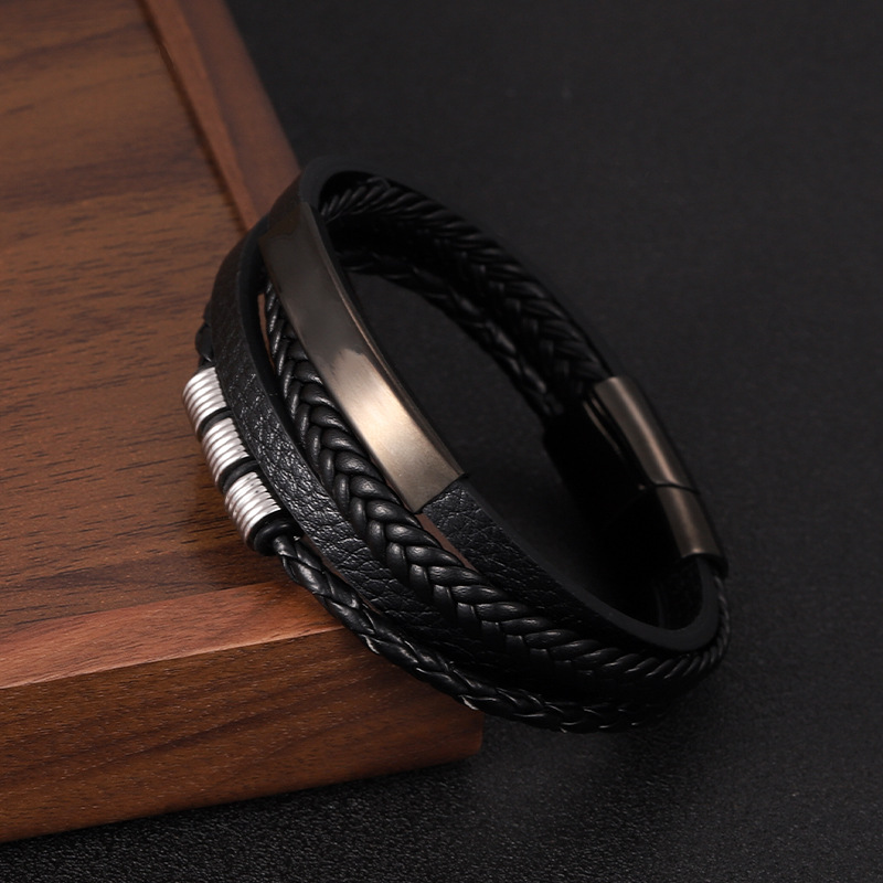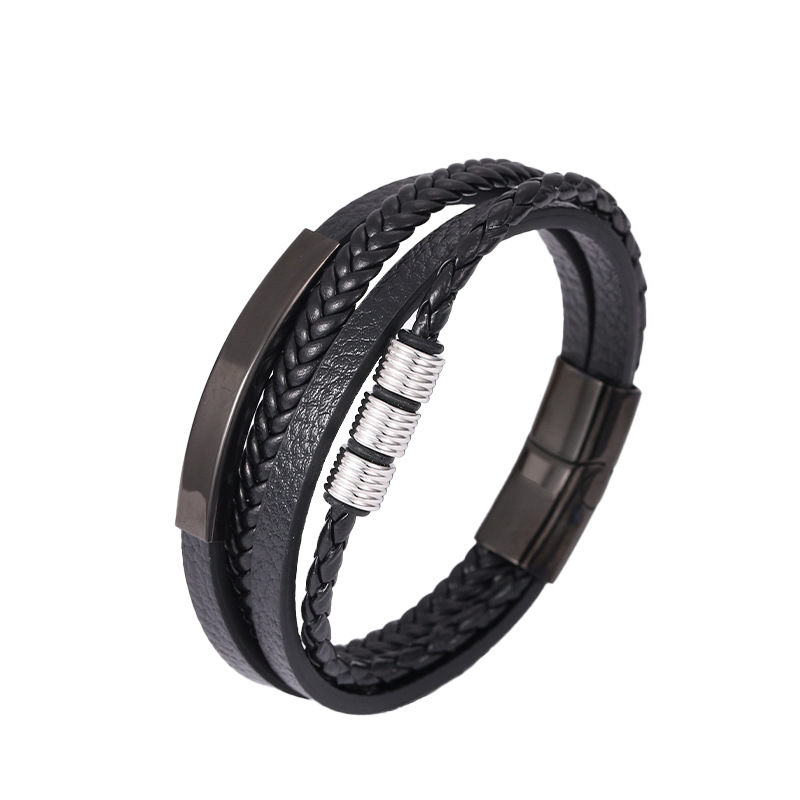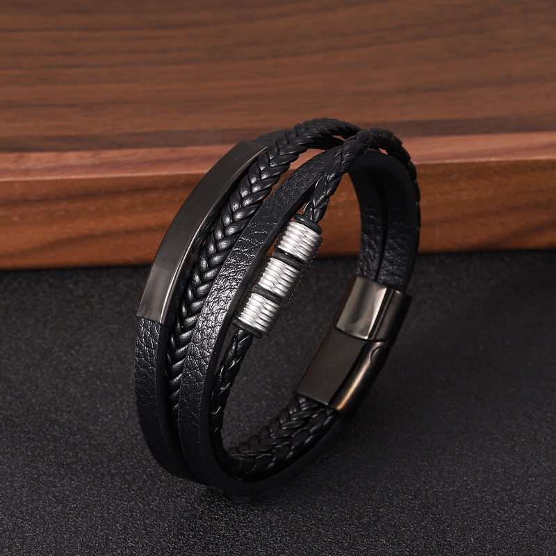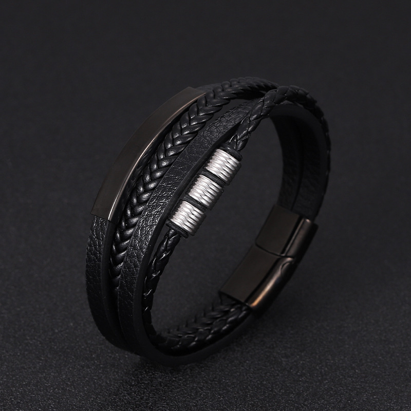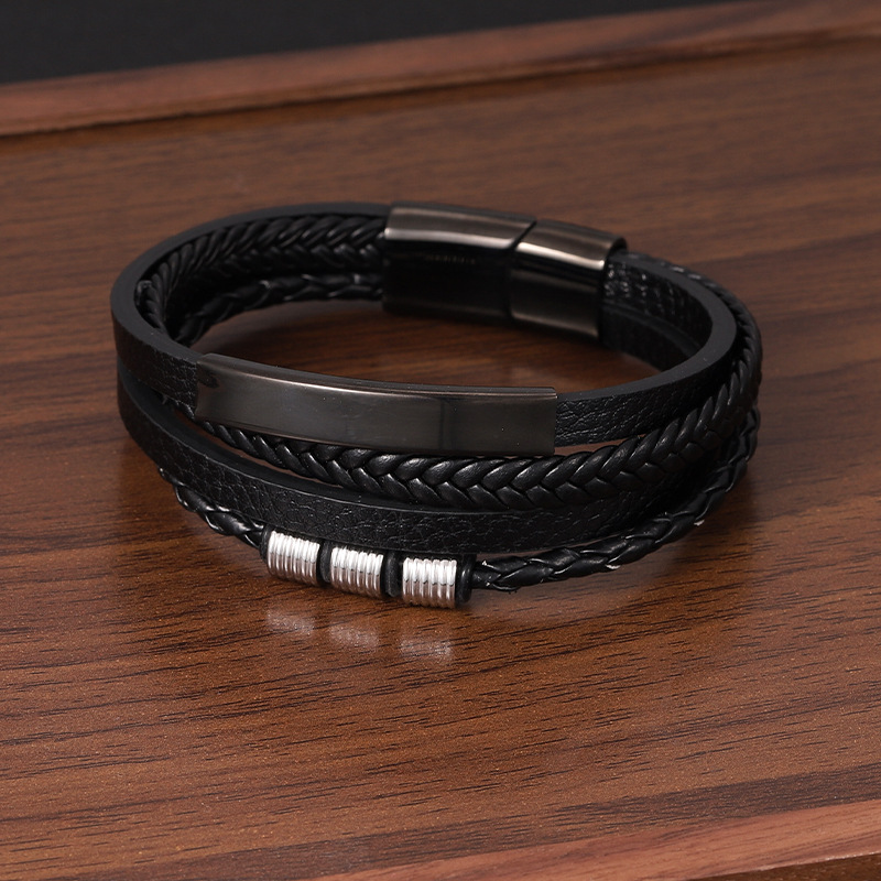多层皮革手镯亚马逊男士跨境不锈钢手链皮绳手饰原创欧美手环饰品