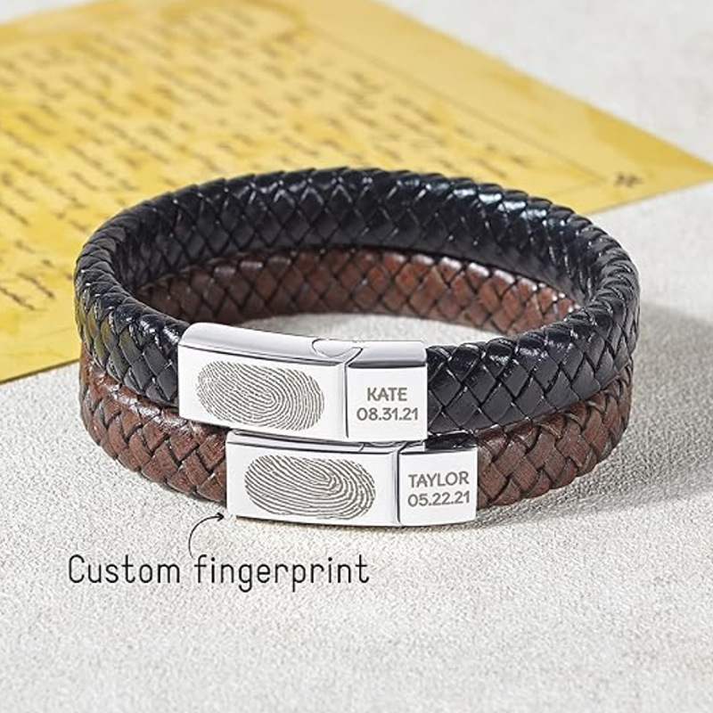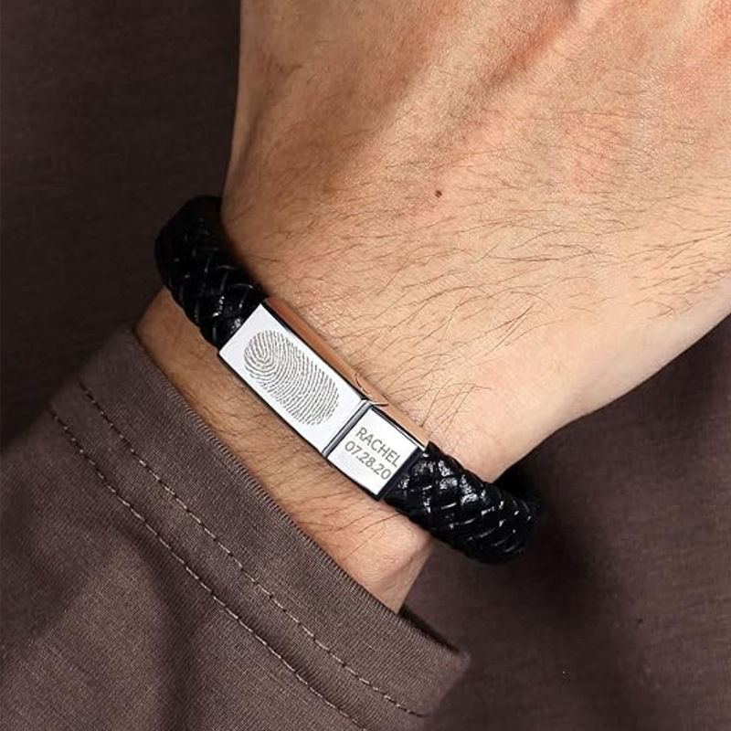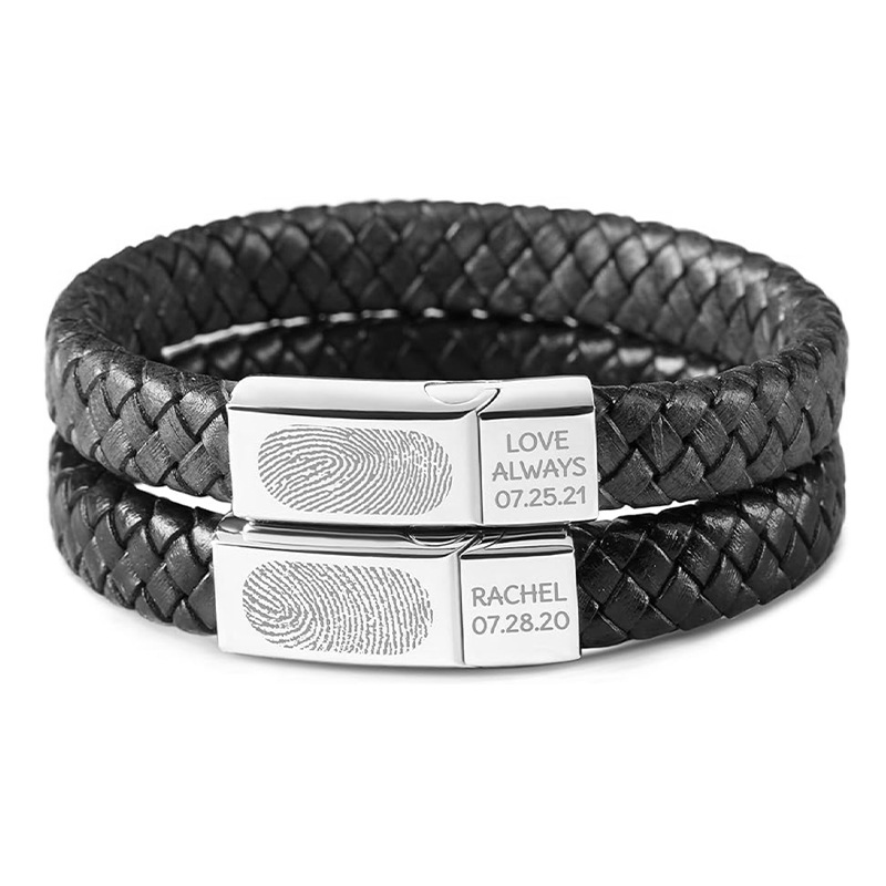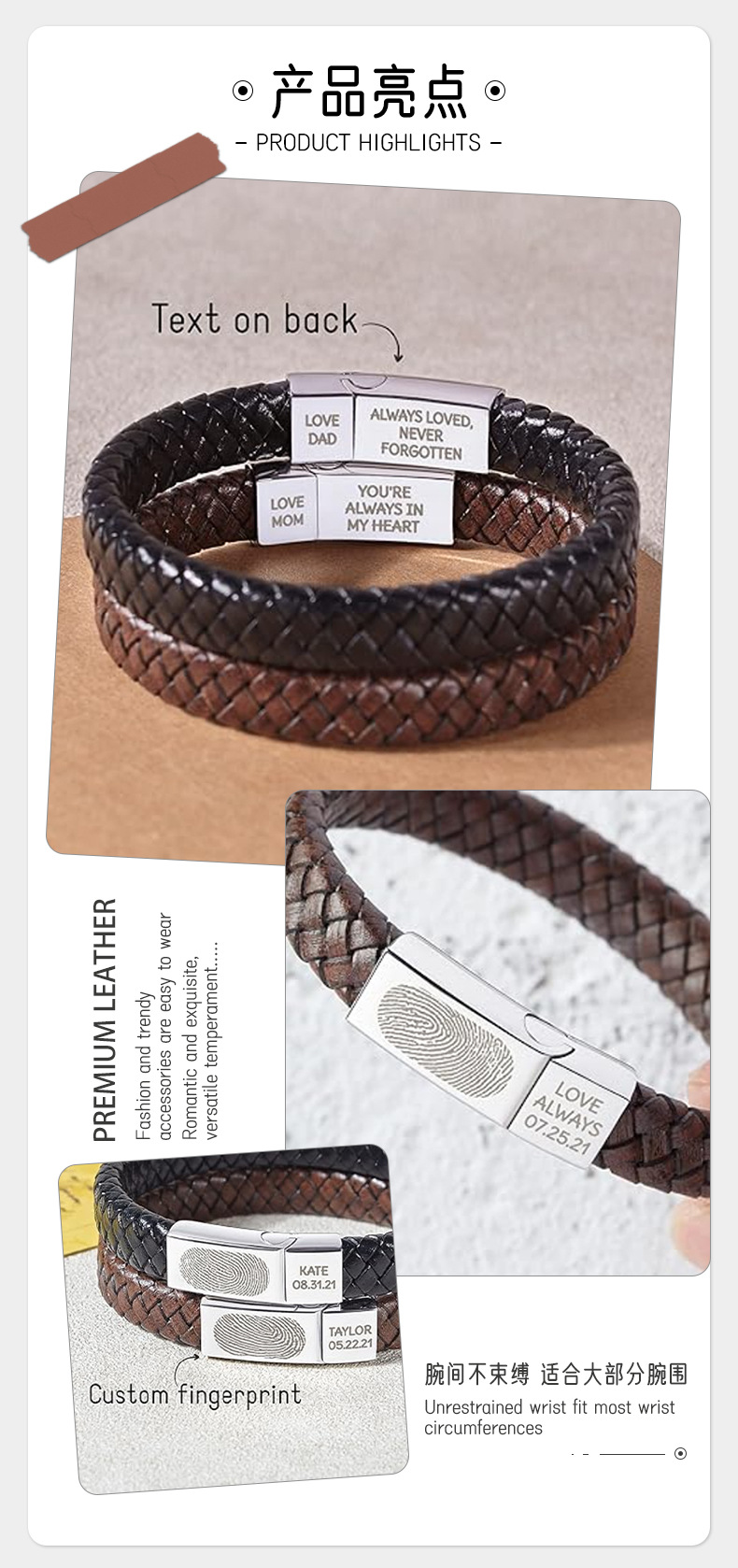 跨境爆款简约手链男士潮 DIY复古手工编织皮革手环刻字不锈钢手镯